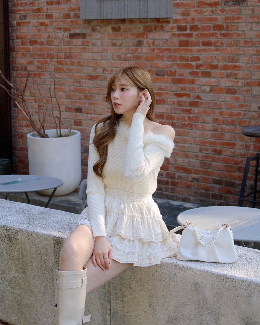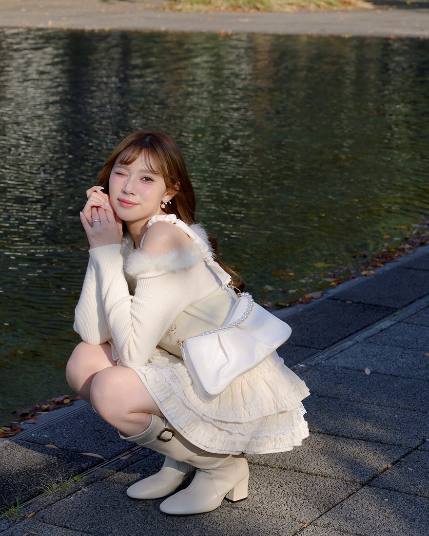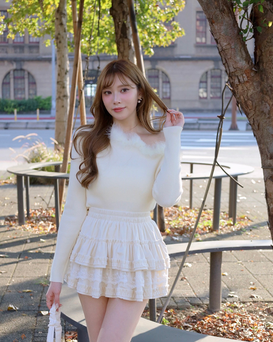 做了荷葉壓褶層層堆疊成的蛋糕感裙襬