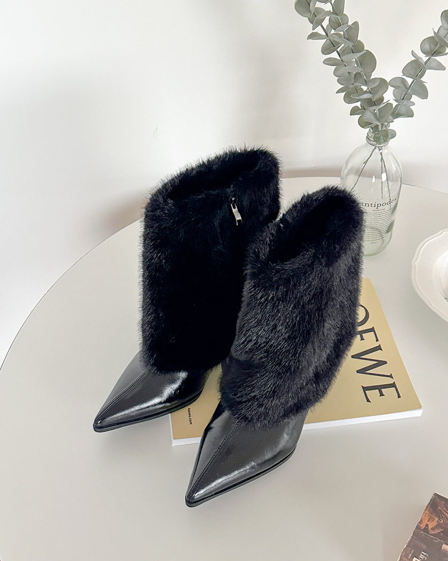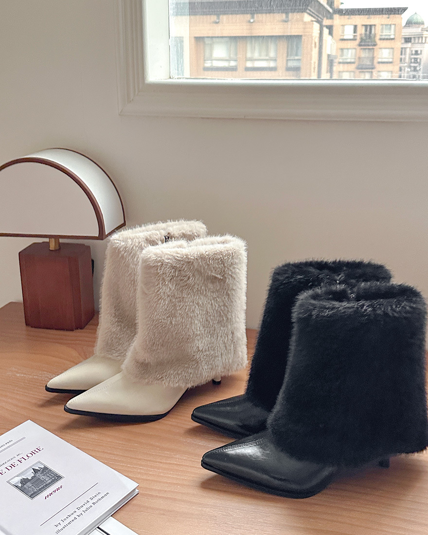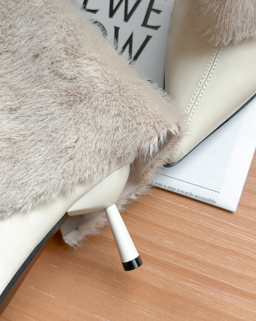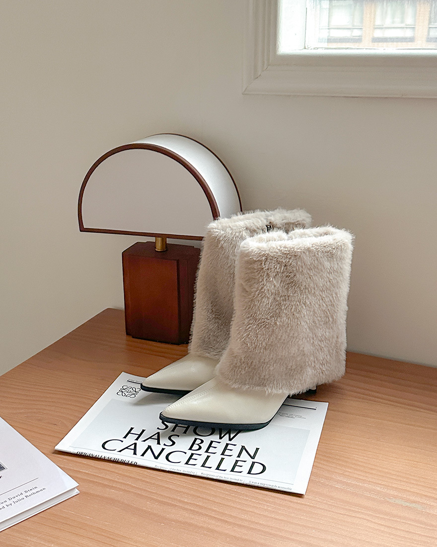 限量!奢華目光柔軟仿皮草尖頭高跟襪靴-優雅杏37 38