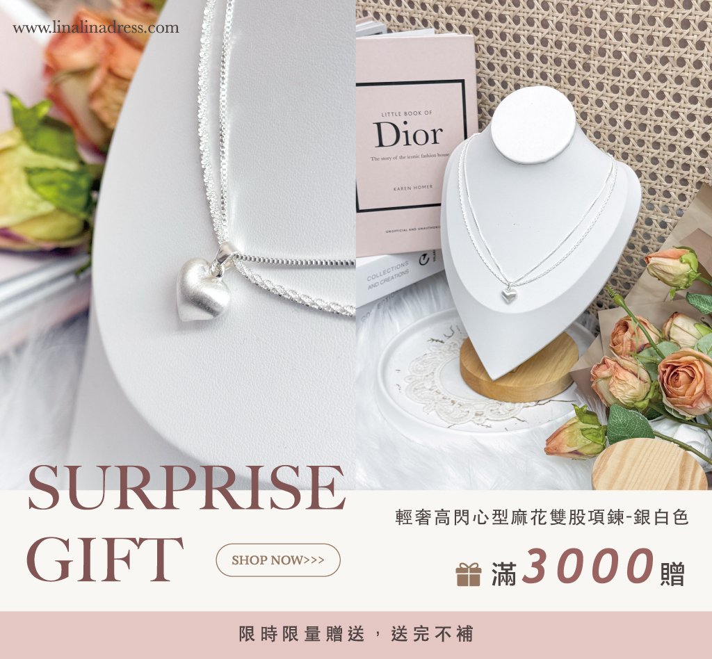 全館消費 折扣後 滿NT.3000元 即贈送【輕奢高閃心型麻花雙股項鍊-銀白色】乙件。