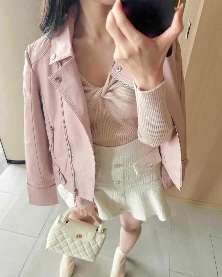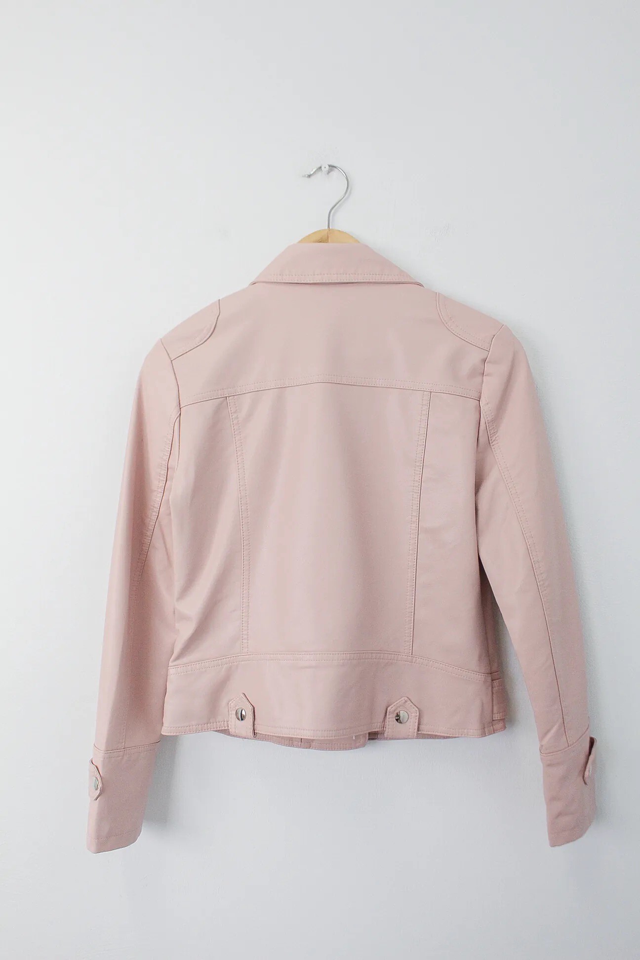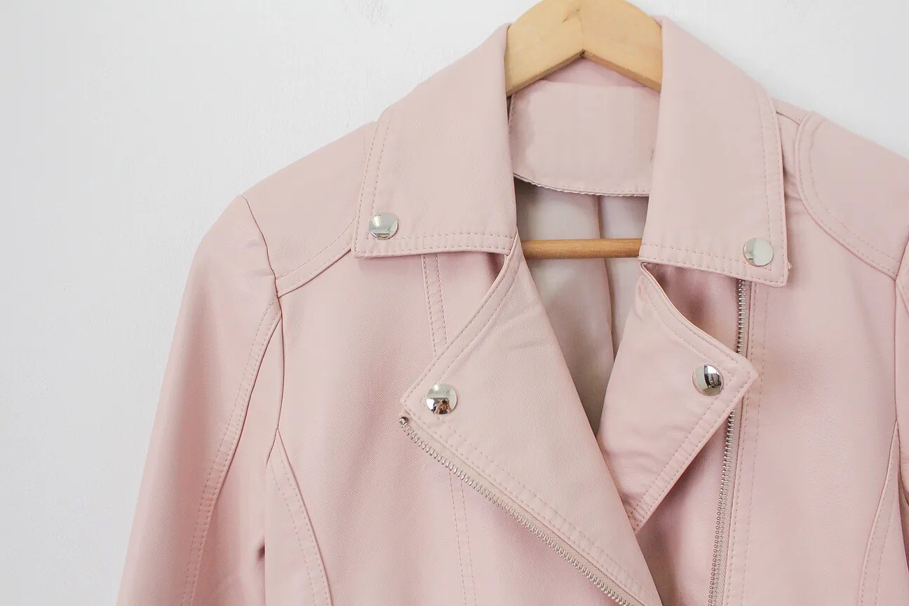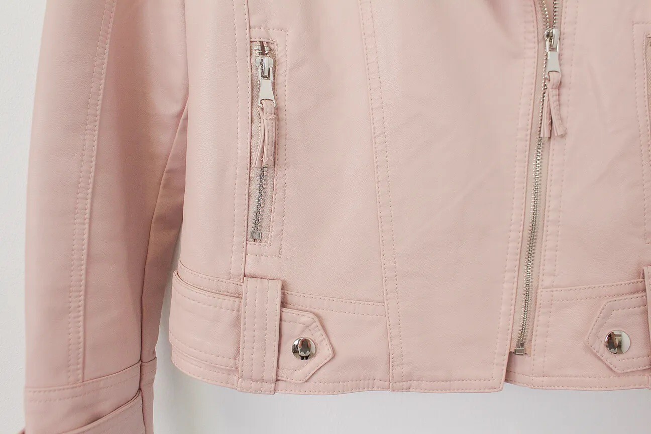 漂亮設計款仿羊皮柔軟皮衣-淡粉
