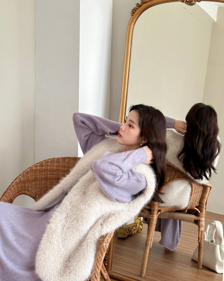 搭配狐狸毛背心變身華麗洋裝感