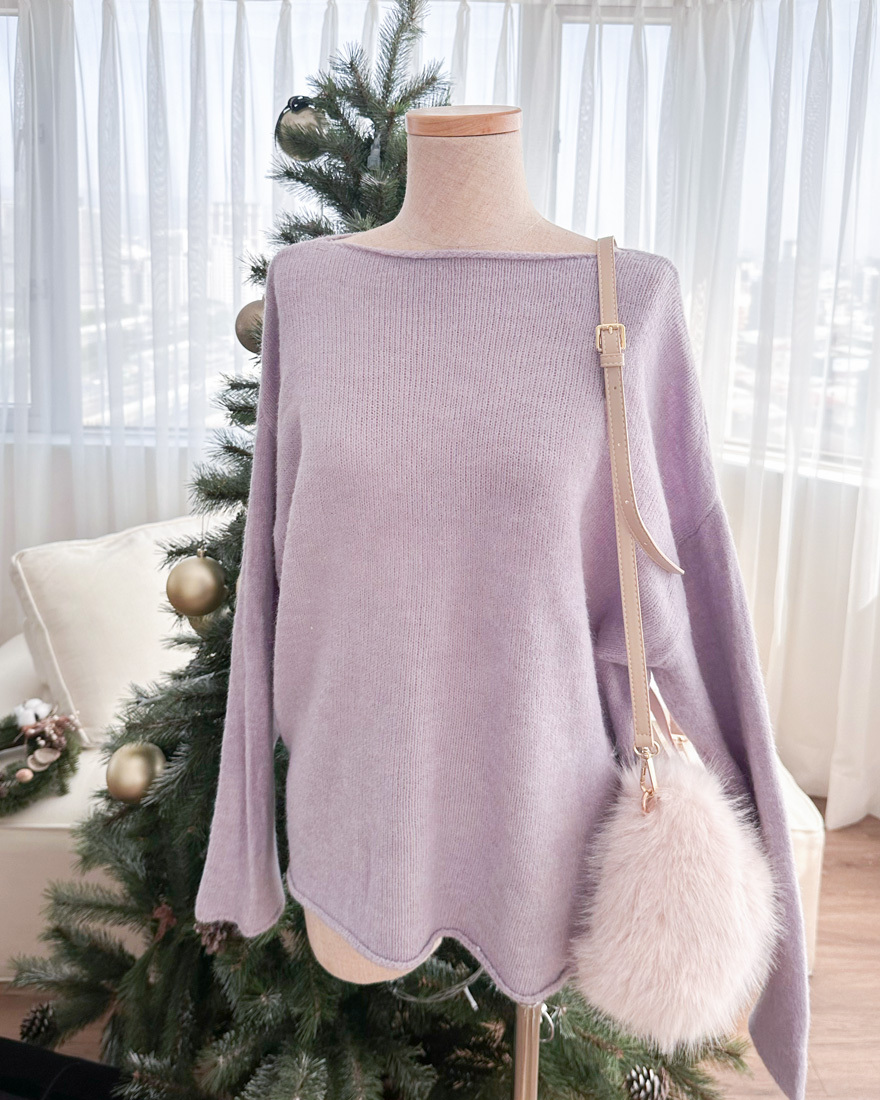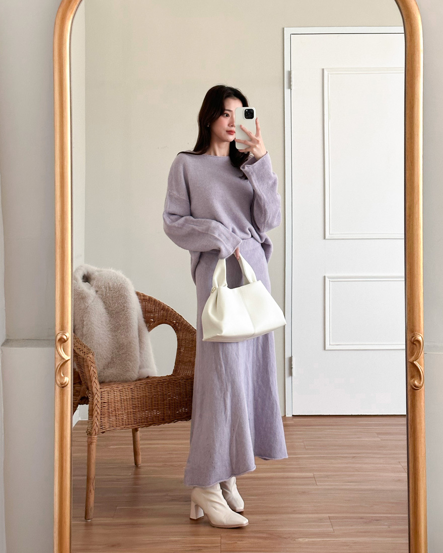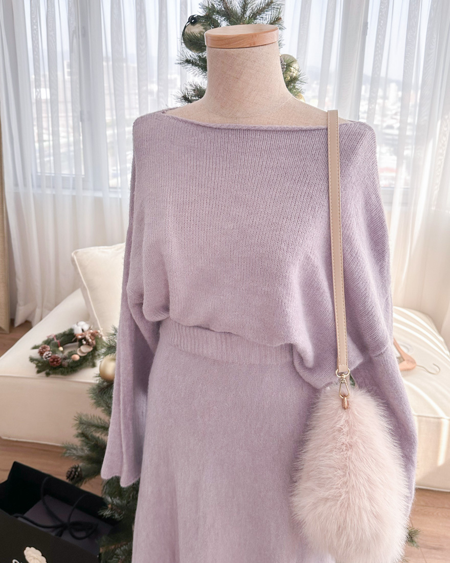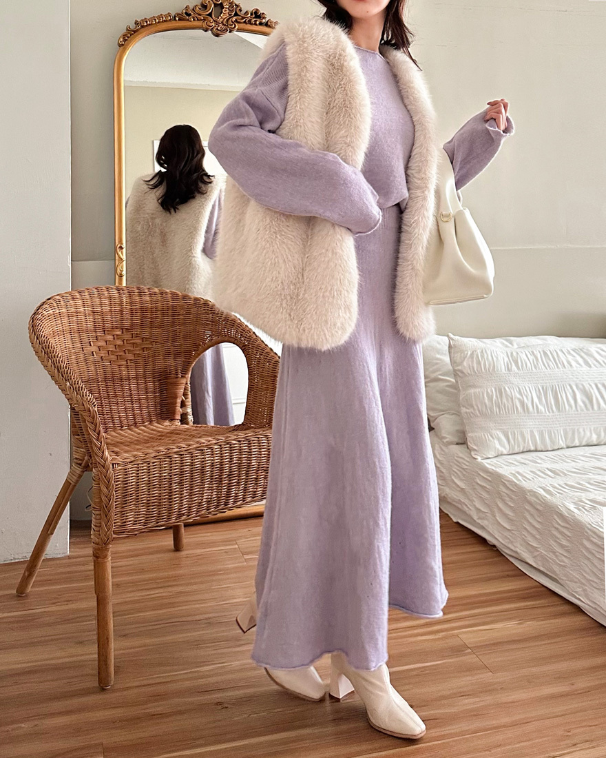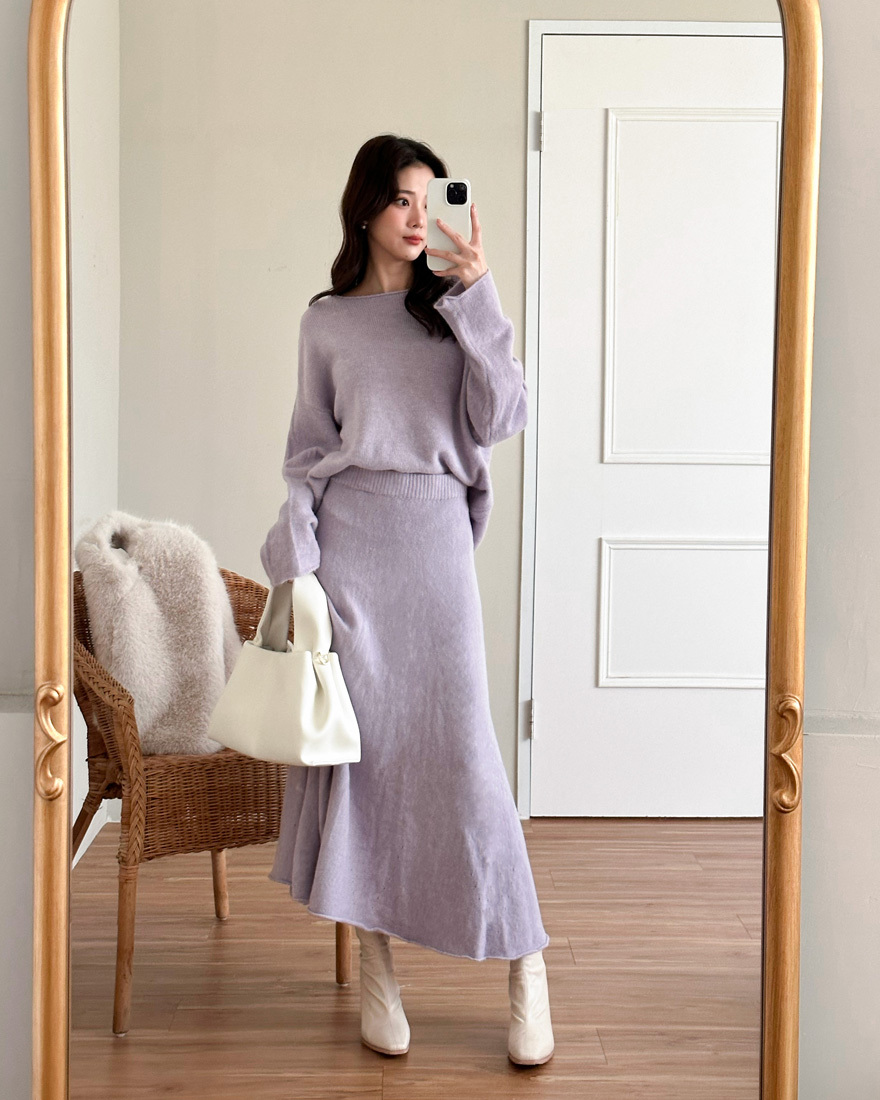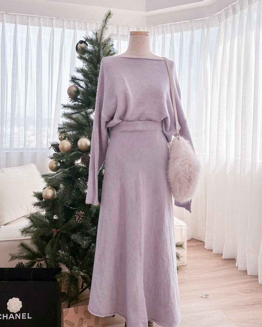 心動氣息純色針織上衣長裙兩件組-浪漫紫