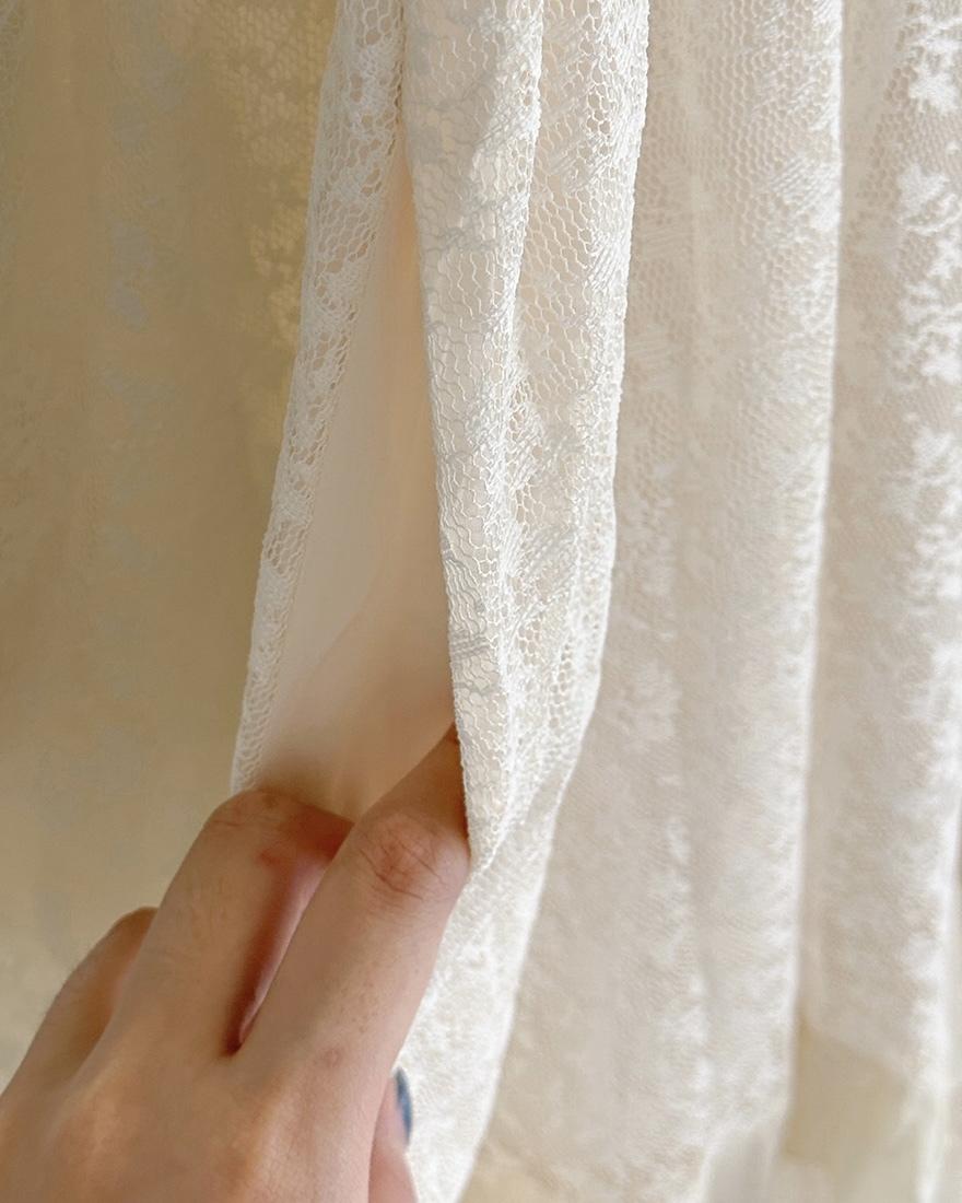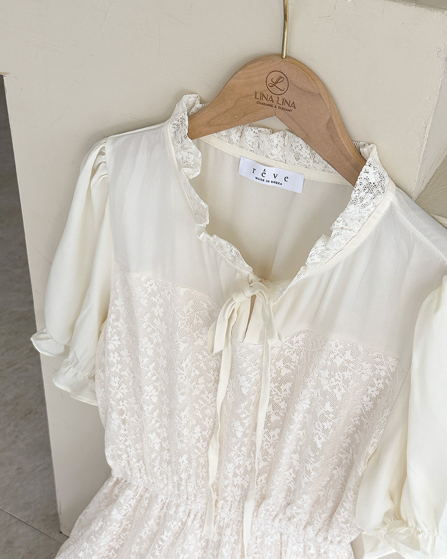 由親膚的雪紡拼接細緻的網紗蕾絲