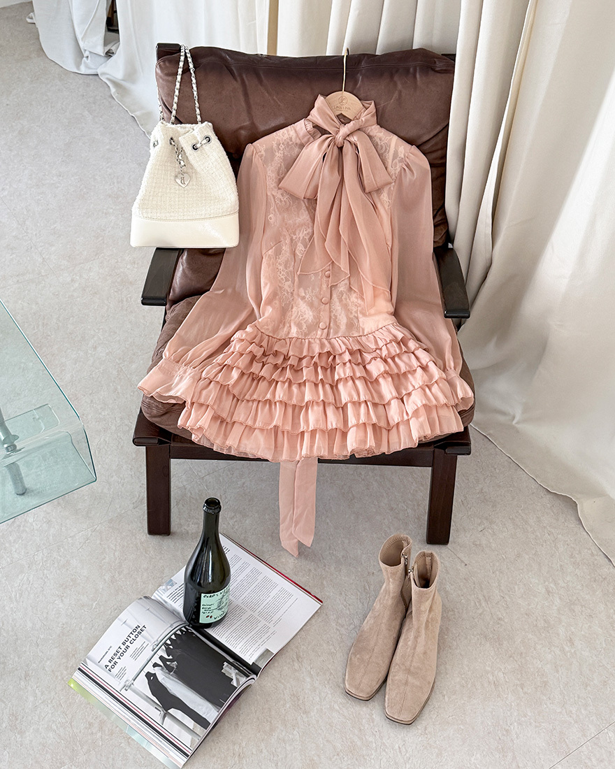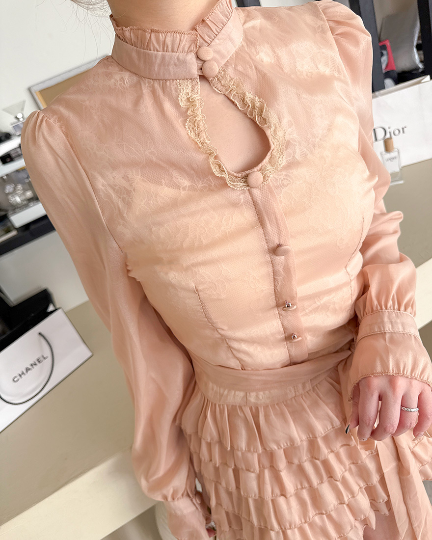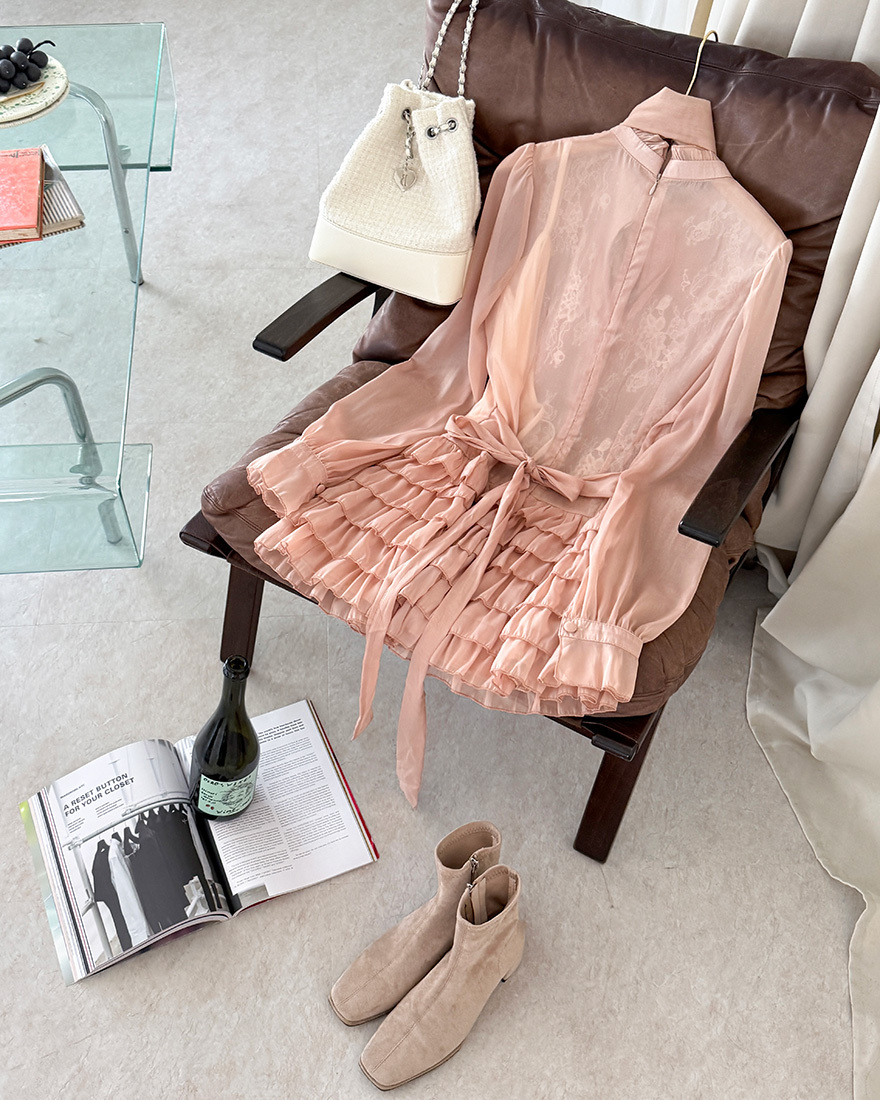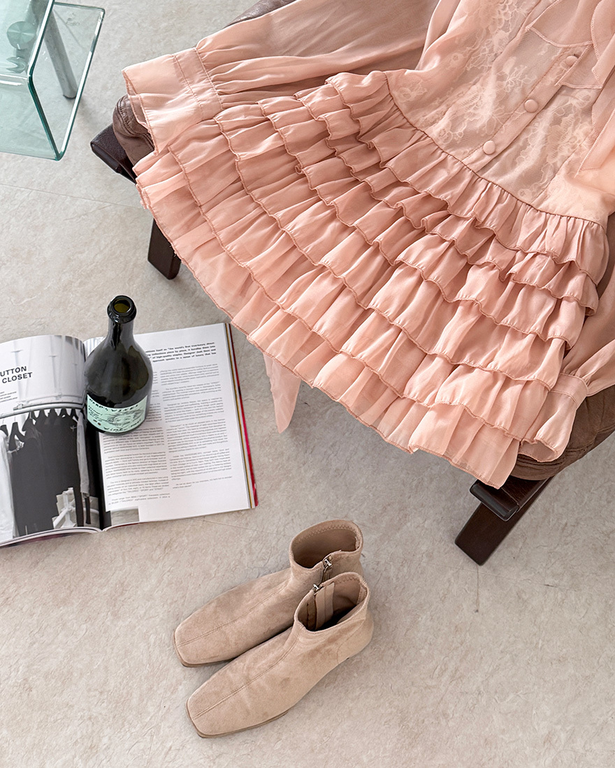 𝕧𝕤層次的壓摺A字蛋糕裙襬