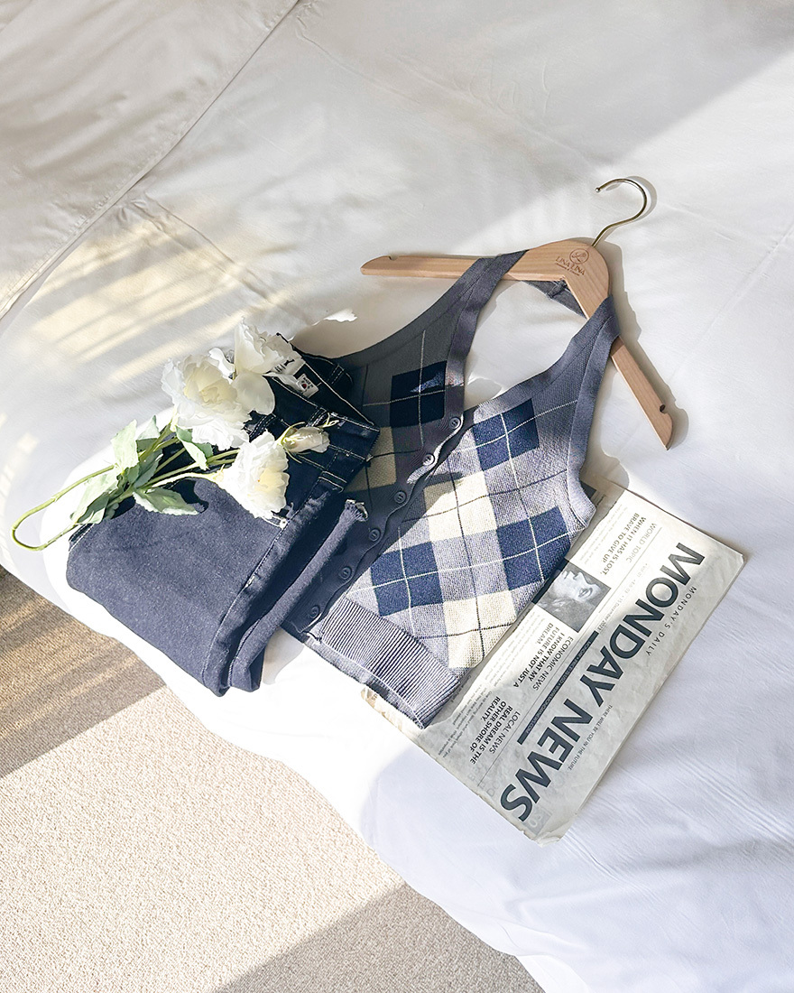 灰藍色菱格紋整個打中我!