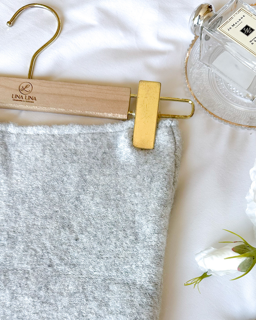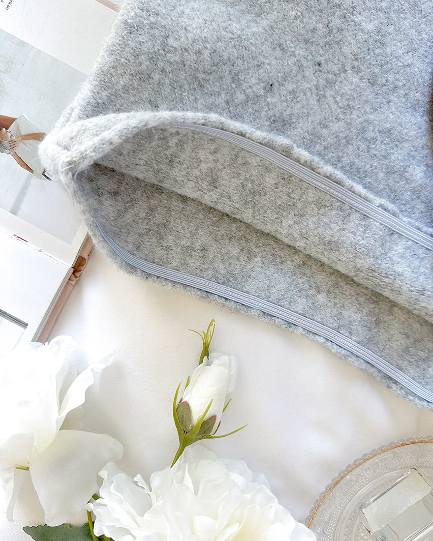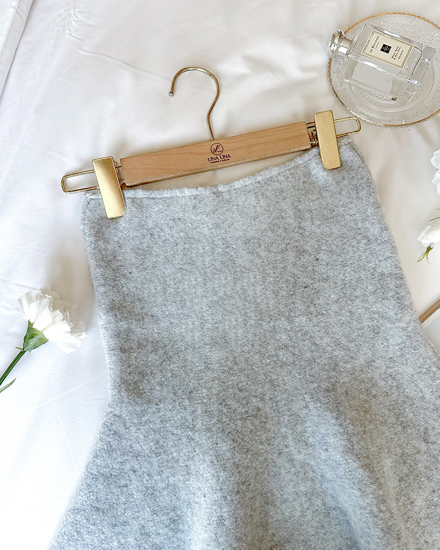LINA LINA溫暖小辣純色平口傘擺毛料上衣-淺花灰