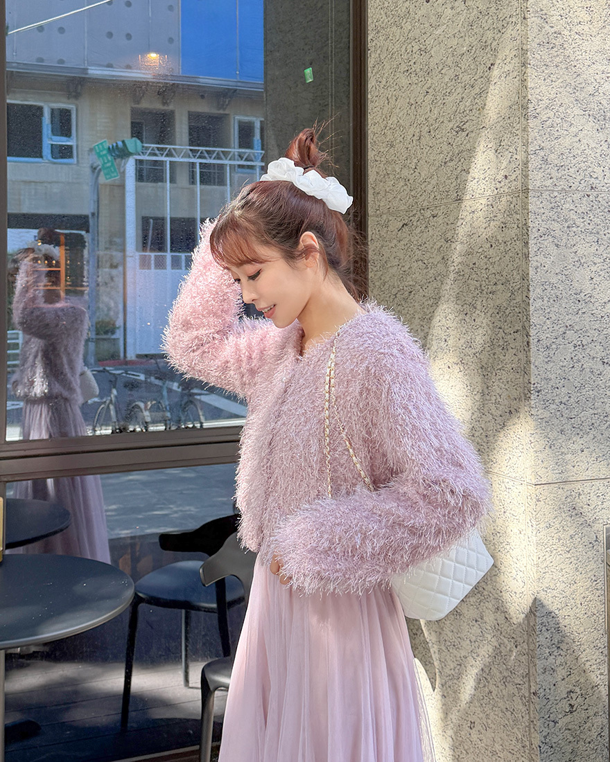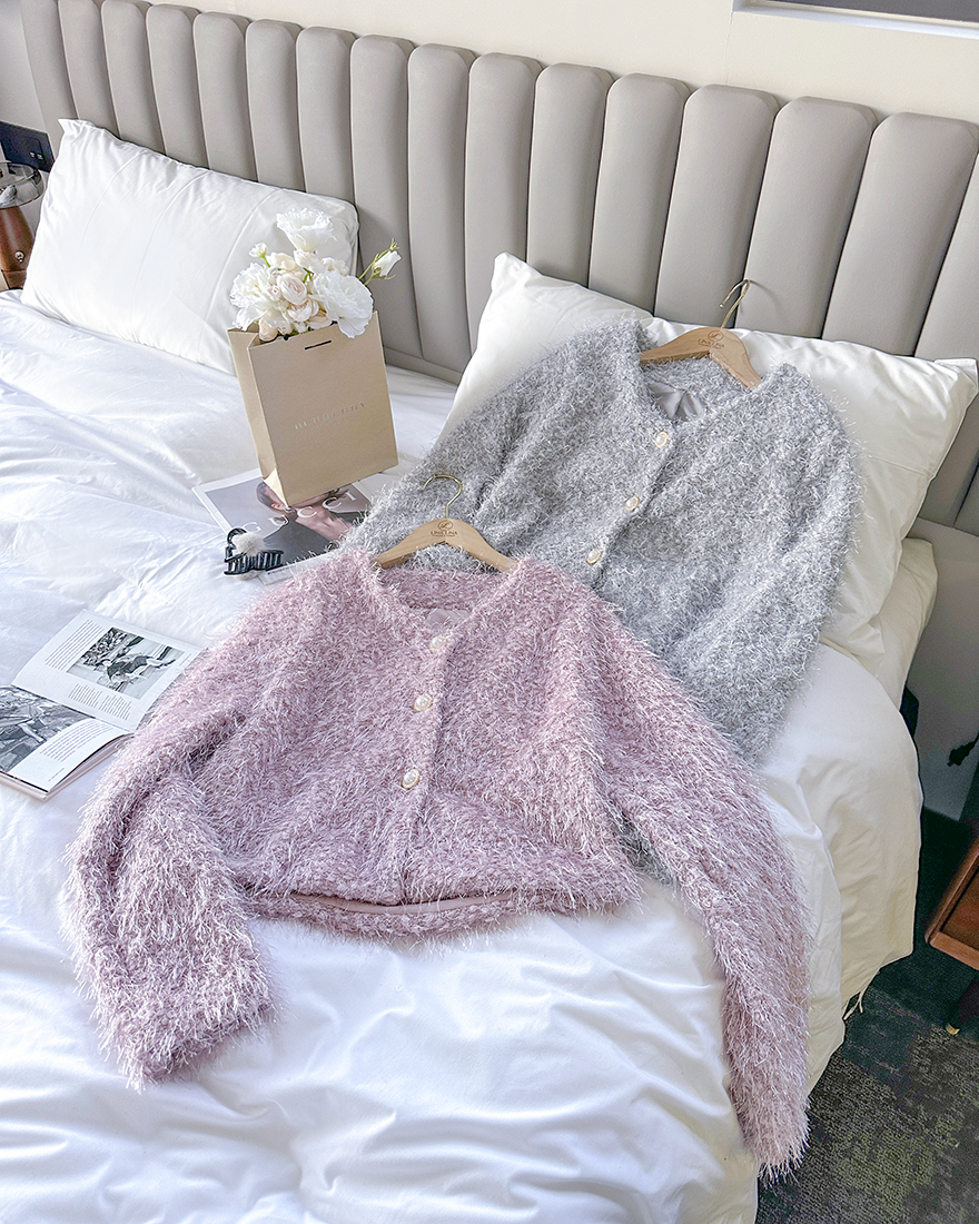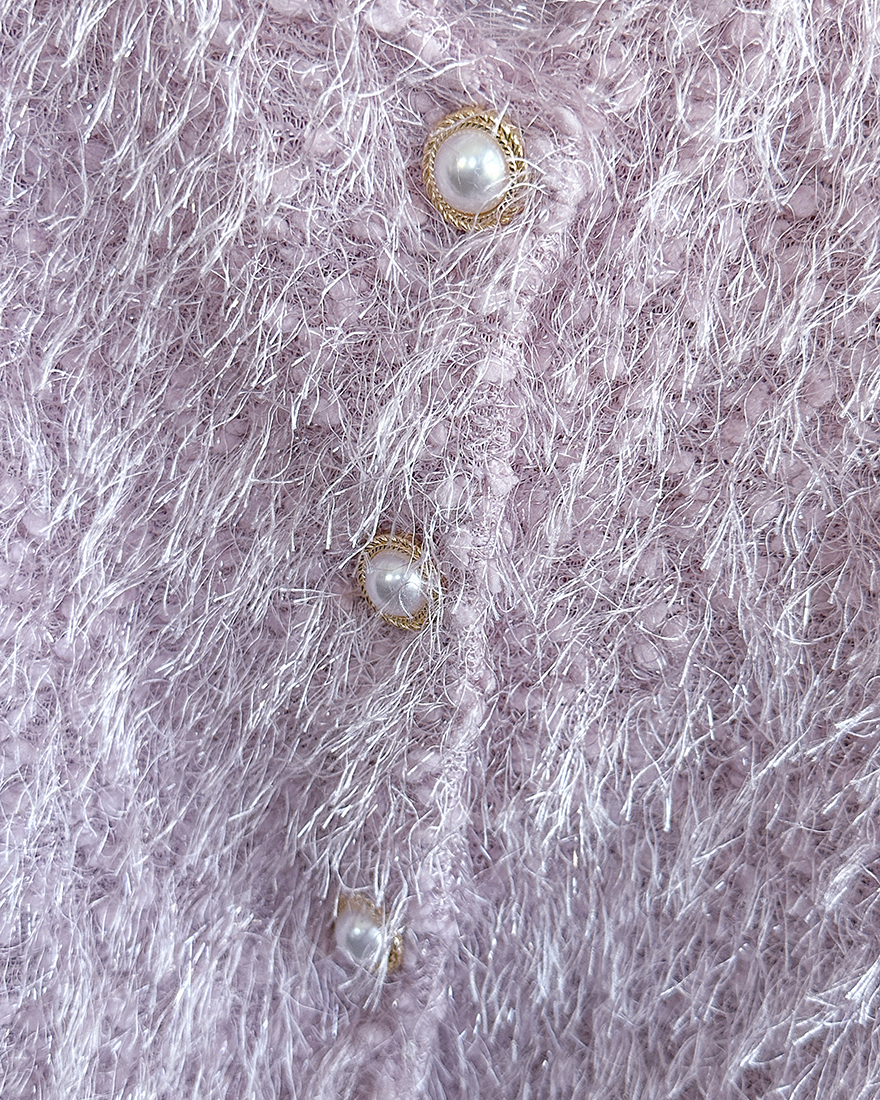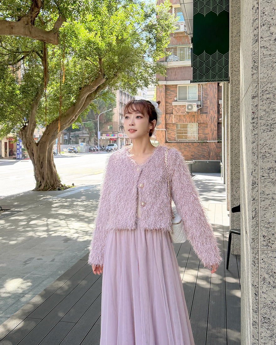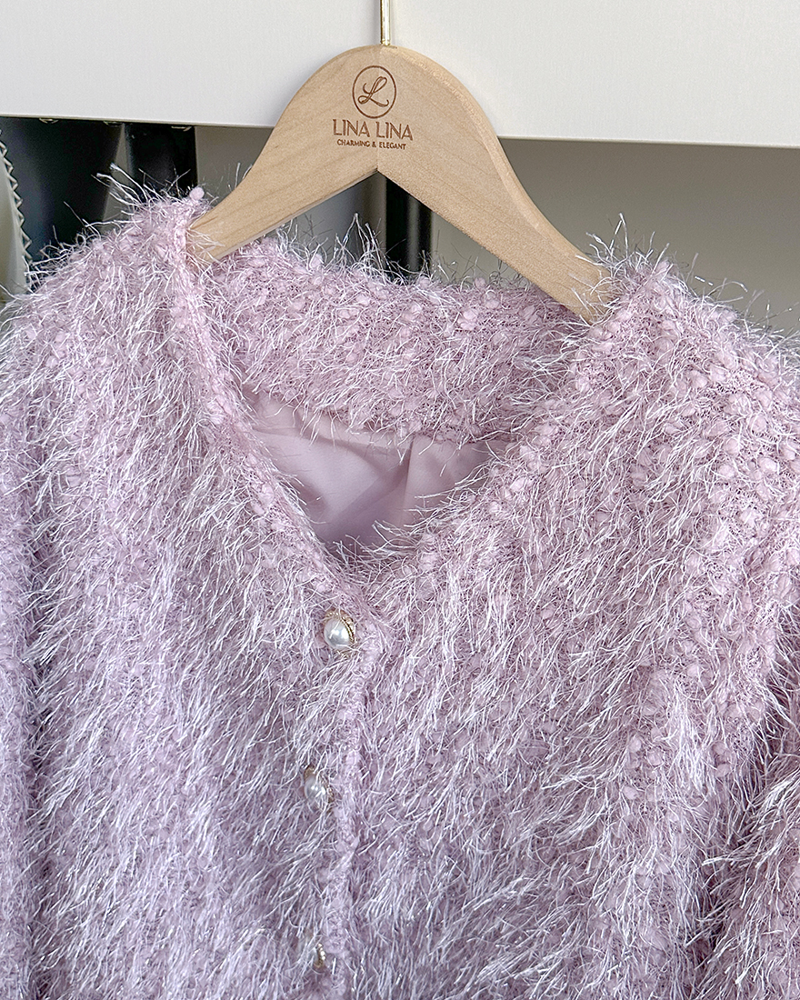 LINA LINA華美升溫馬海毛金邊珍珠釦上衣外套-玫瑰粉
