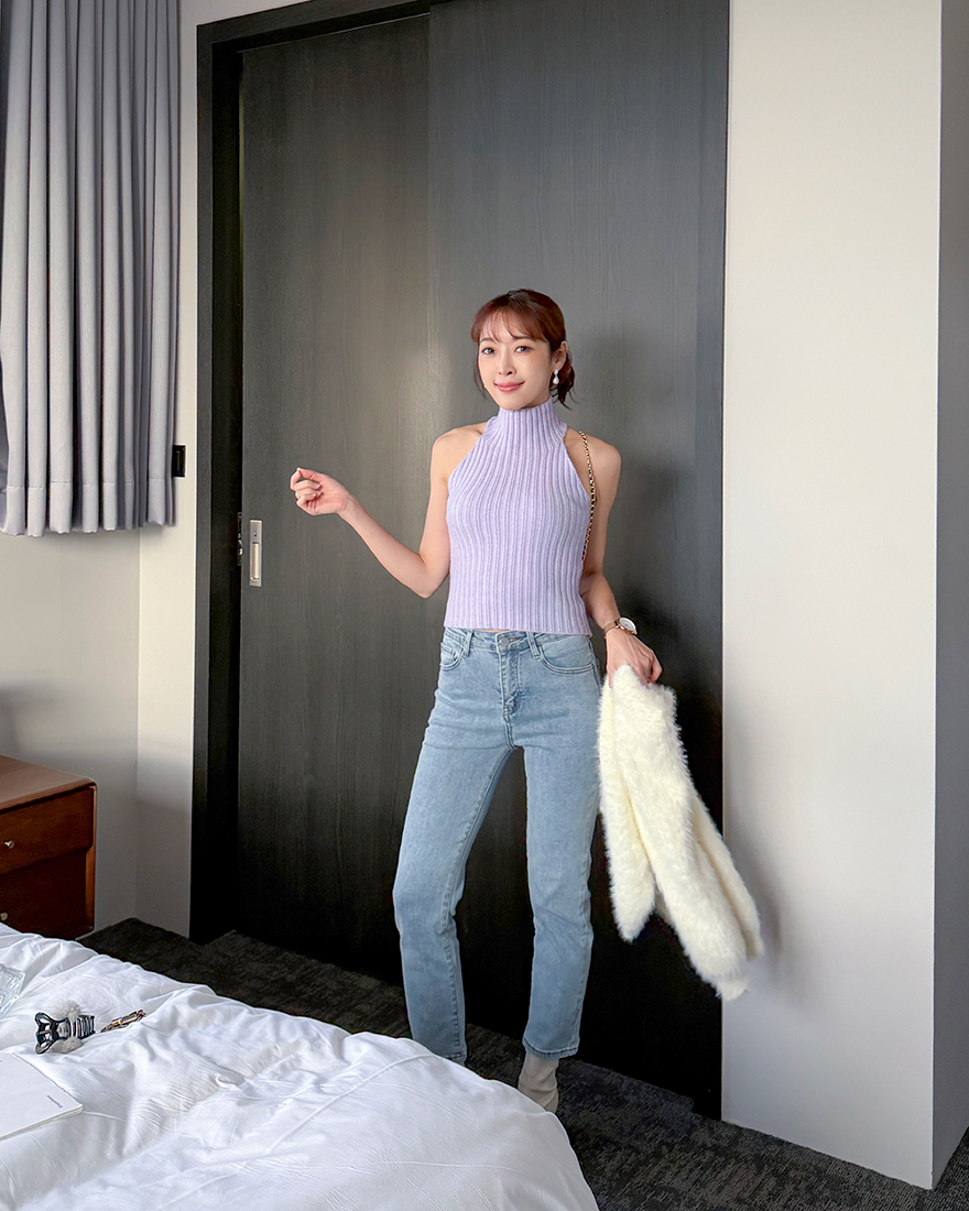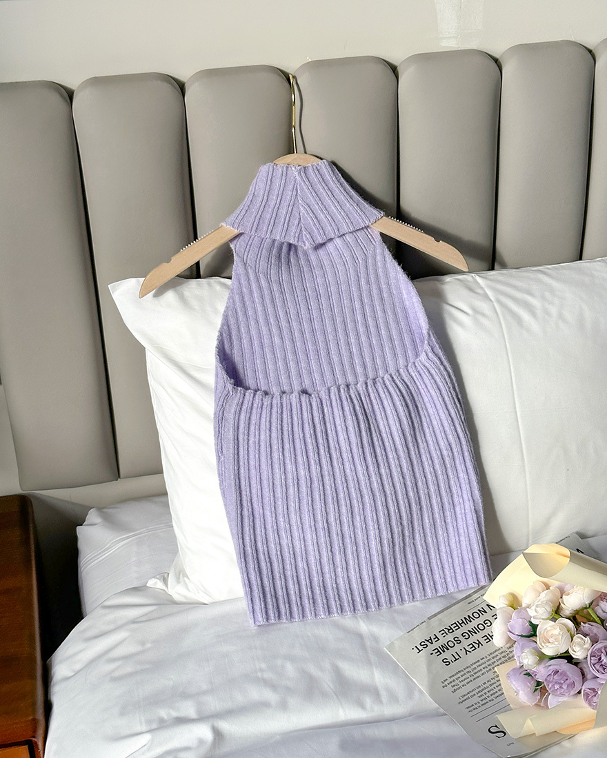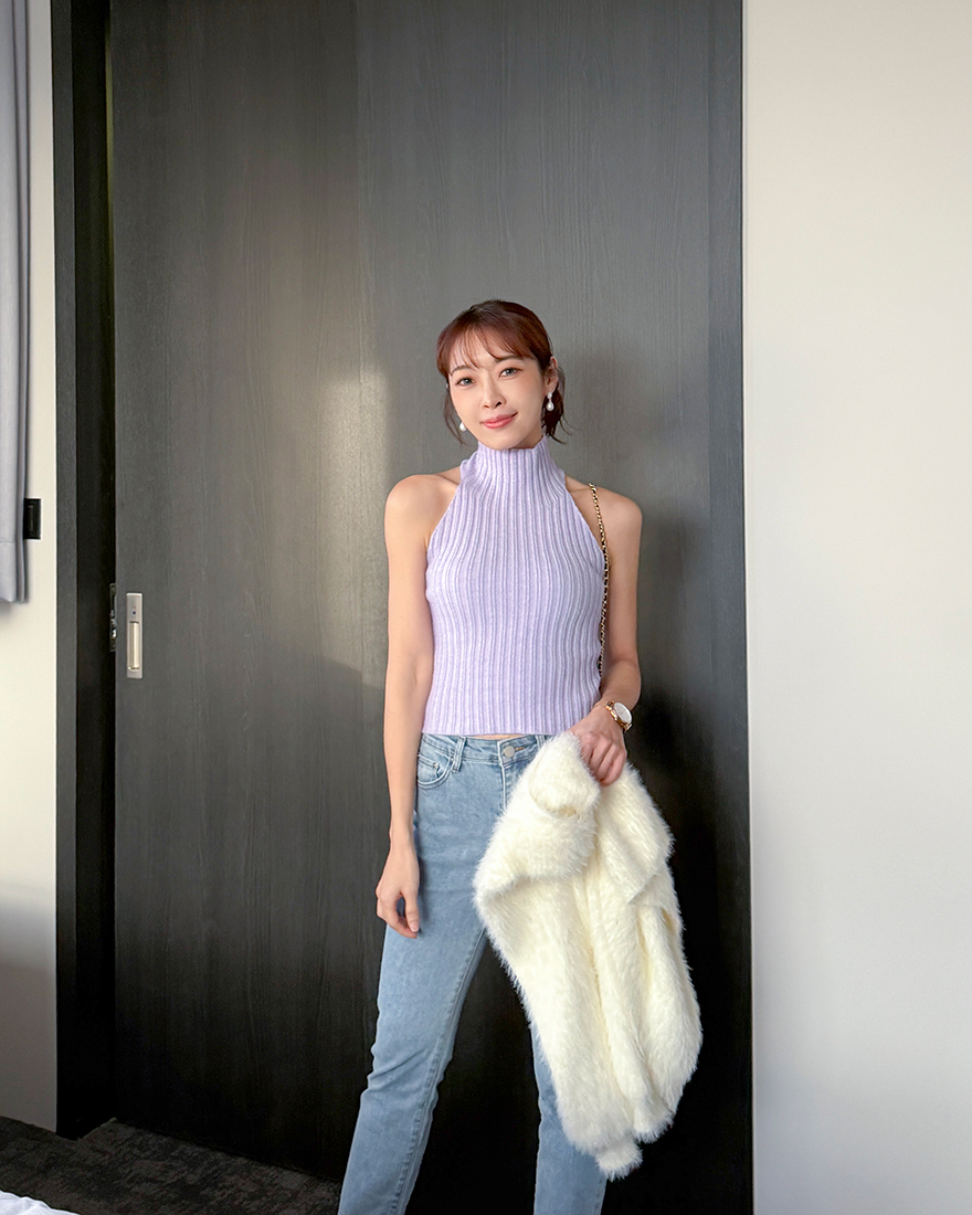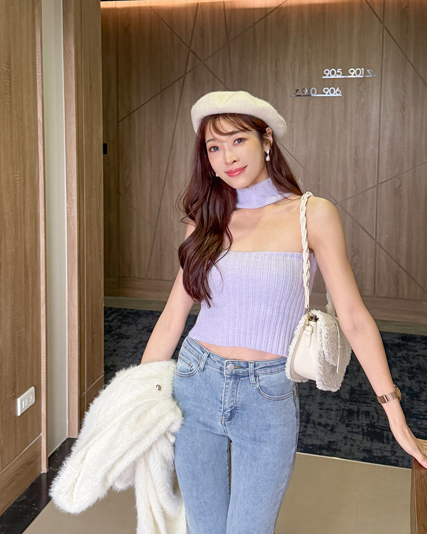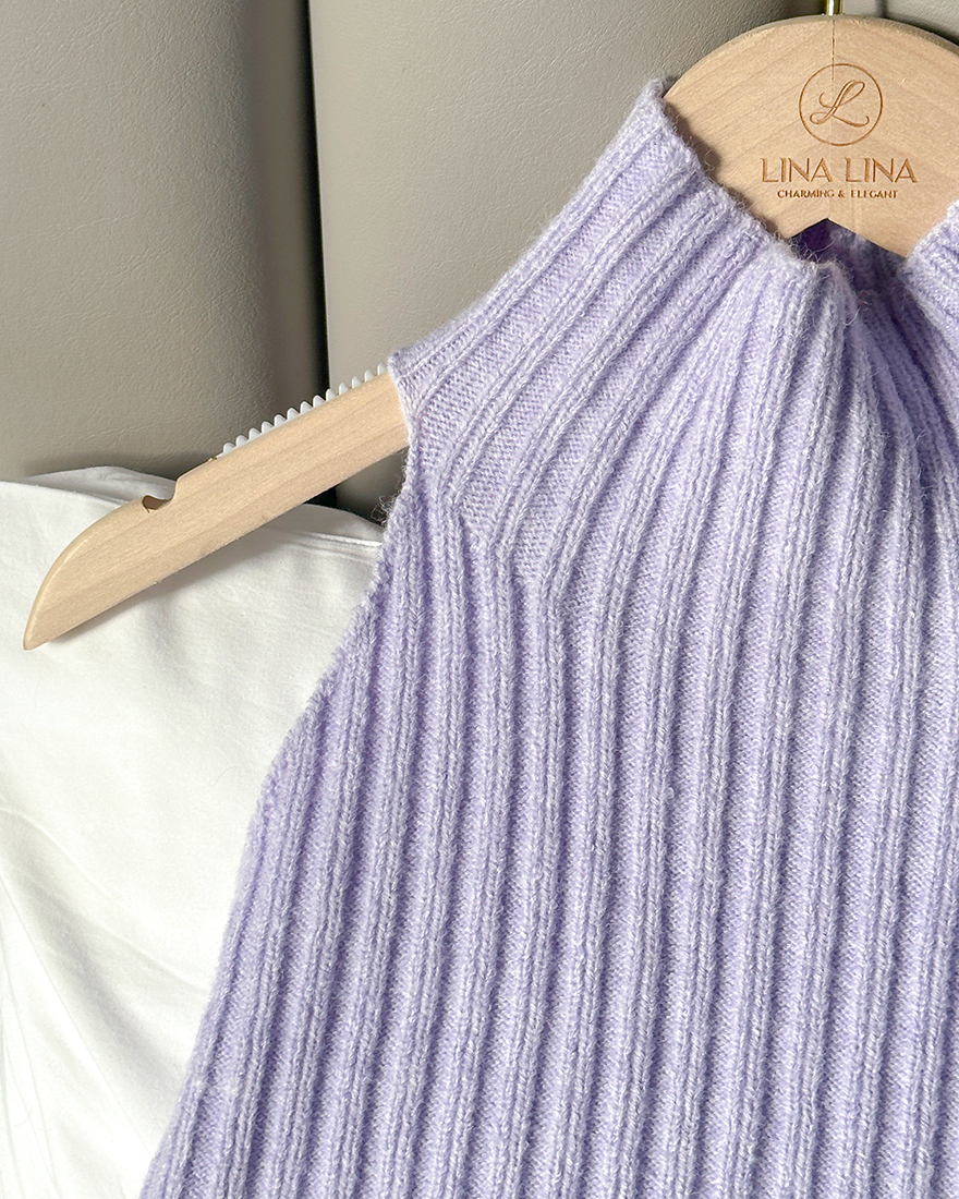 LINA LINA微辣日常純色坑條造型兩穿繞脖上衣-高雅紫
