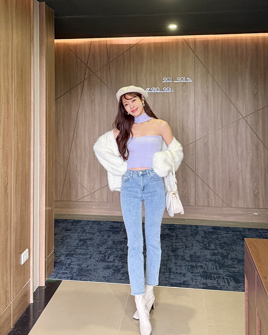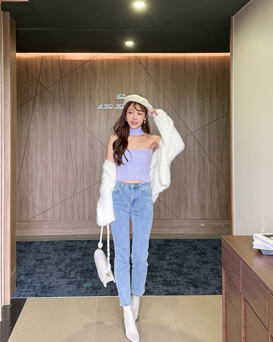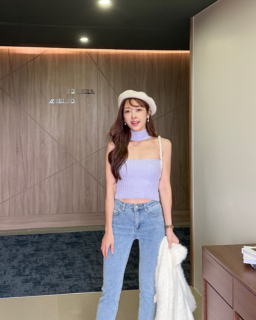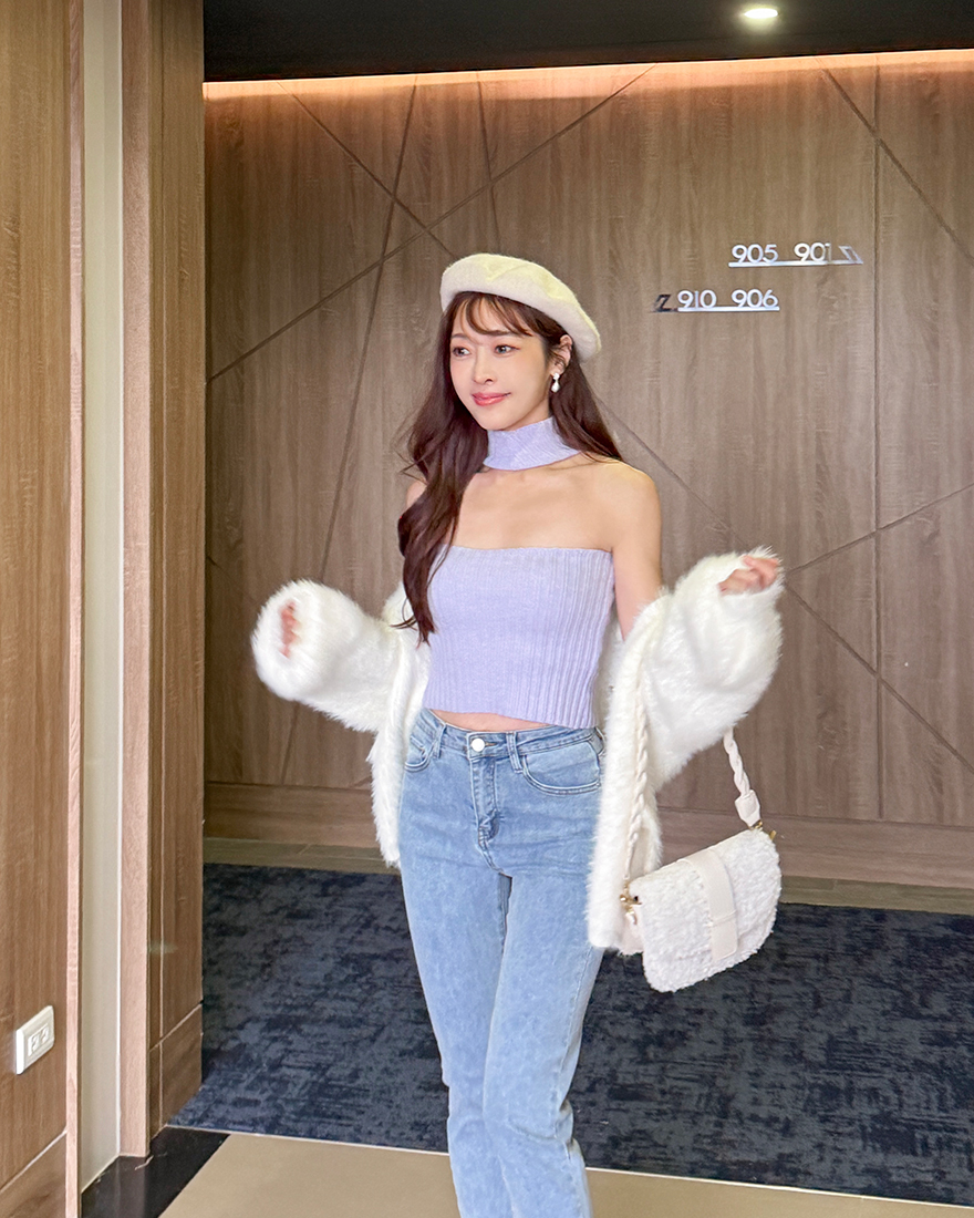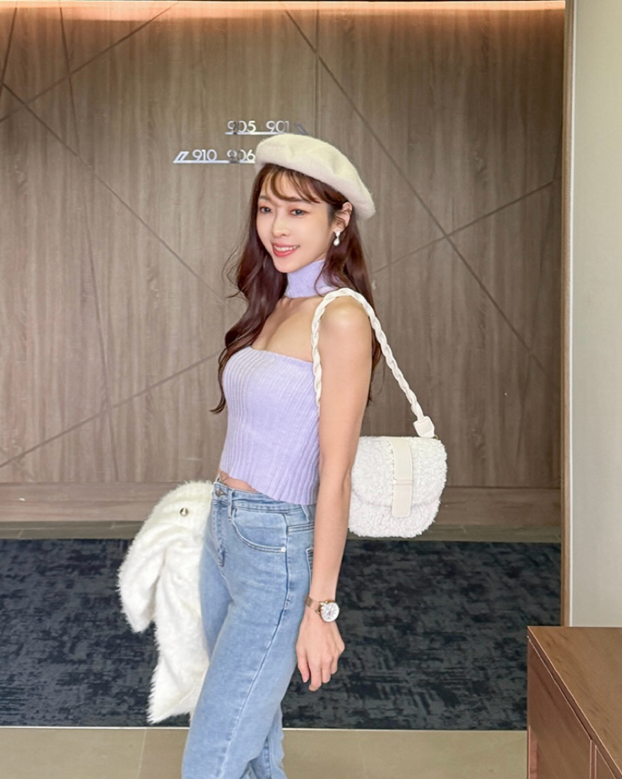 LINA LINA微辣日常純色坑條造型兩穿繞脖上衣-高雅紫