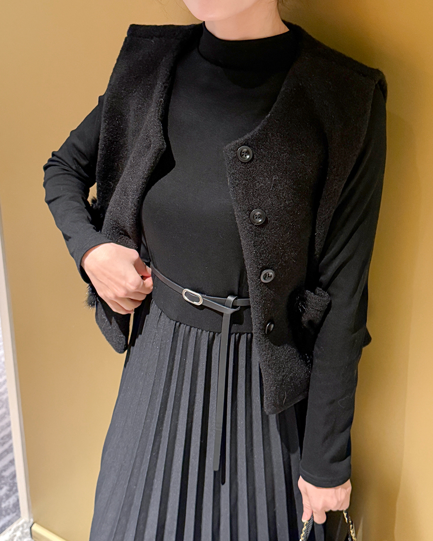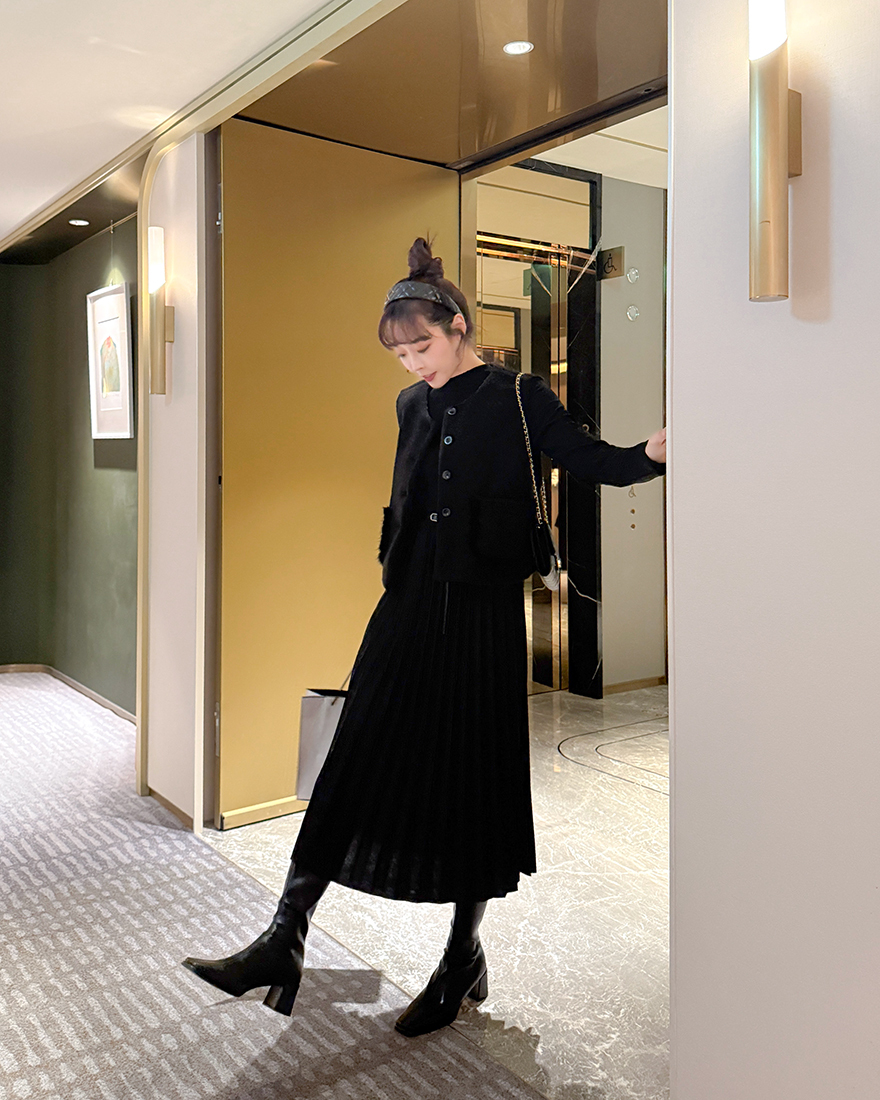 拼接了針織細百褶的連身裙