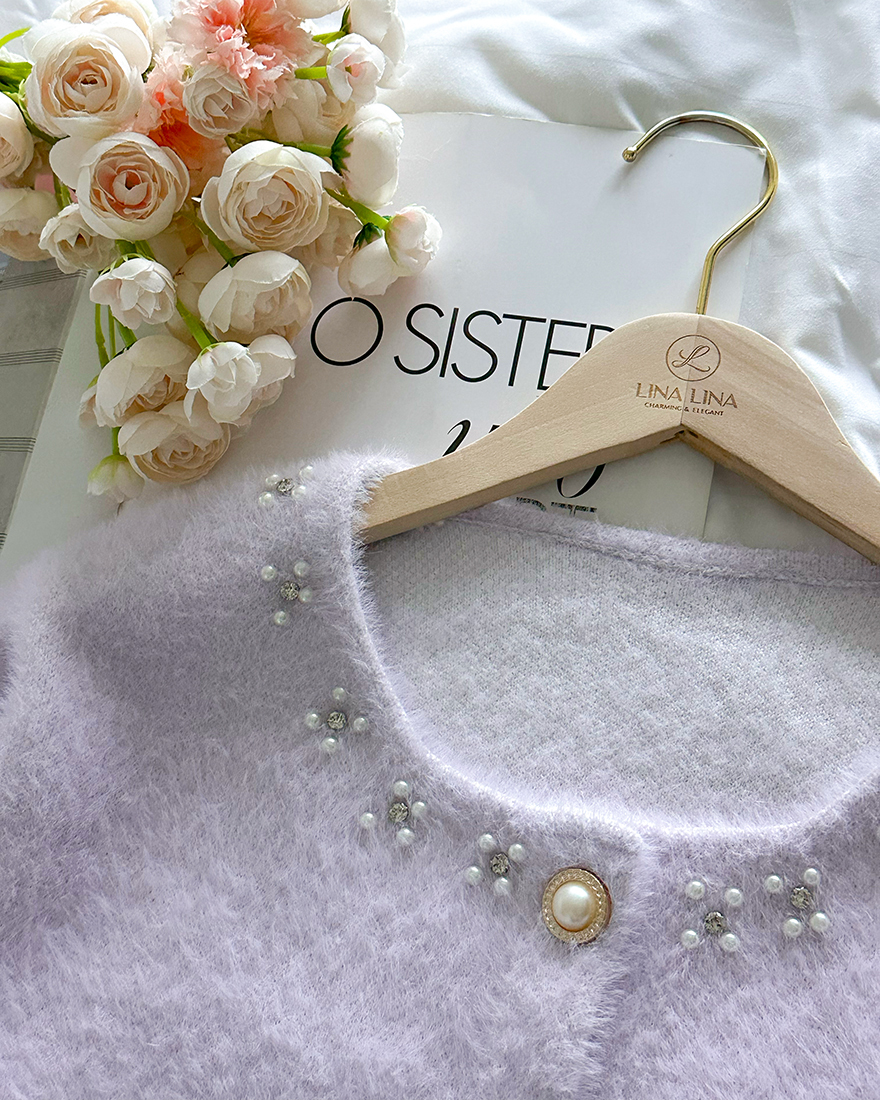 在領口點綴了由⁂鑽石x珍珠組成的花朵⁂