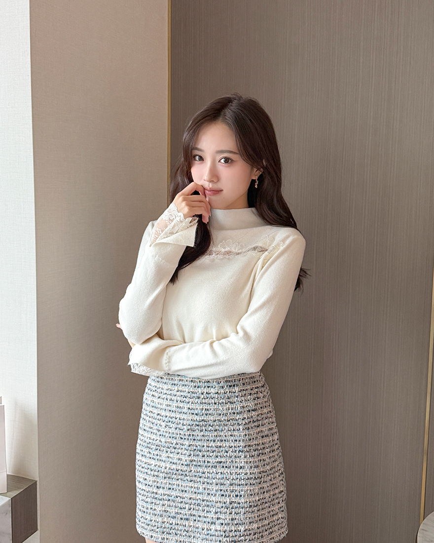 𝓶𝓲𝔁拼接了蕾絲的喇叭袖型