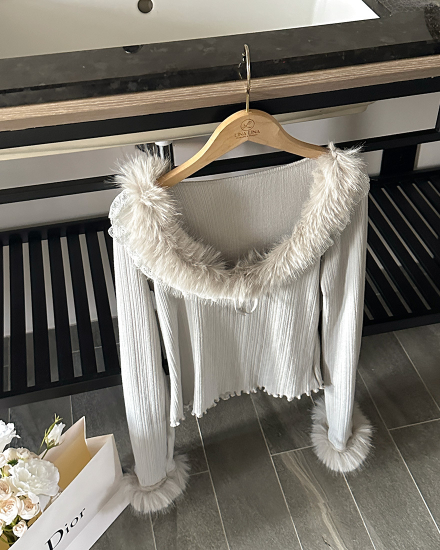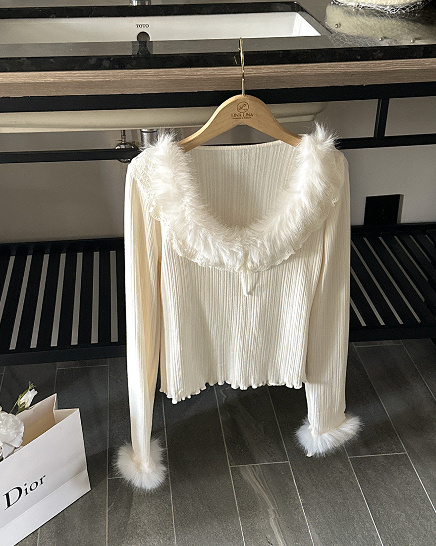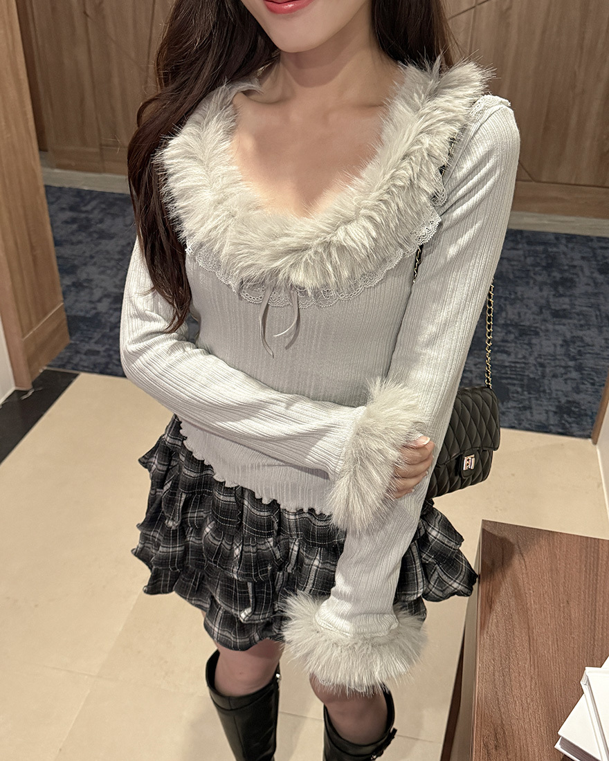 ⓥⓢ點綴🪶仿兔毛的柔軟毛毛跟蕾絲滾邊
