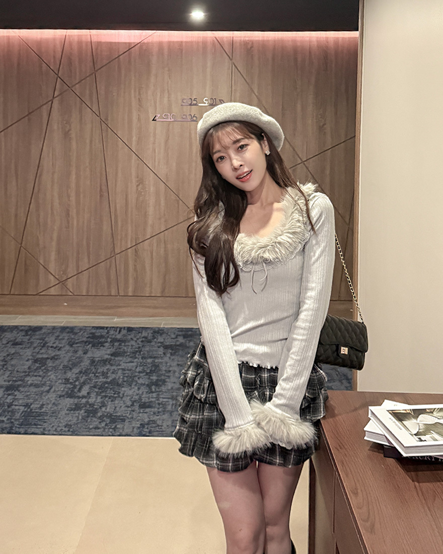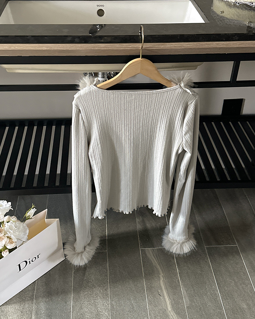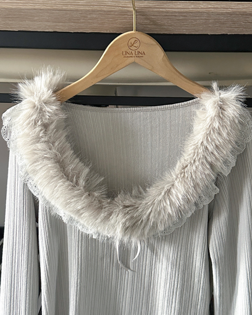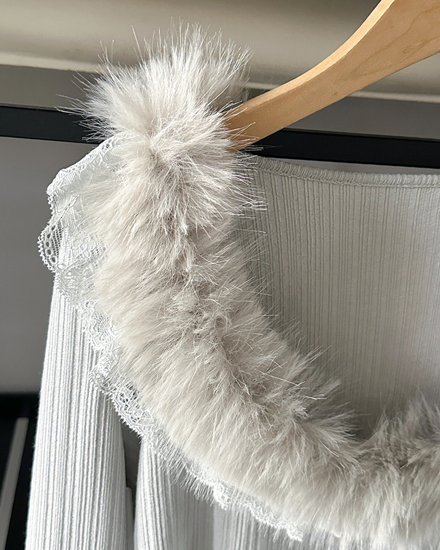 ⓥⓢ點綴🪶仿兔毛的柔軟毛毛跟蕾絲滾邊
