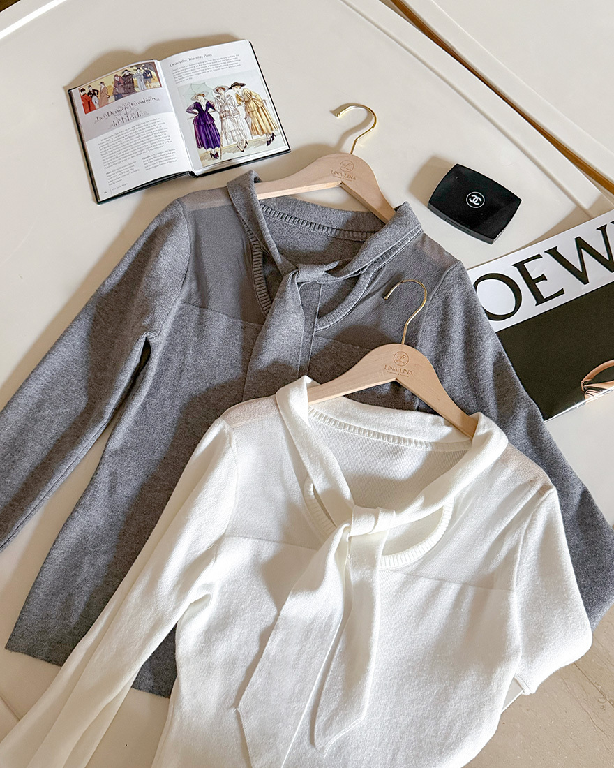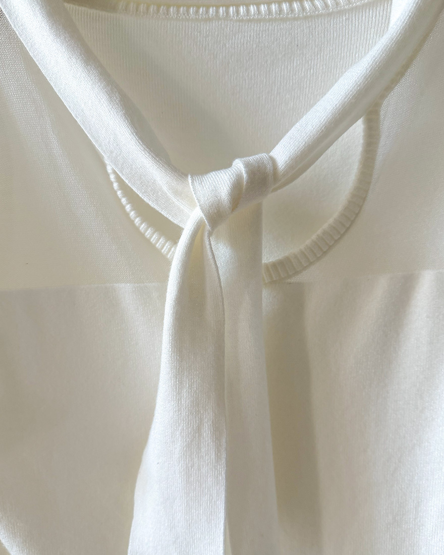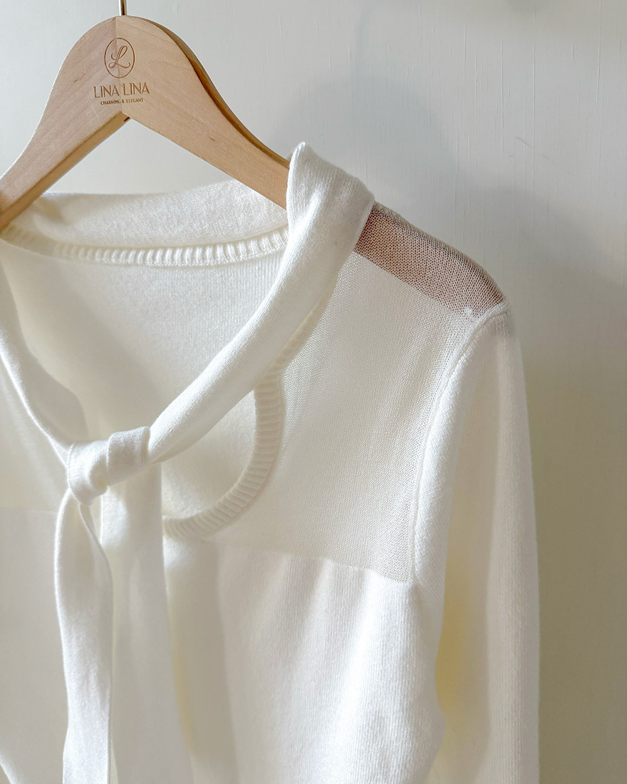 LINA LINA微辣篇章透紗綁結造型假兩件上衣-象牙白