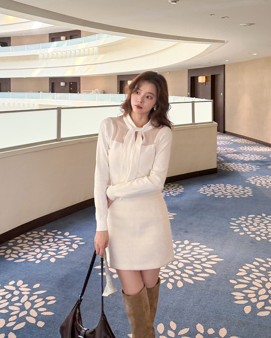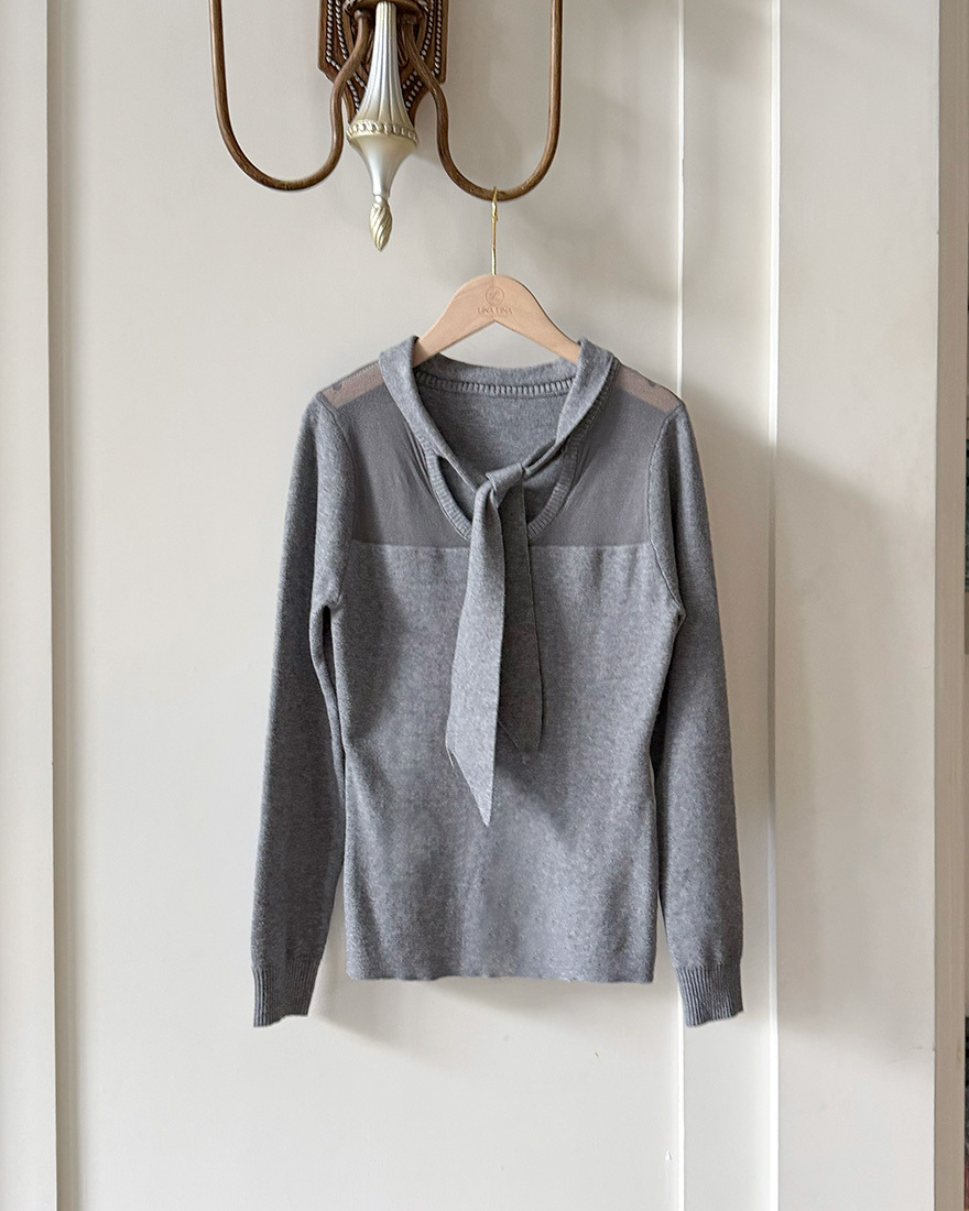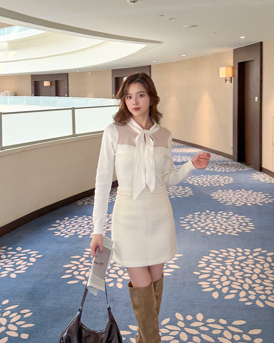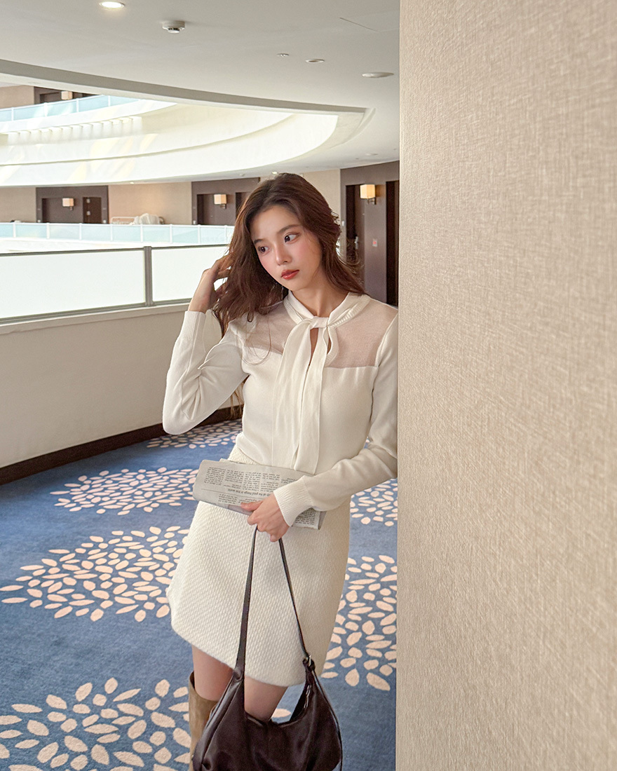 LINA LINA微辣篇章透紗綁結造型假兩件上衣-象牙白