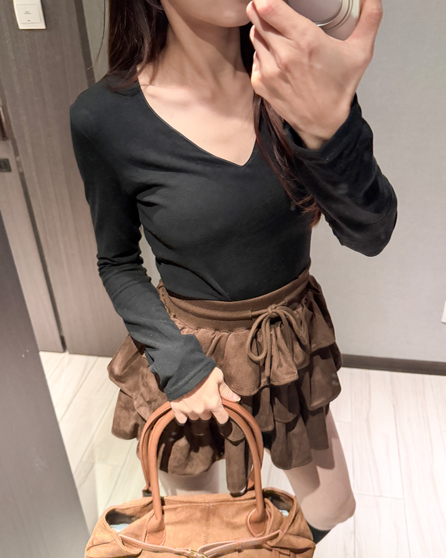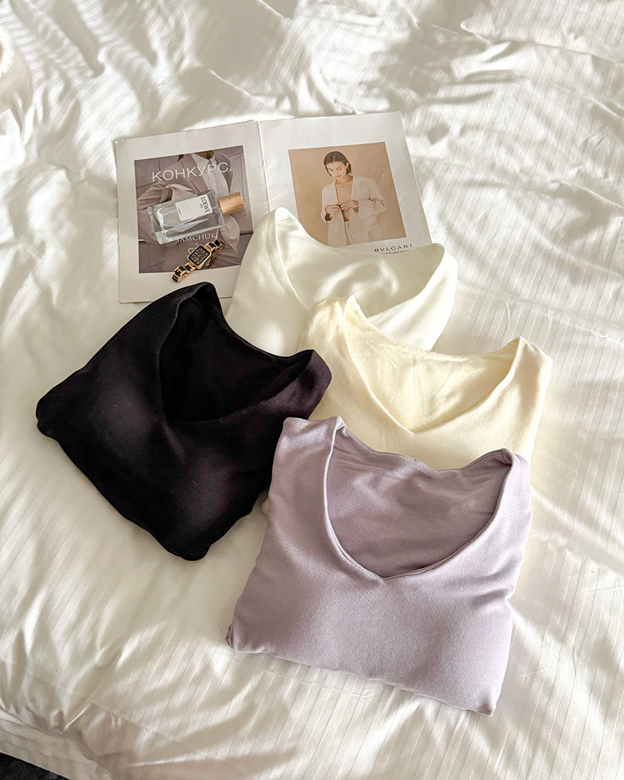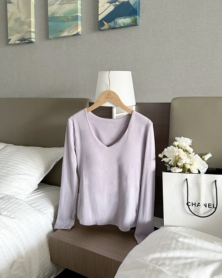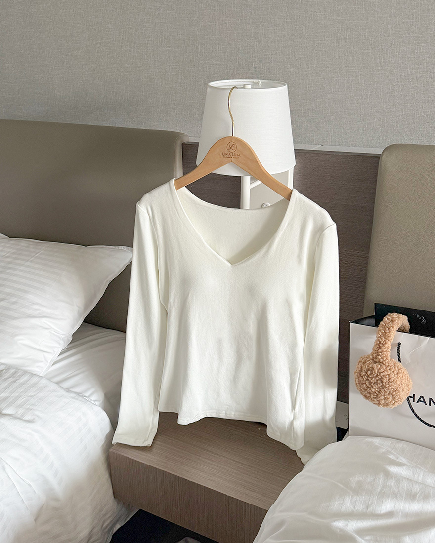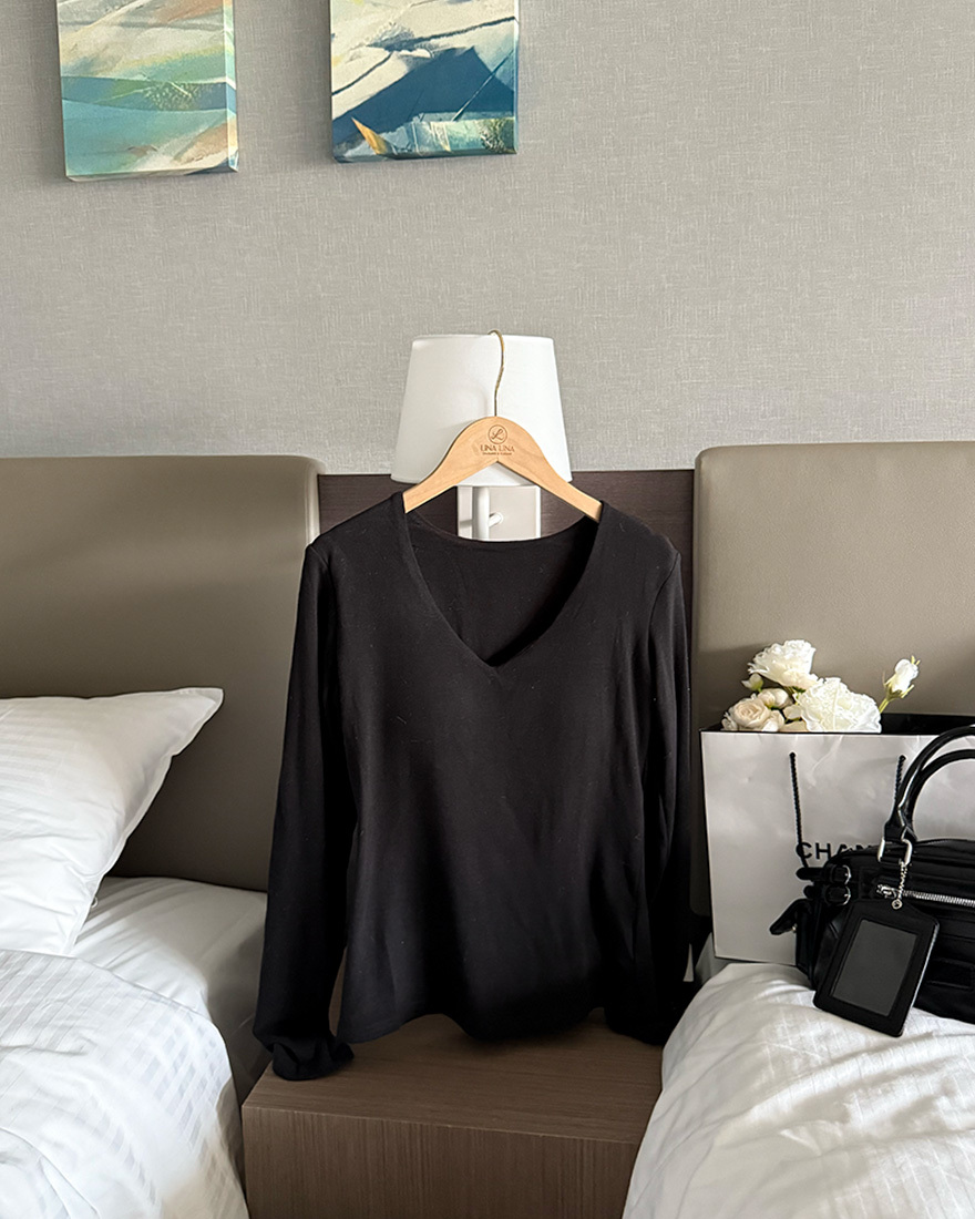 LINA LINA日常調劑舒適V領BRA TOP上衣-簡約黑