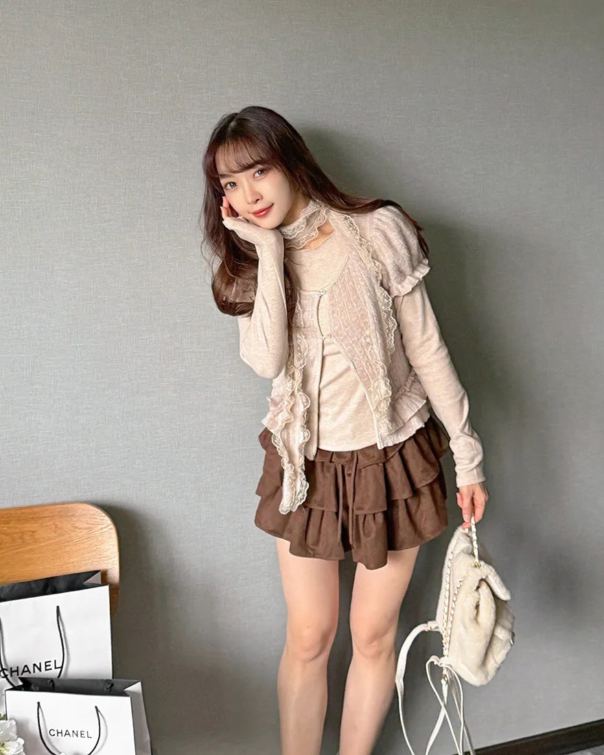 +層層堆疊的荷葉滾邊裙擺