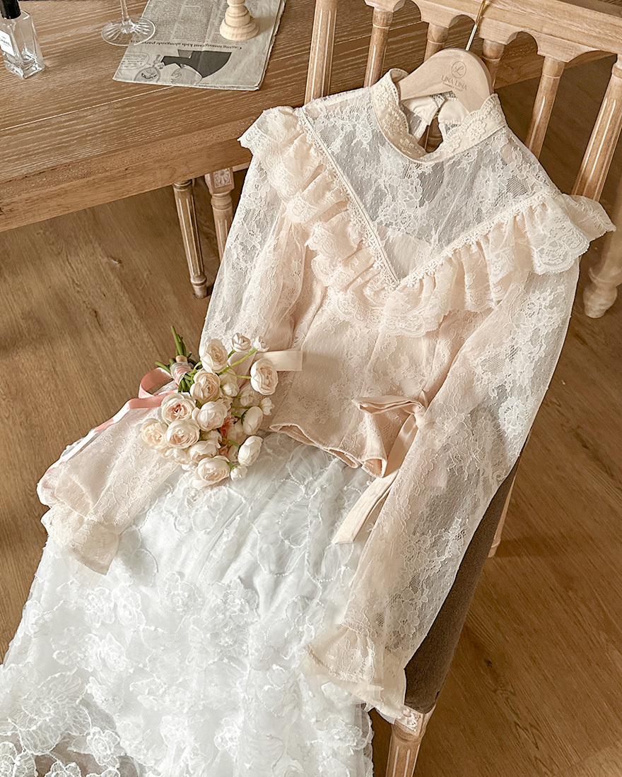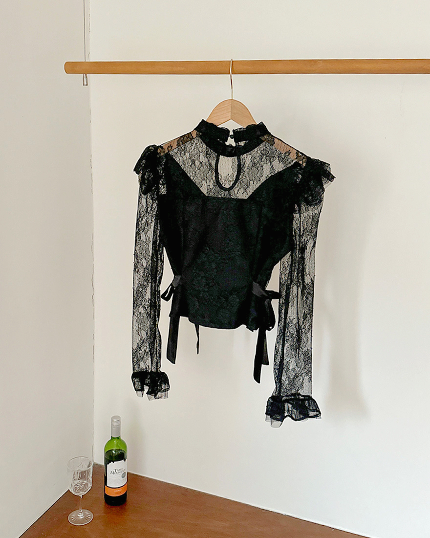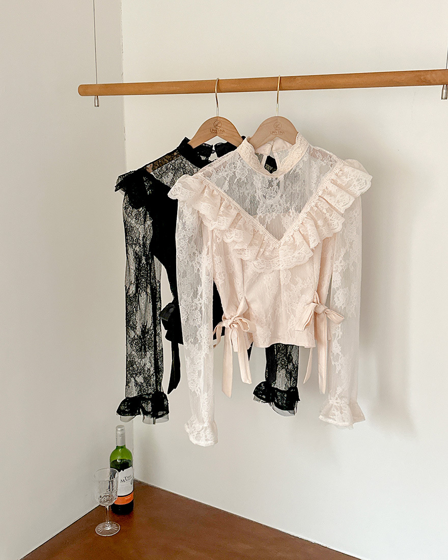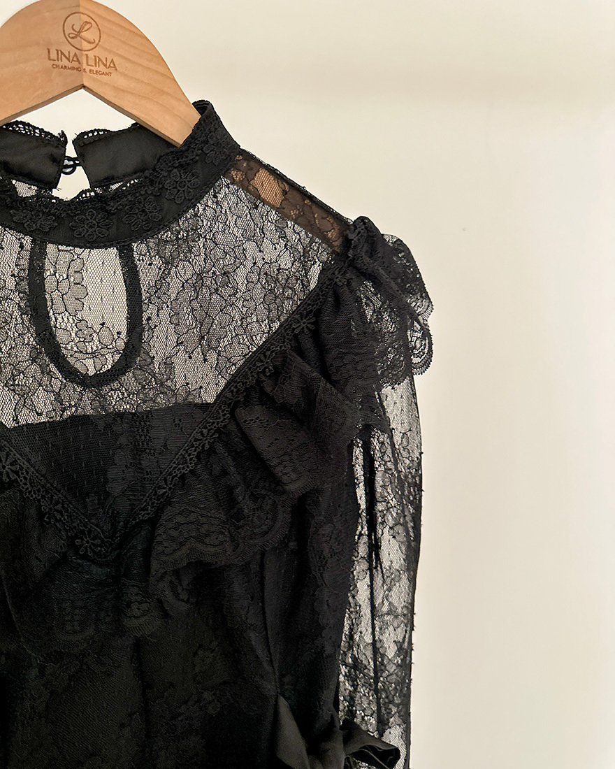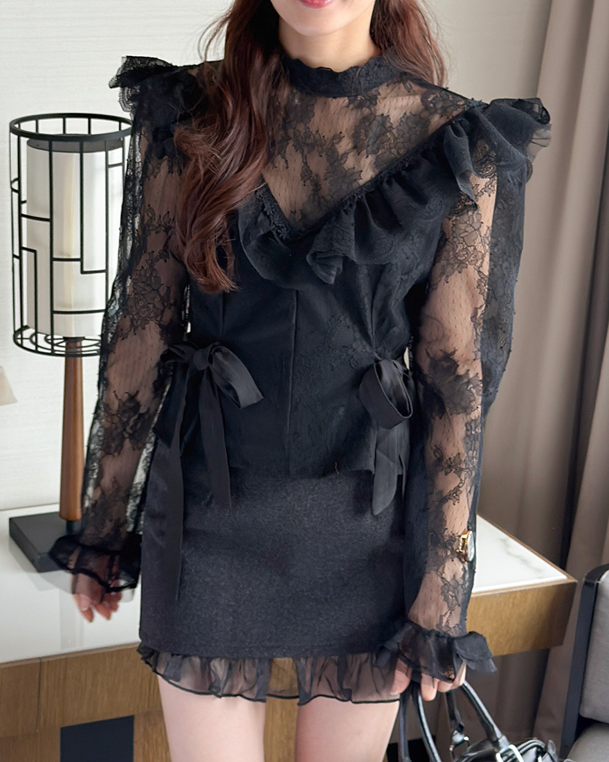 有著精緻蕾絲面料跟拼接透膚網紗蕾絲