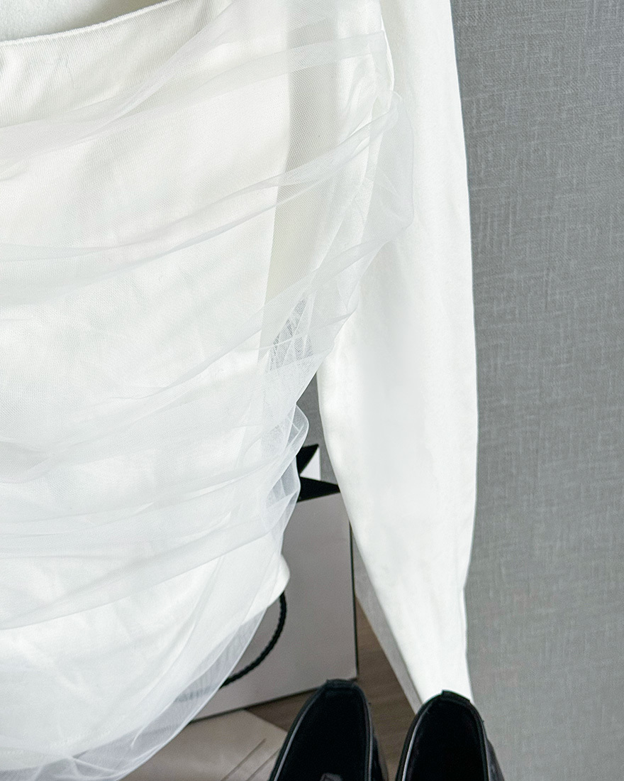 舒適的面料拼接了抓皺網紗