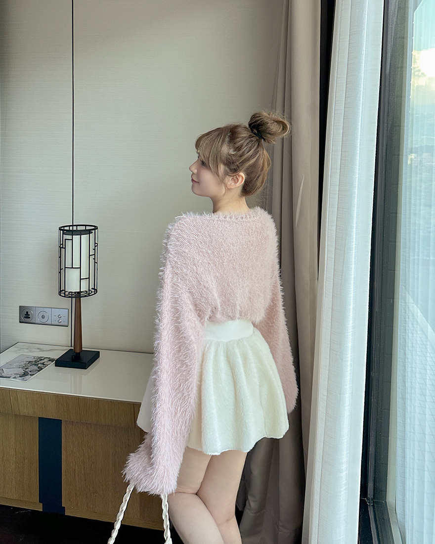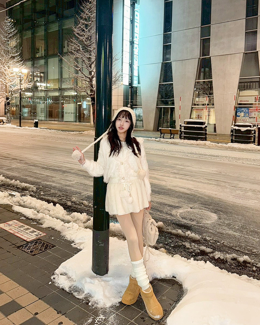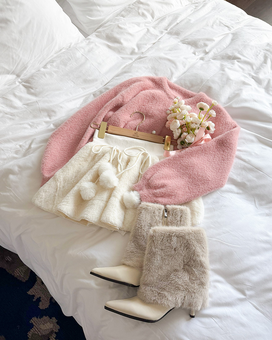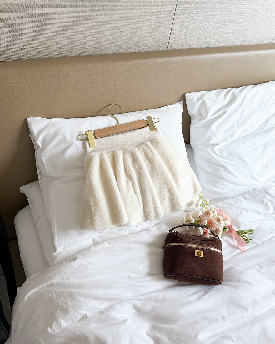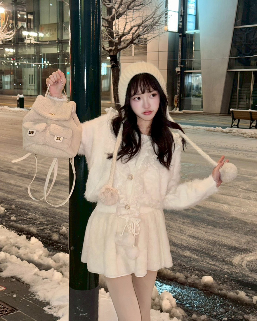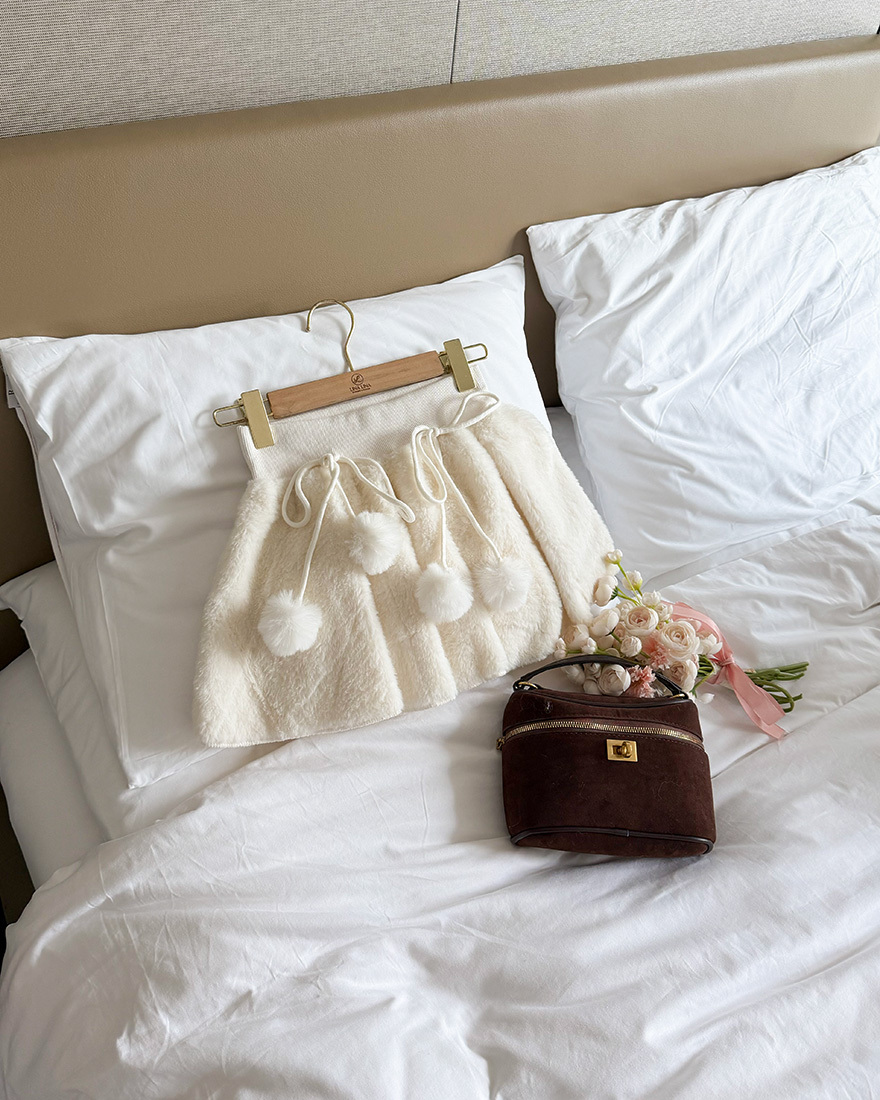 而且在兩側點綴了⦁有著毛球的蝴蝶綁結⦁