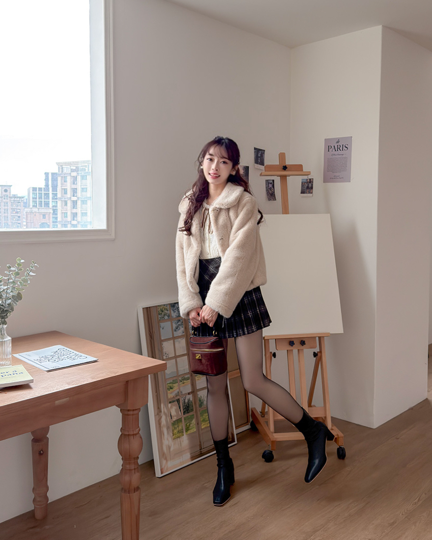做了混色格紋的毛呢面料
