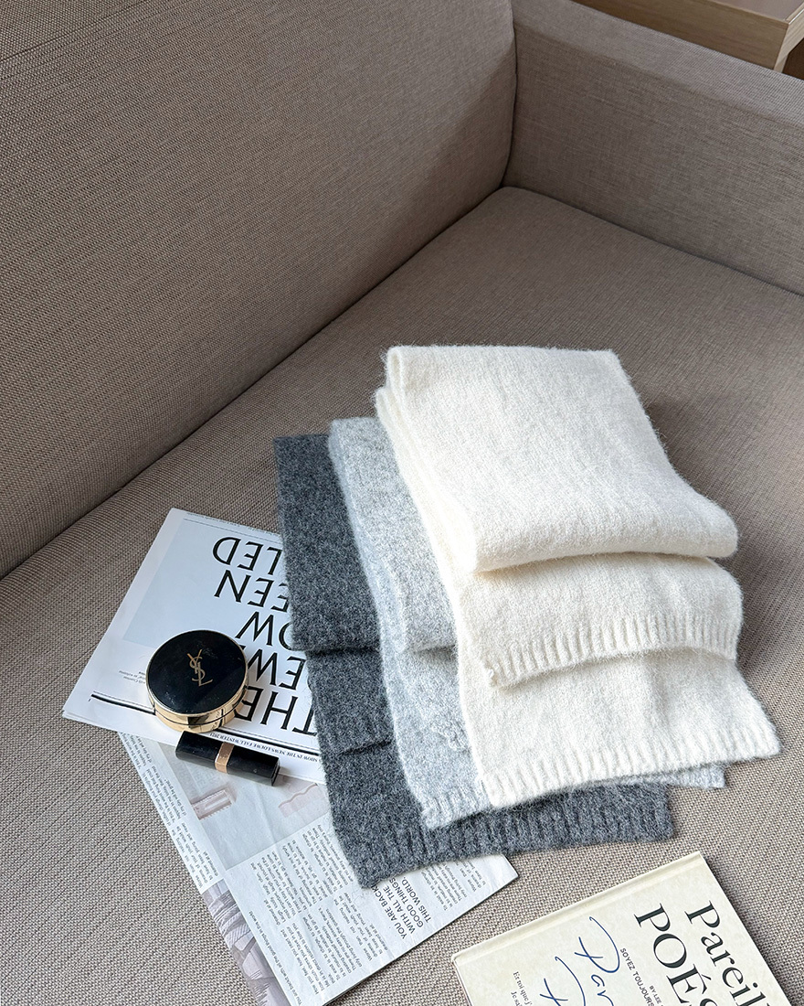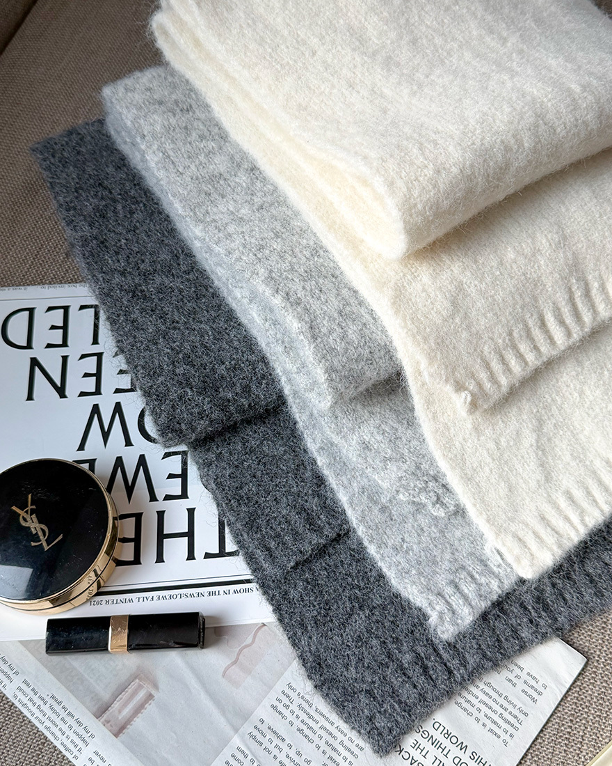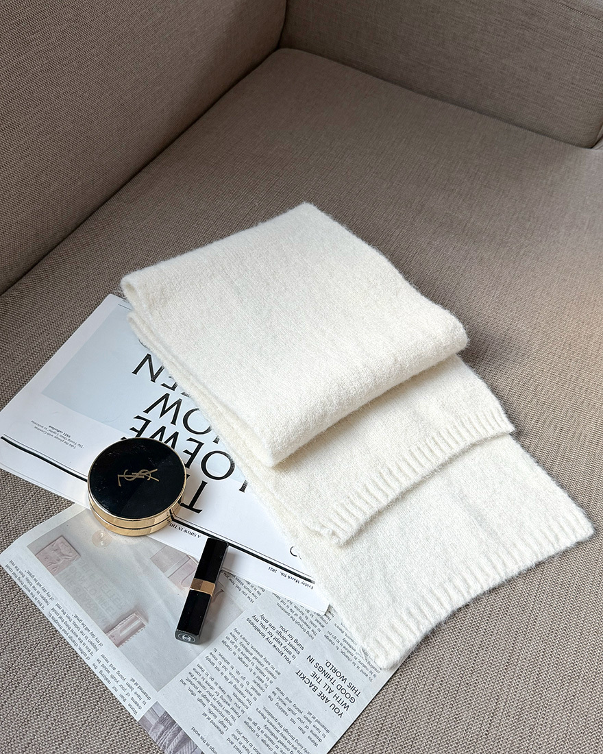 溫暖甜意純色軟綿圍巾-雪花白