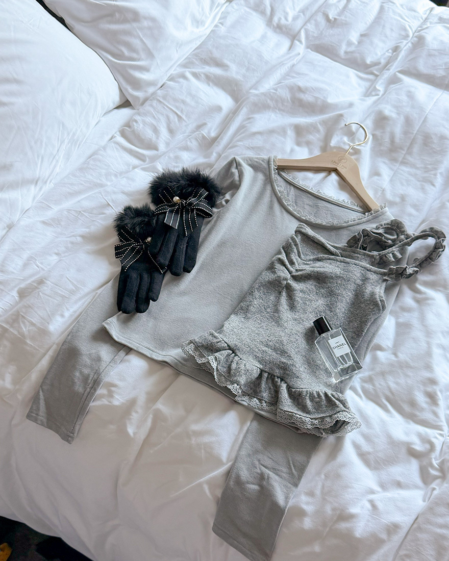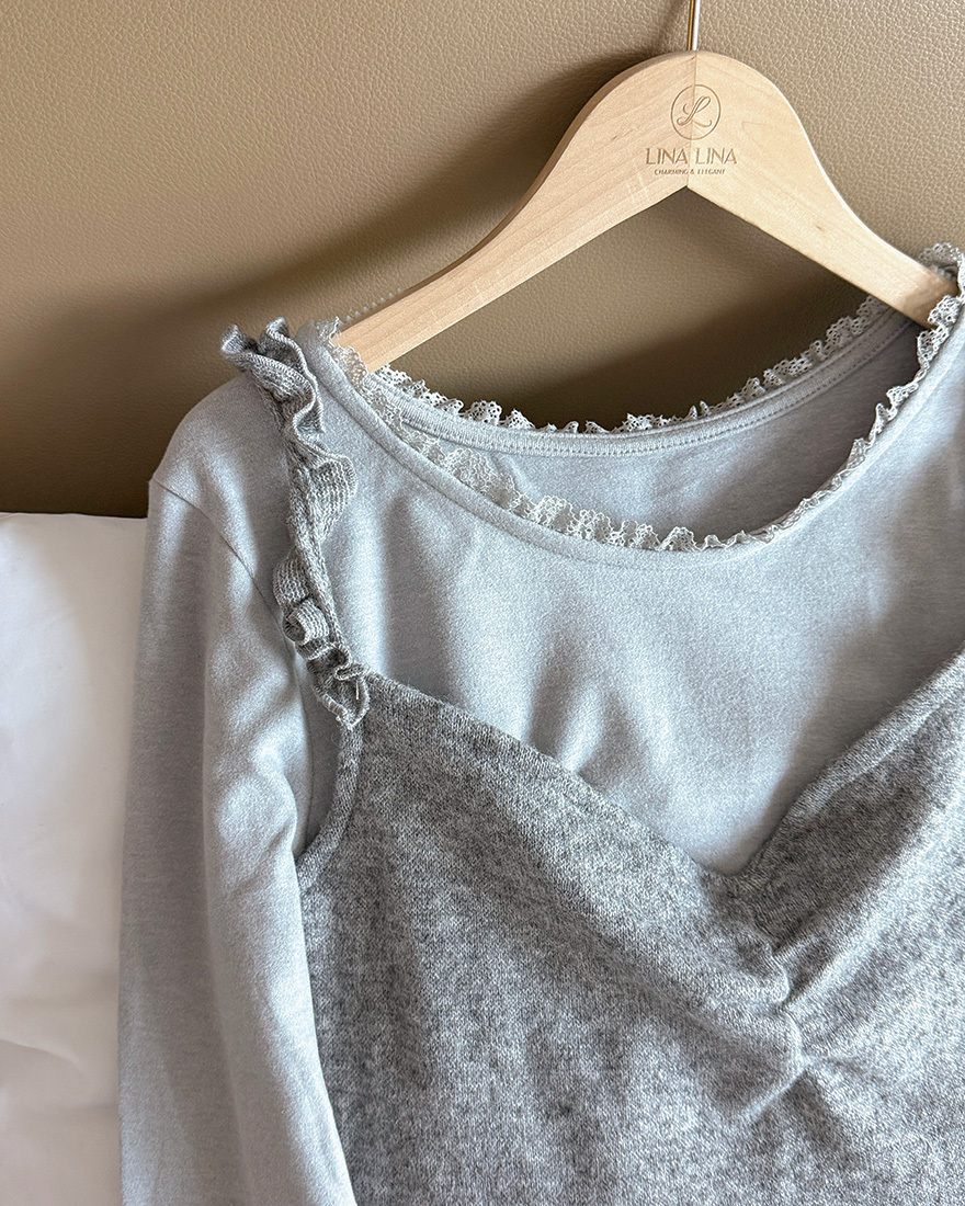 在領口點綴了小亮點的◇蕾絲滾邊◇