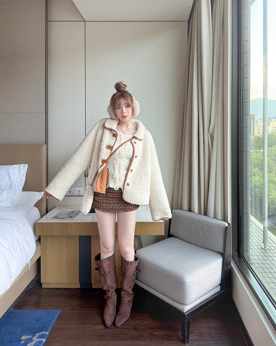 布料為毛呢編織設計,難免有不平整,實屬正常,介意者下標前請慎考慮。