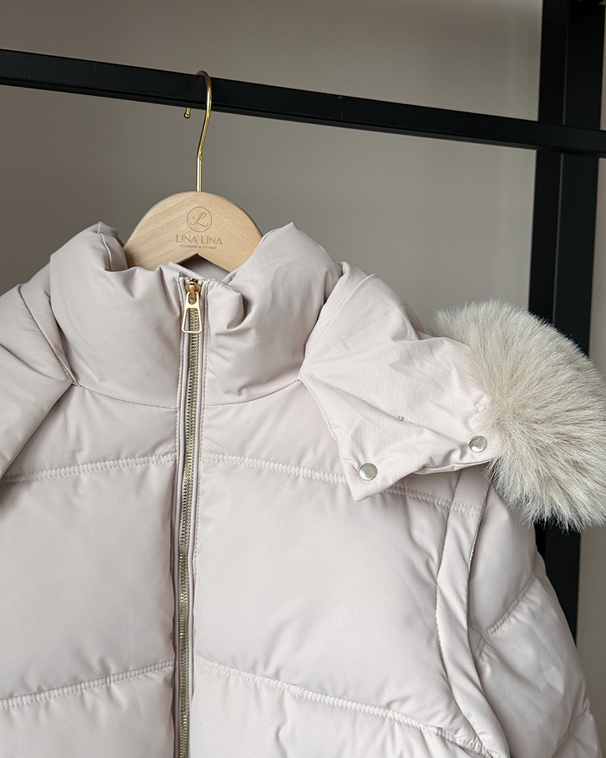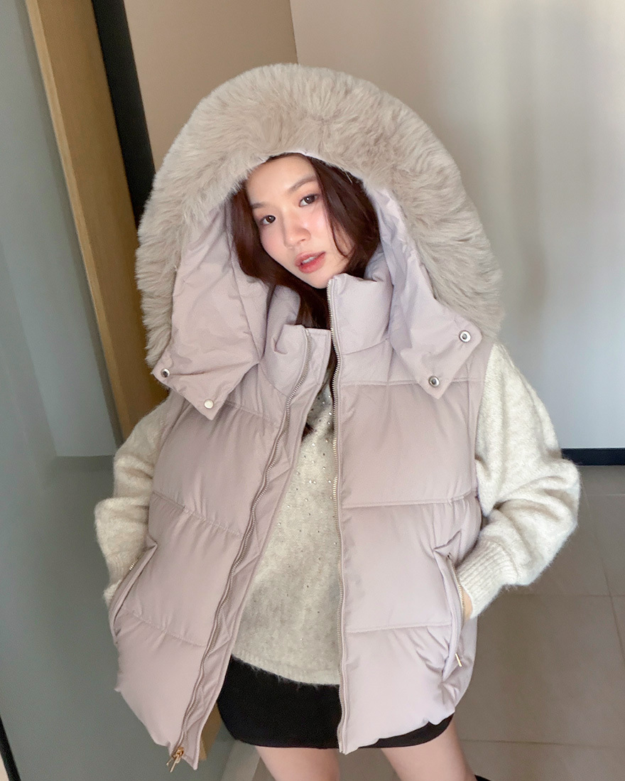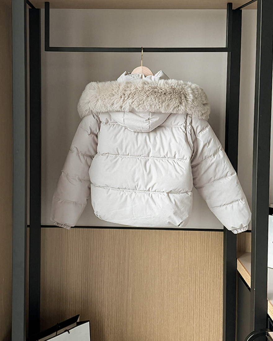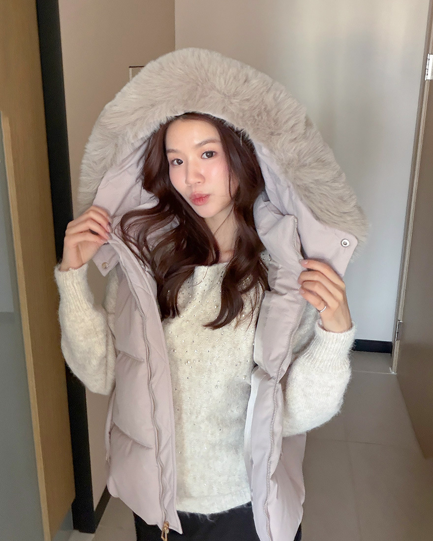 搭配大亮點的"可拆式的柔軟蓬鬆毛領"