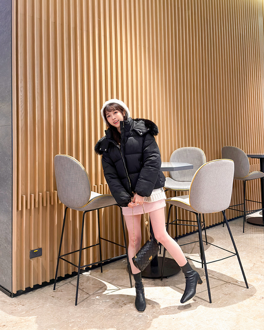 搭配大亮點的"可拆式的柔軟蓬鬆毛領"