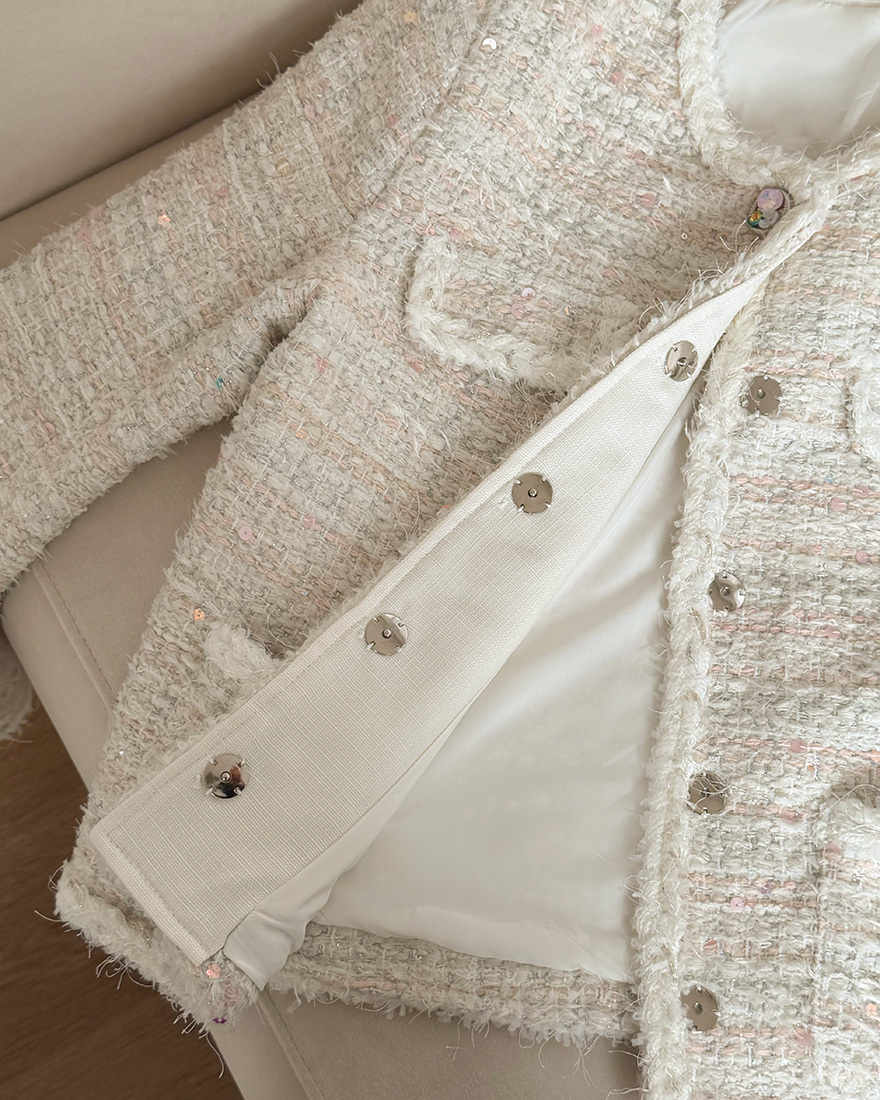 毛呢抽鬚為編織設計,難免有不平整或掉鬚現象,實屬正常。