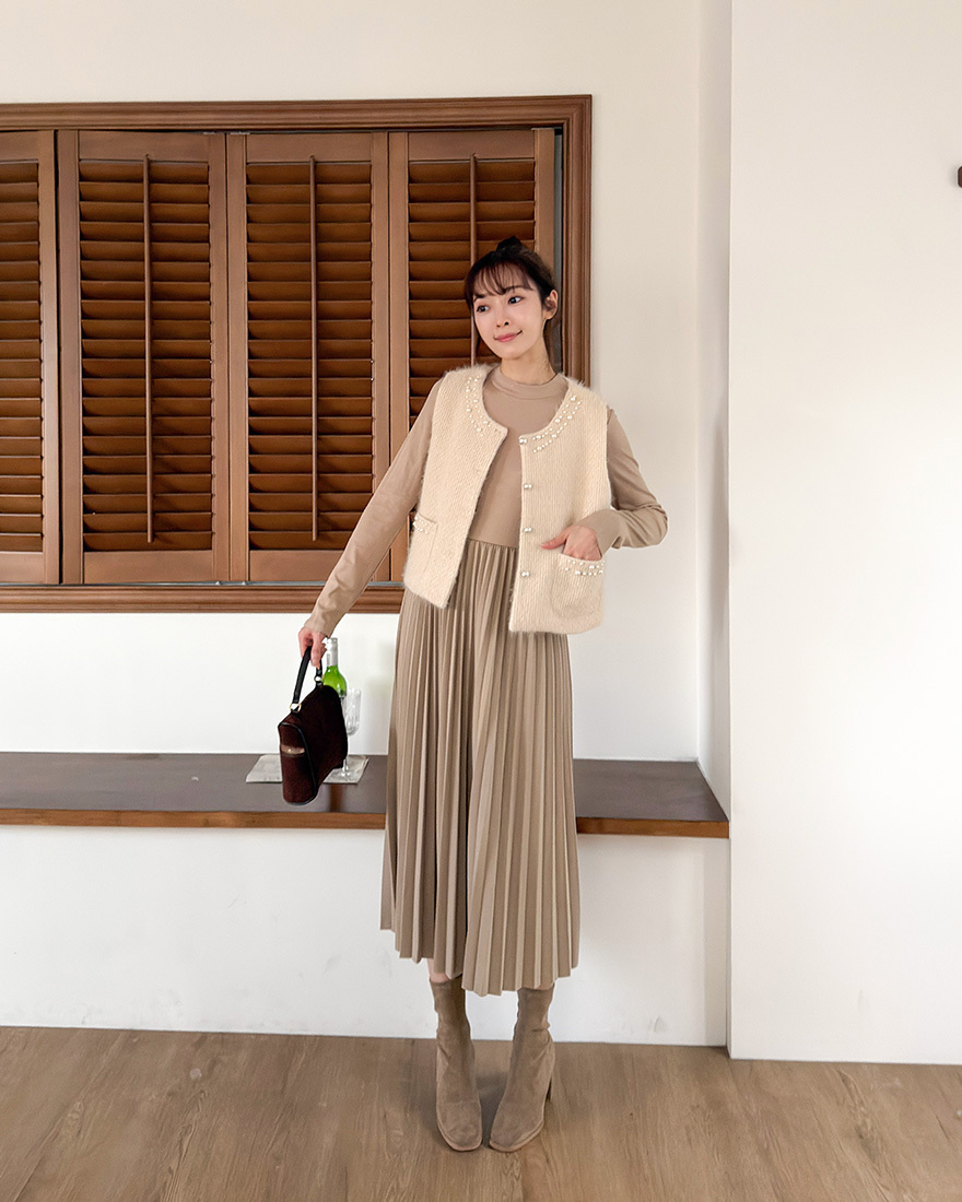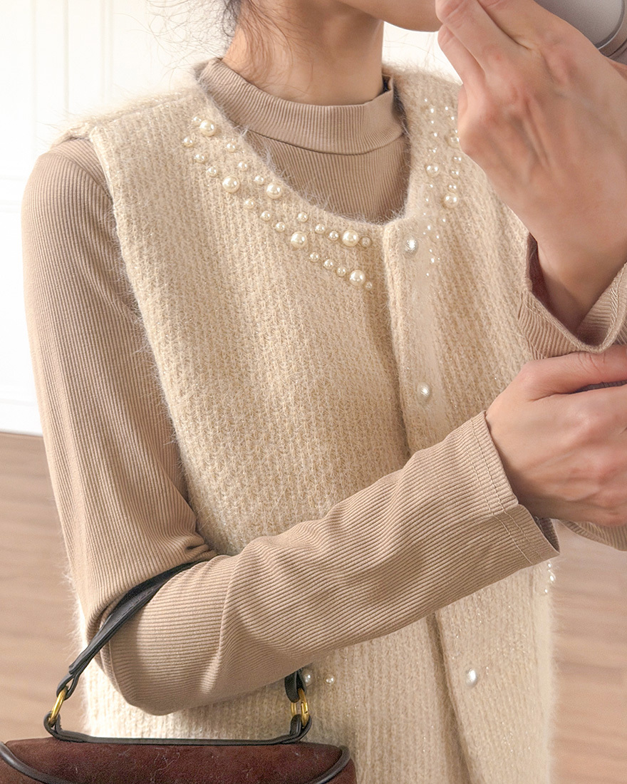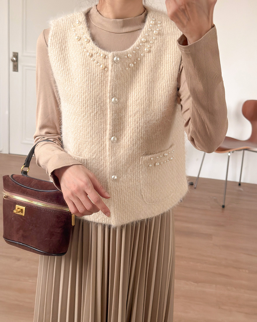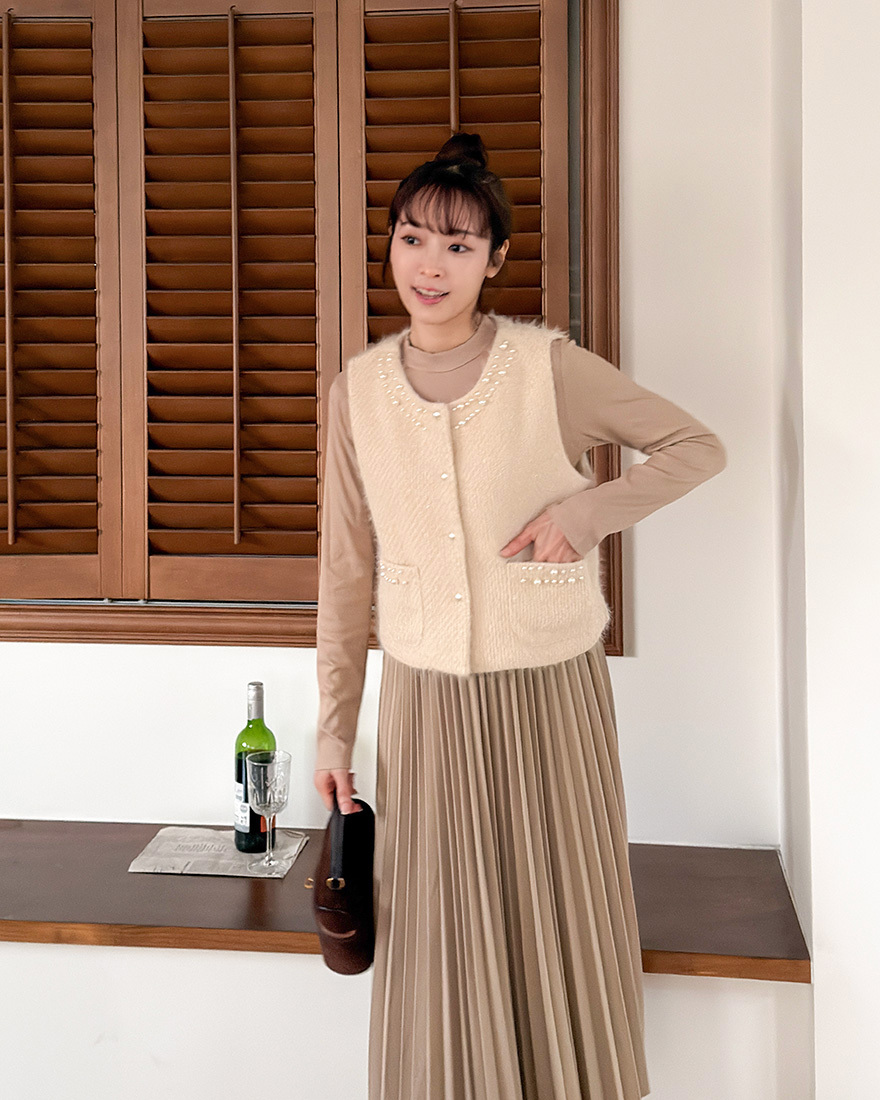 毛料背心點綴了珍珠滾邊