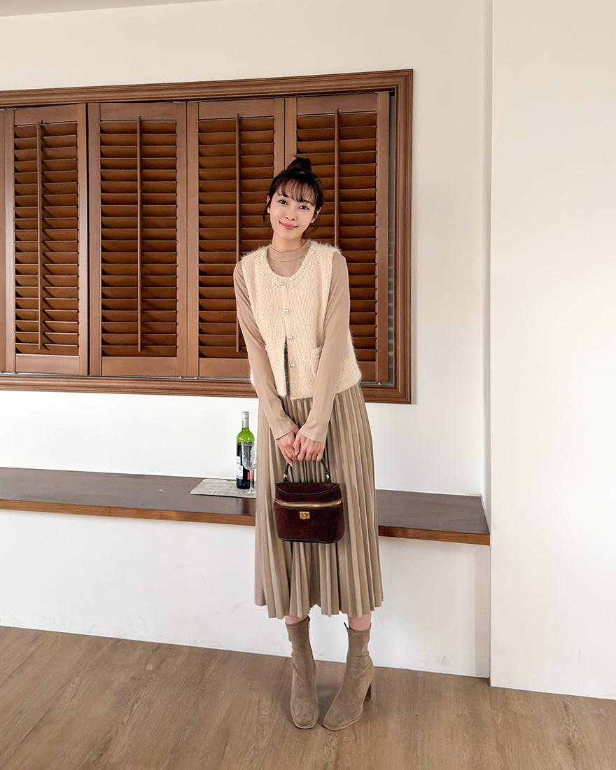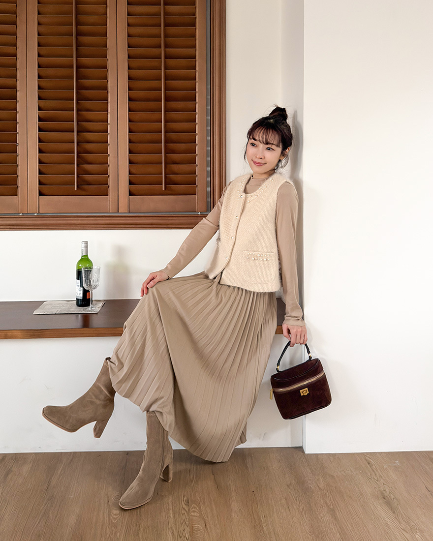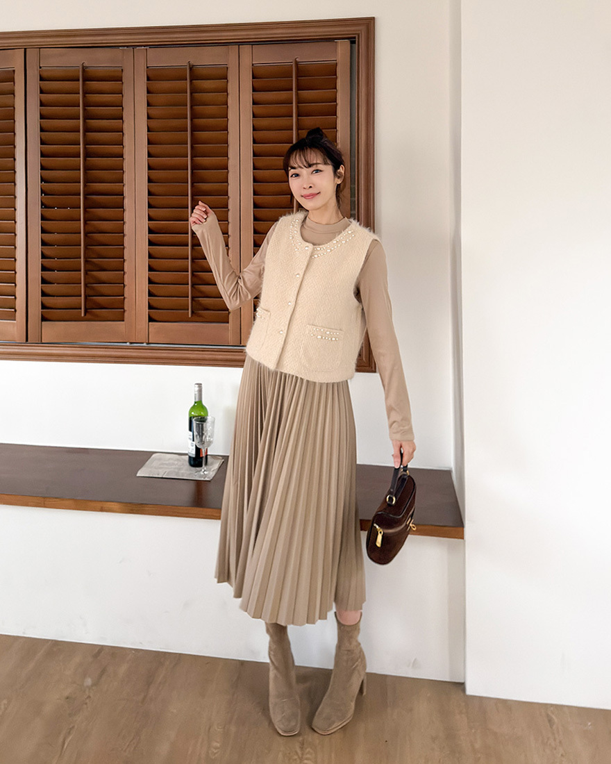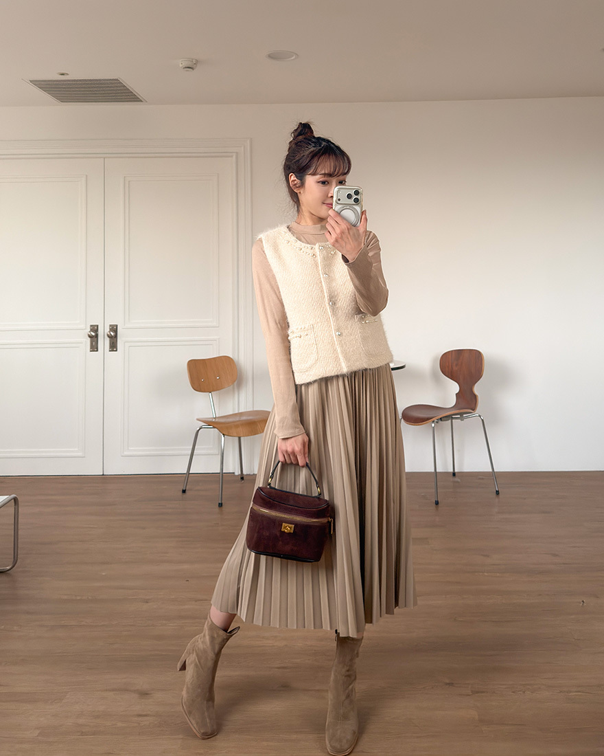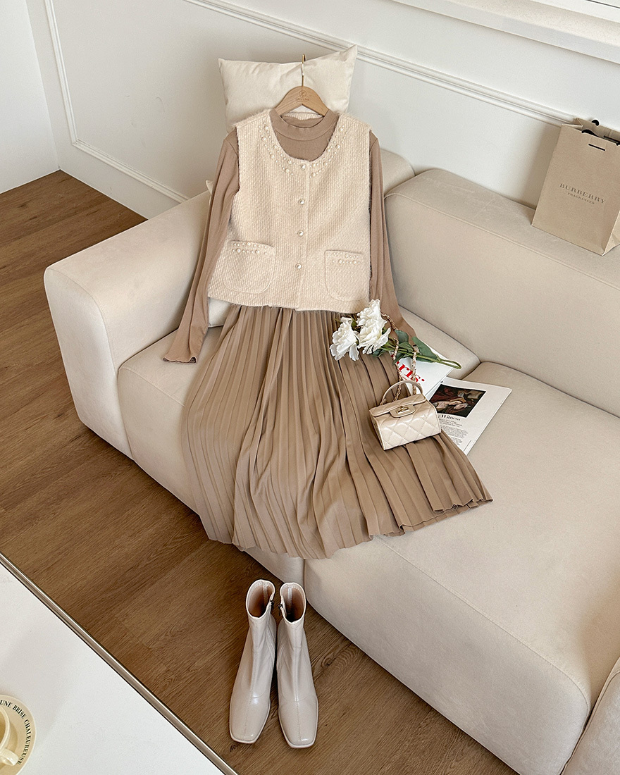 毛料背心點綴了珍珠滾邊
