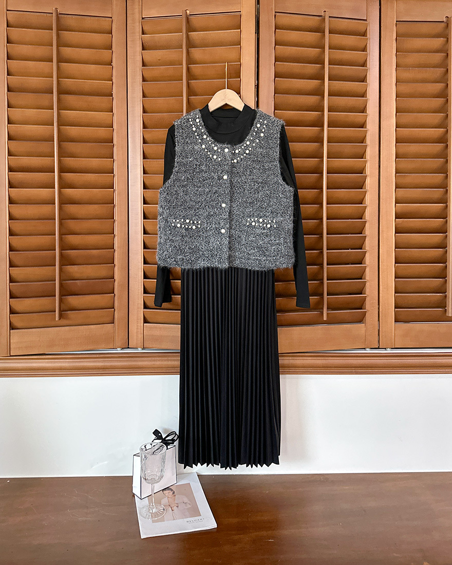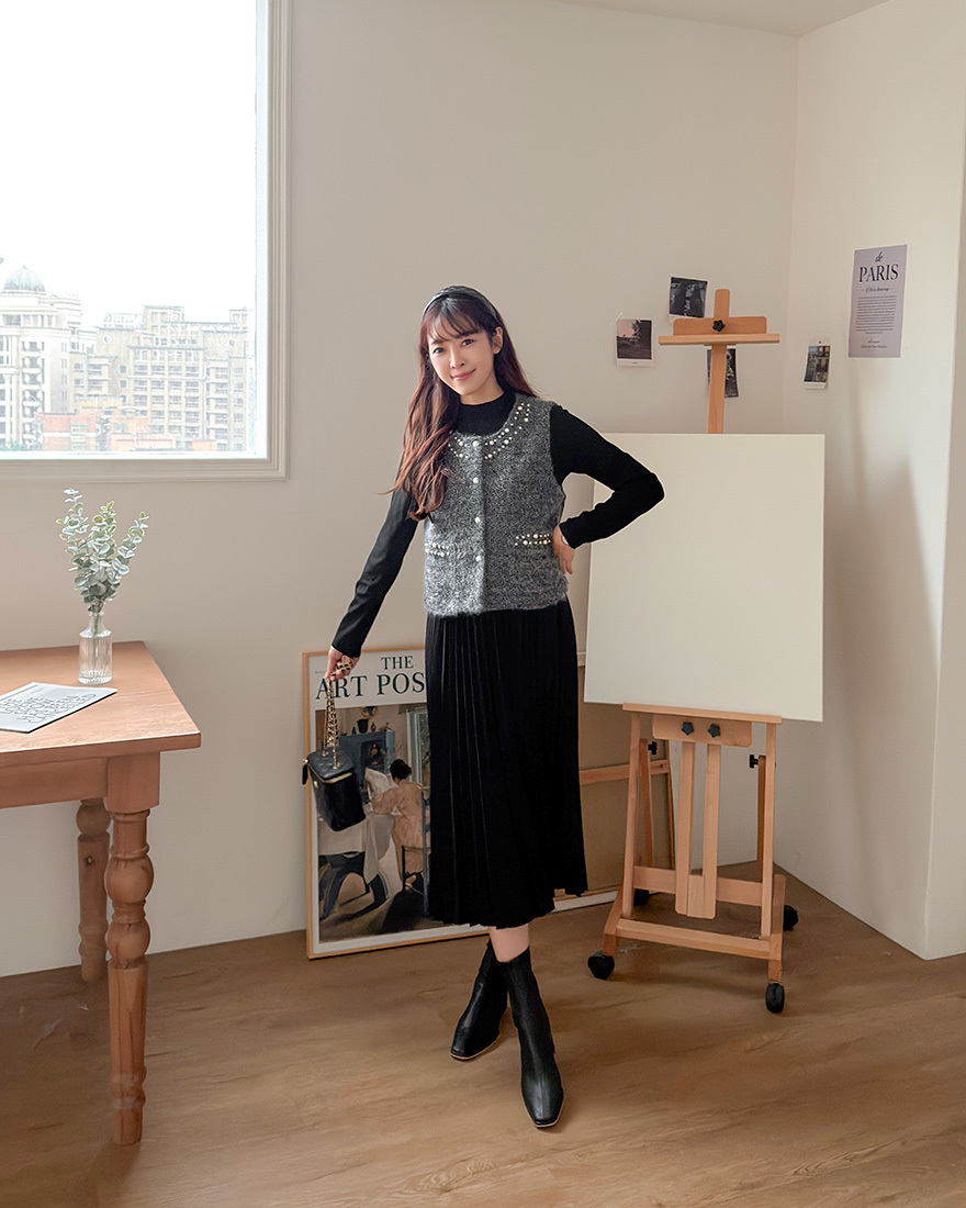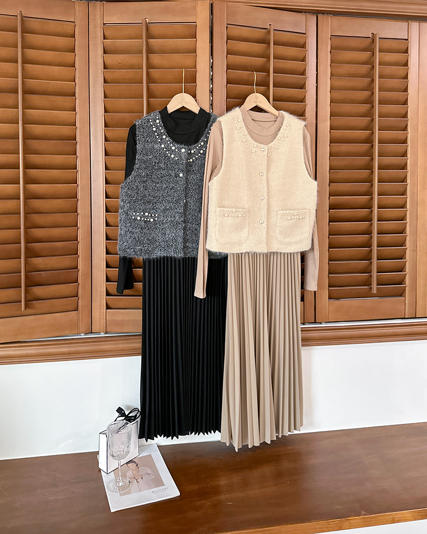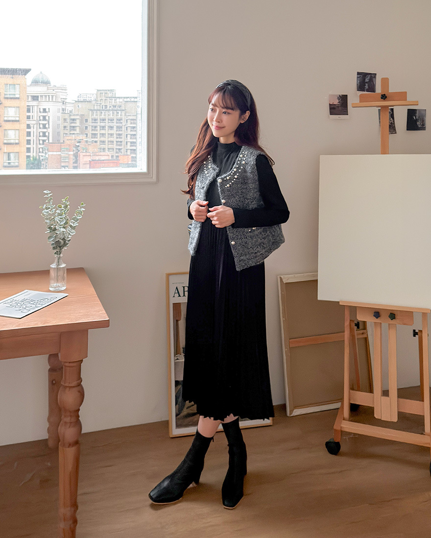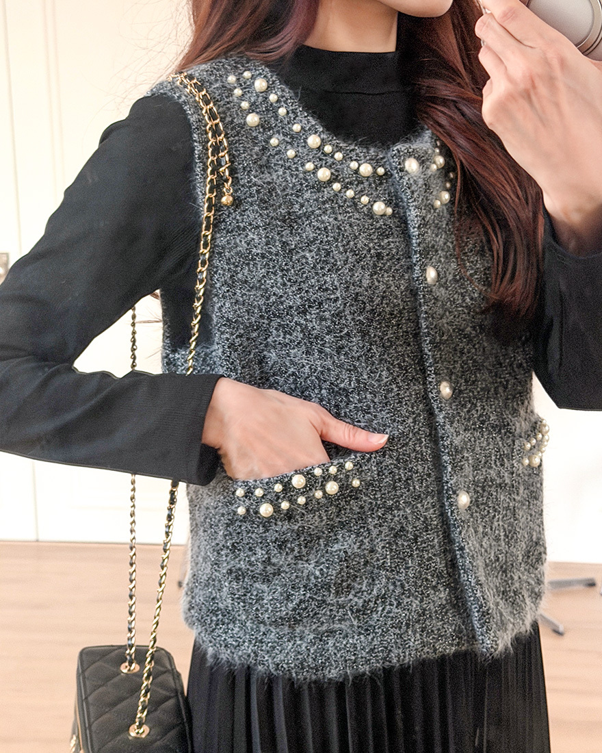 毛料背心點綴了珍珠滾邊