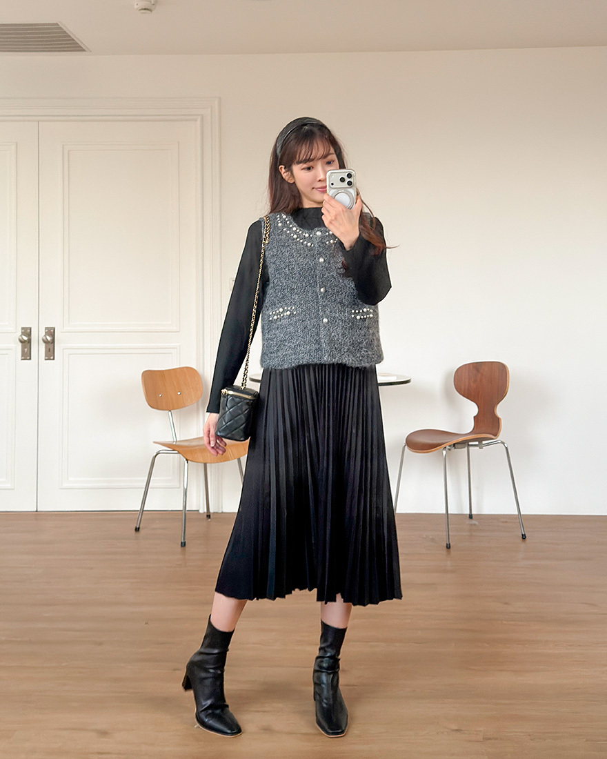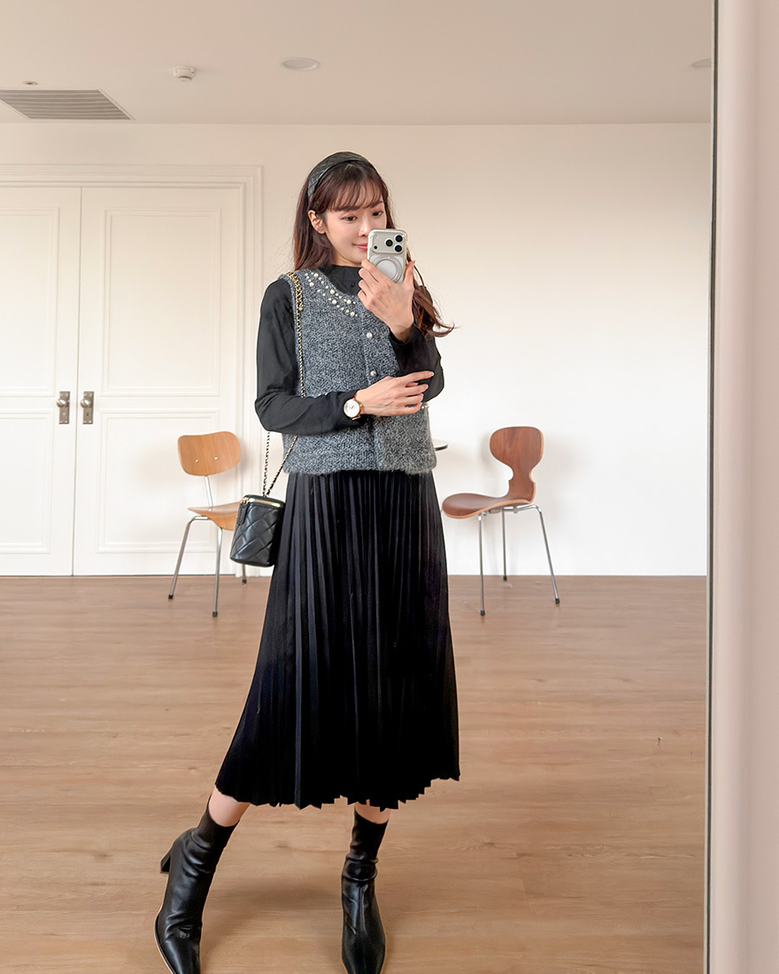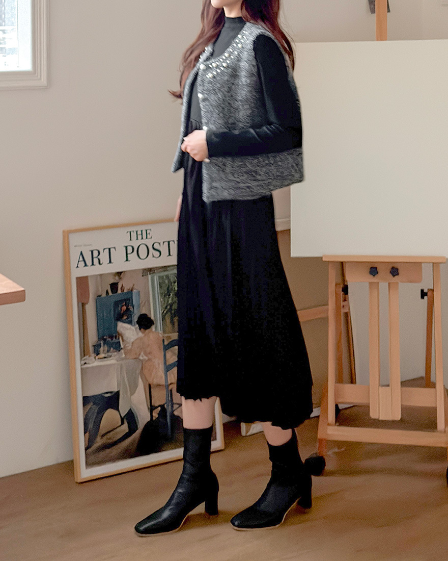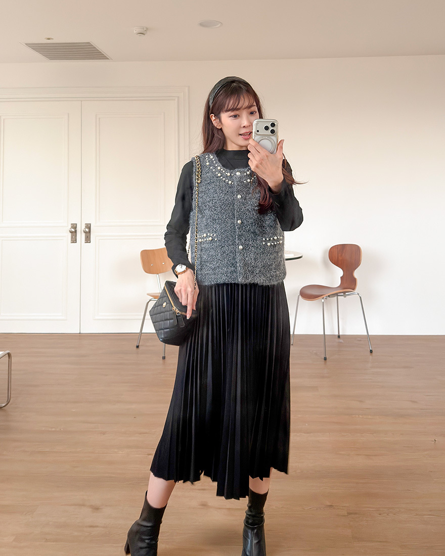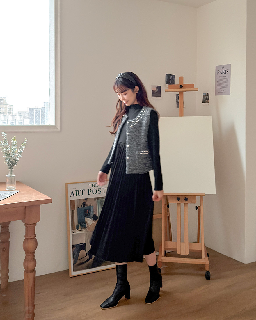 毛料背心點綴了珍珠滾邊
