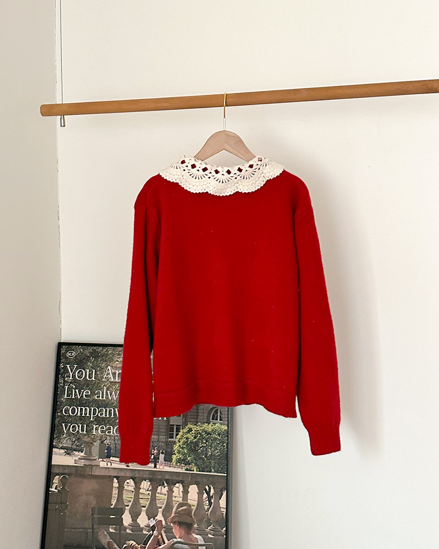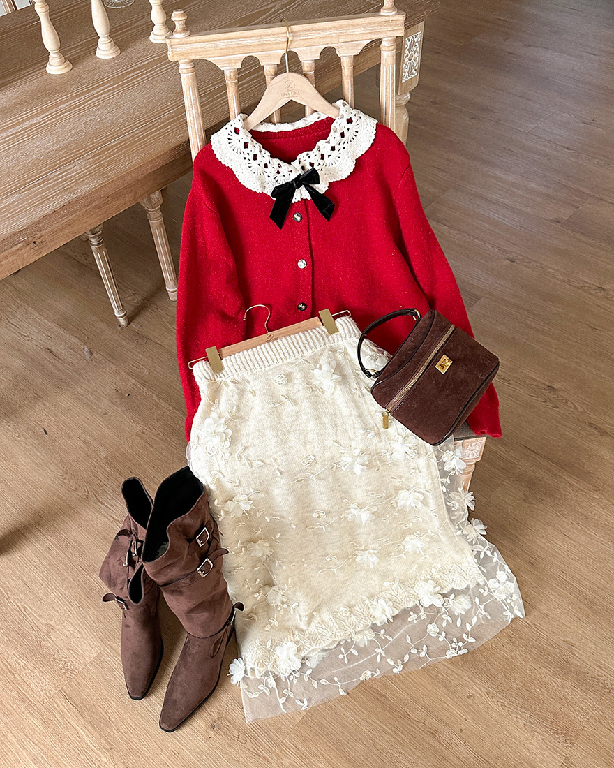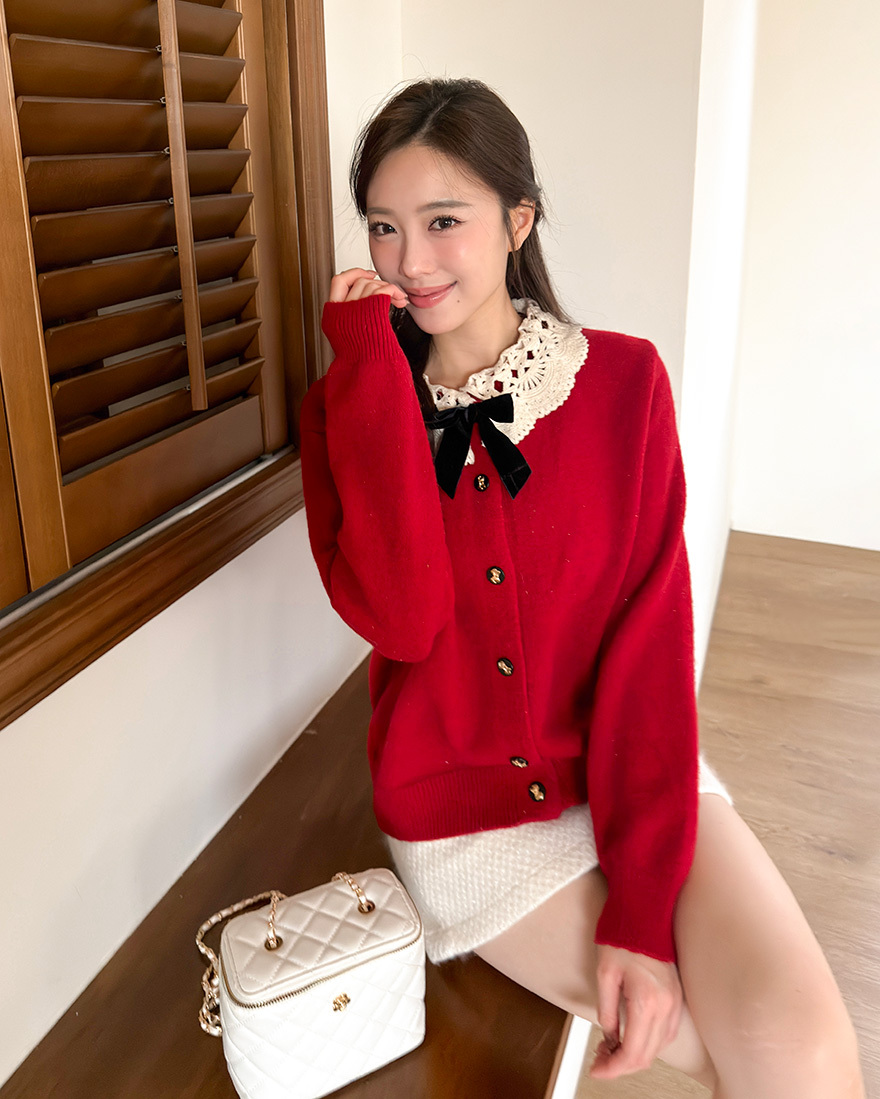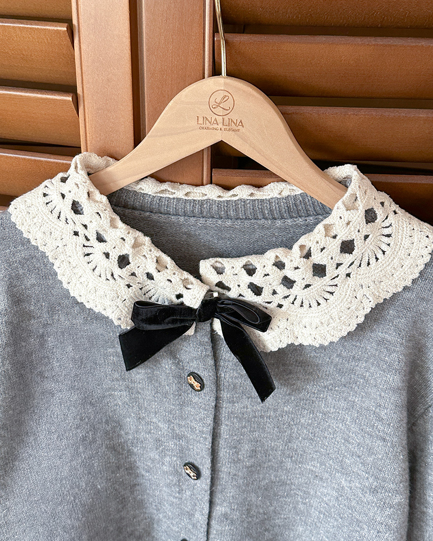 搭配讓人眼睛為之一亮的"縷空緹花翻領"