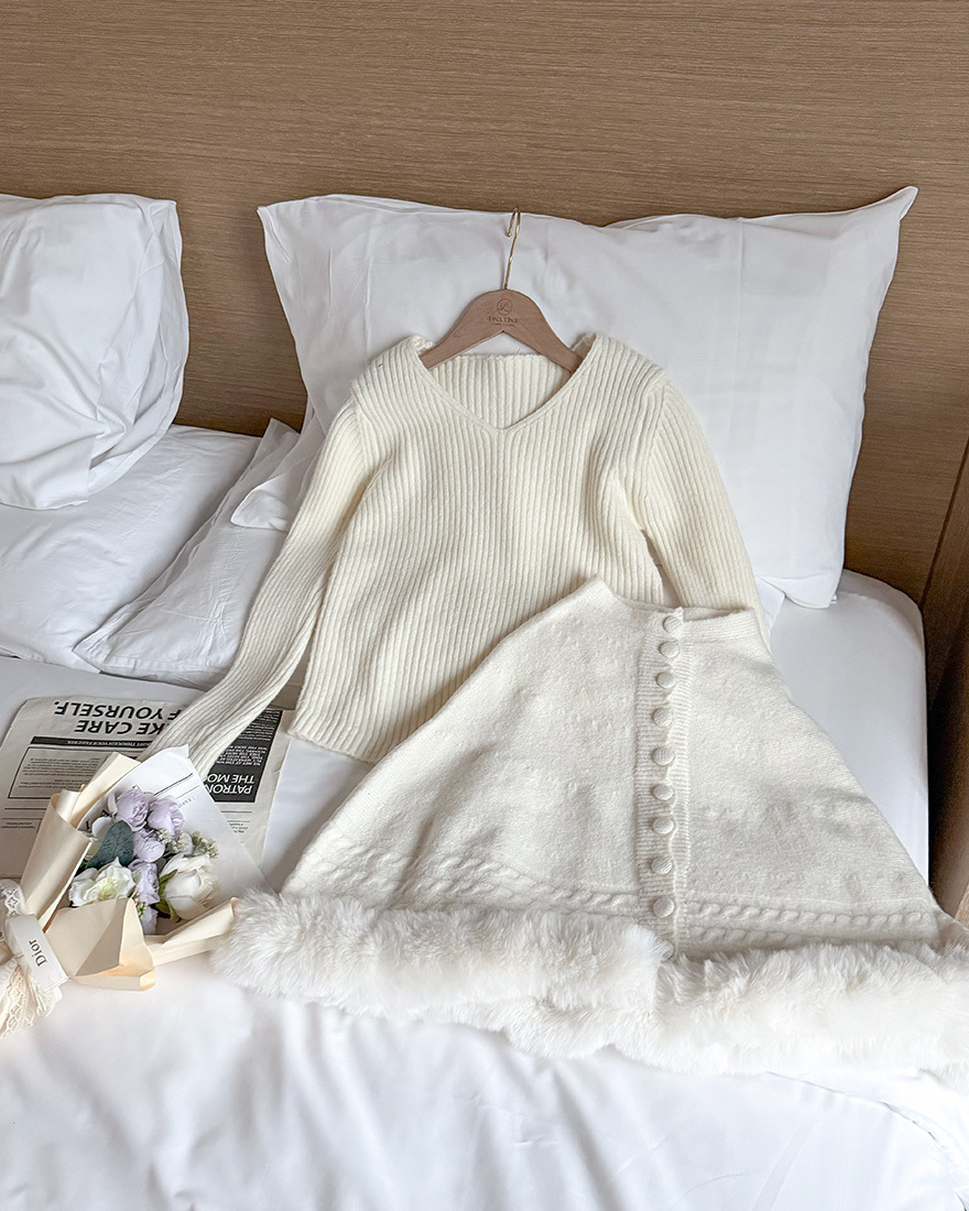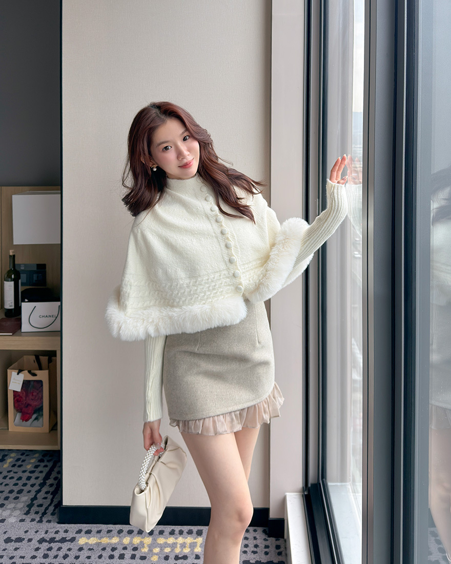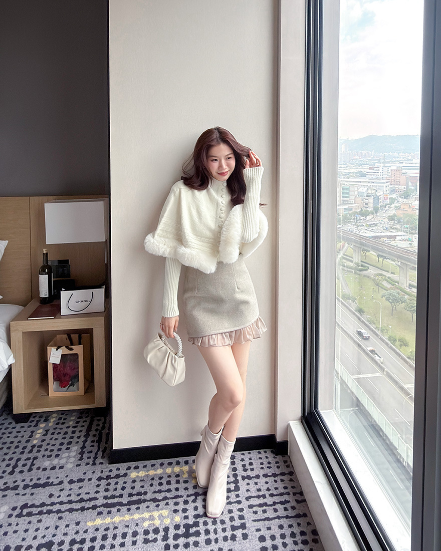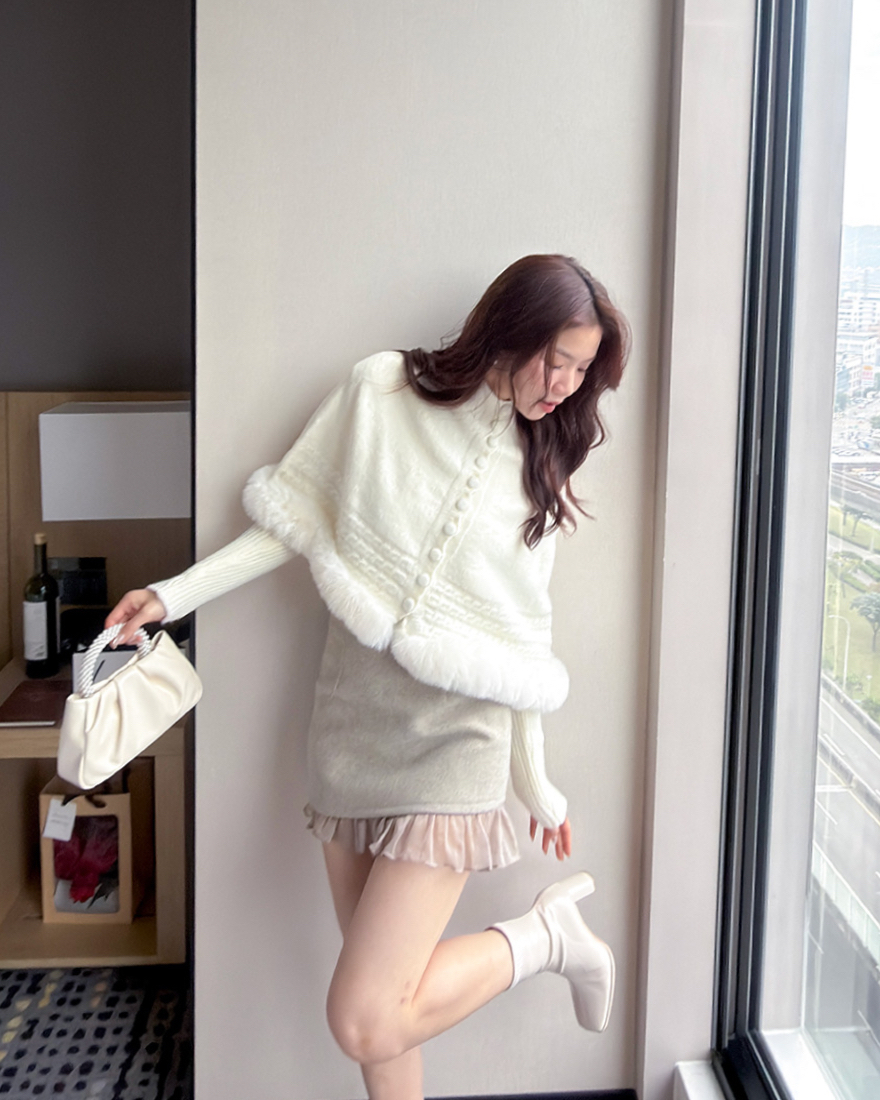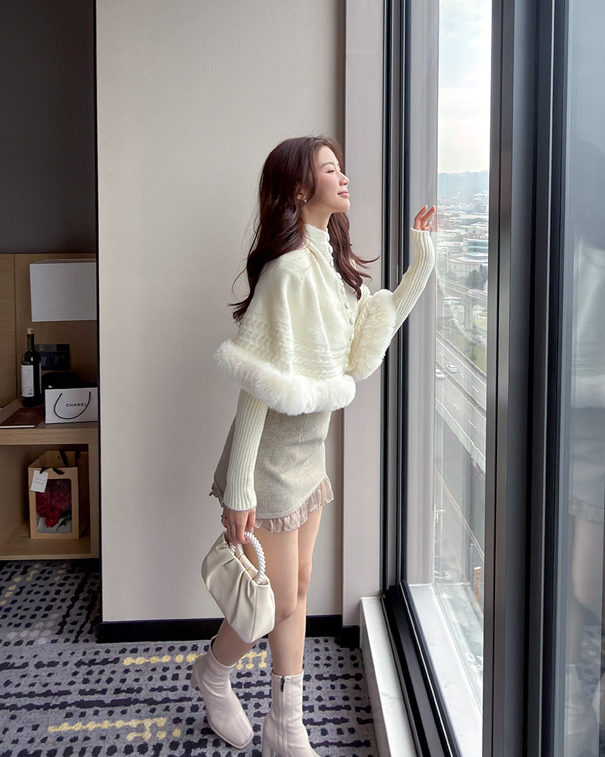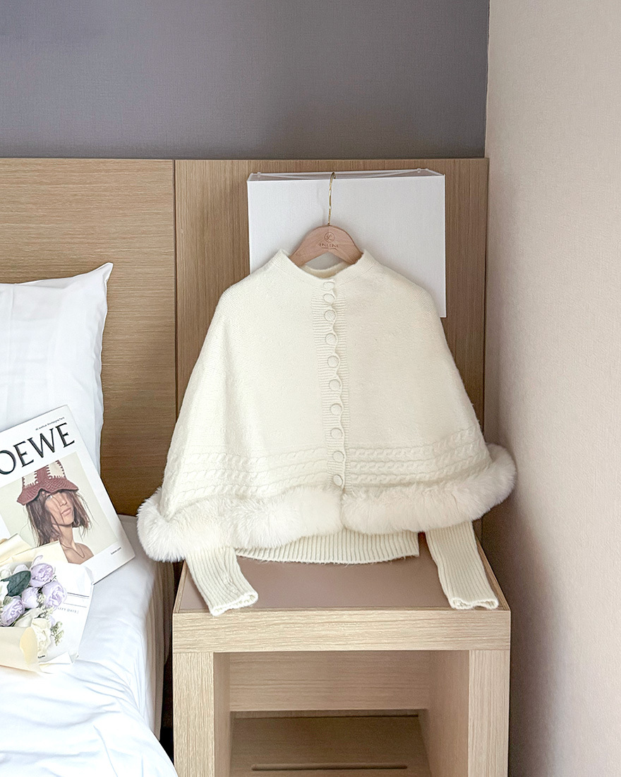 在下擺點綴了⋄柔軟的絨毛滾邊跟⋄麻花織紋
