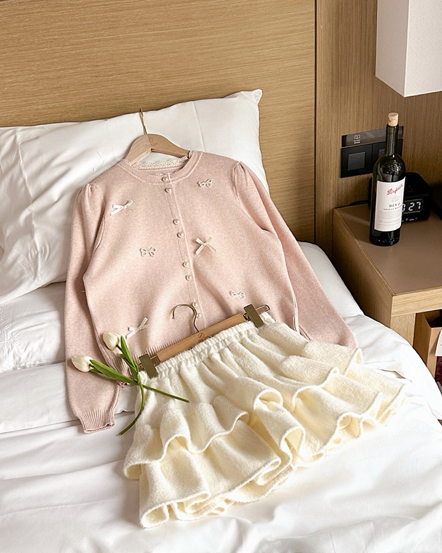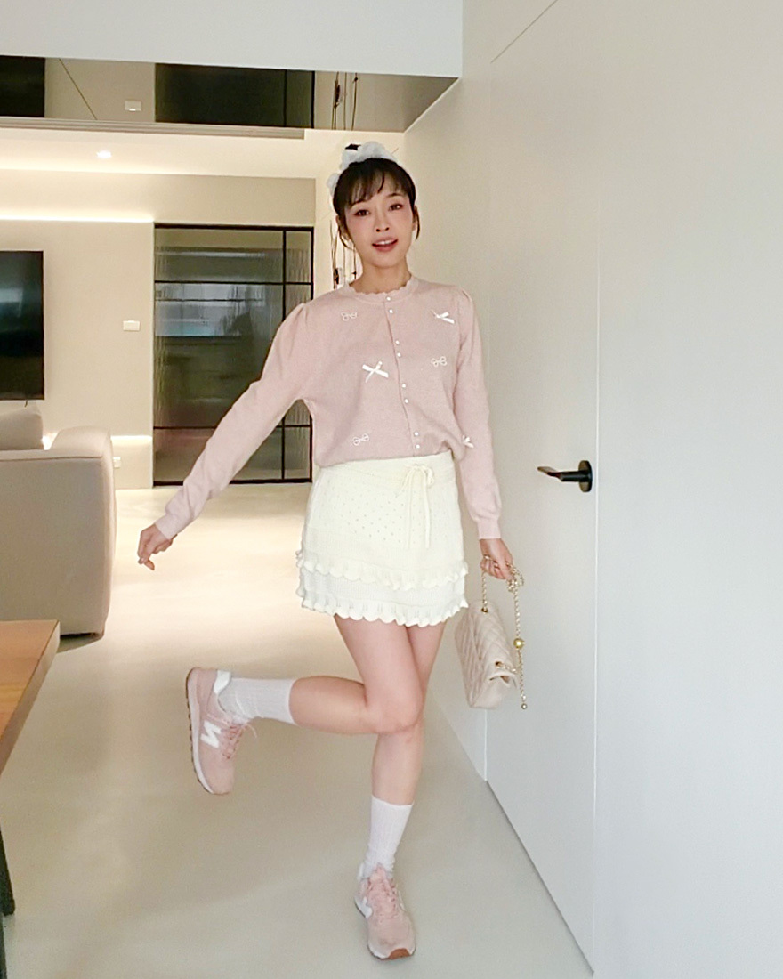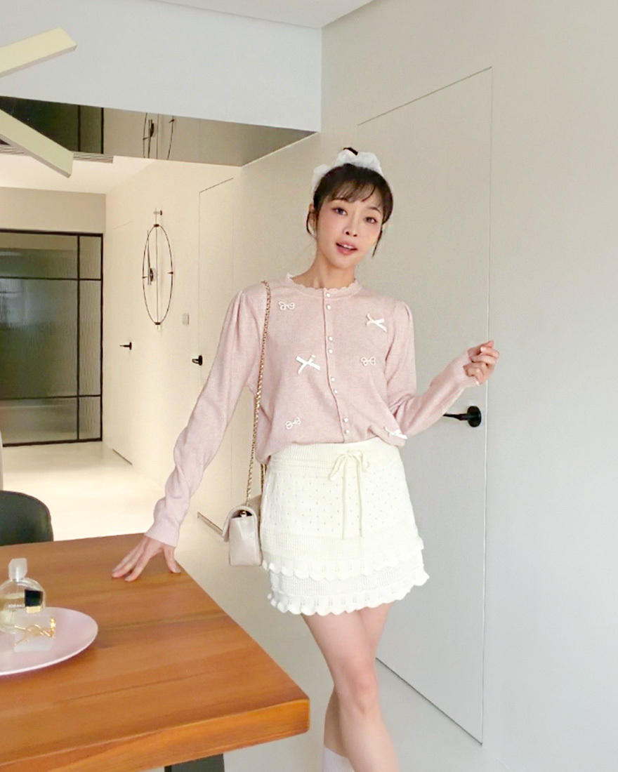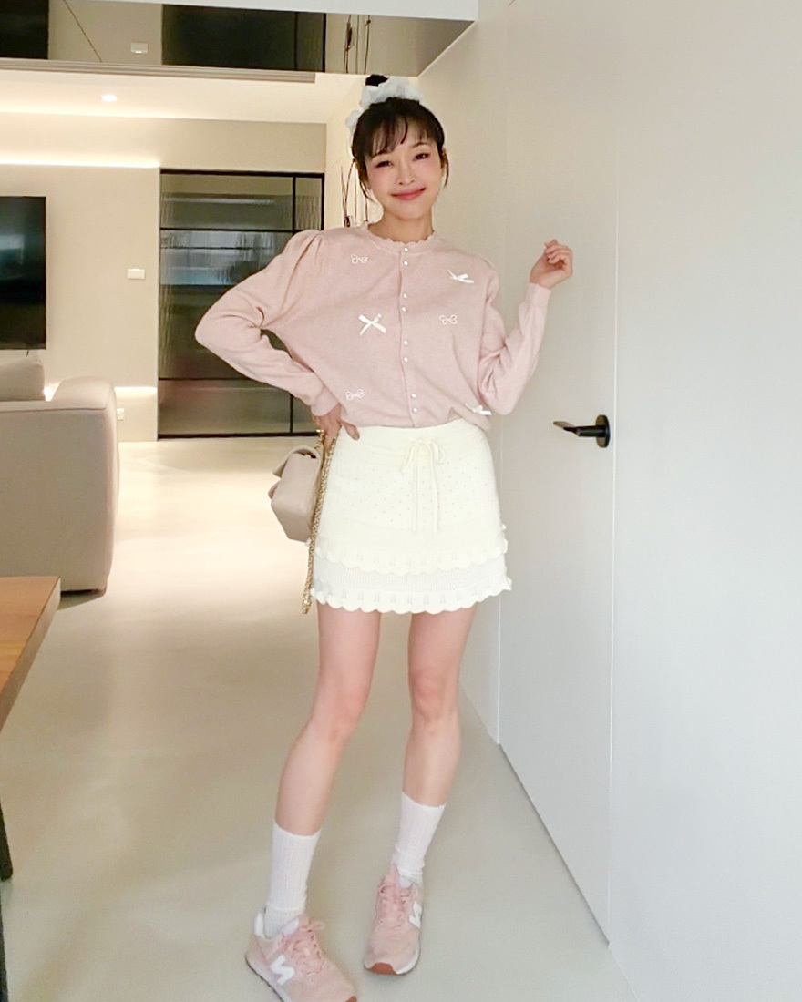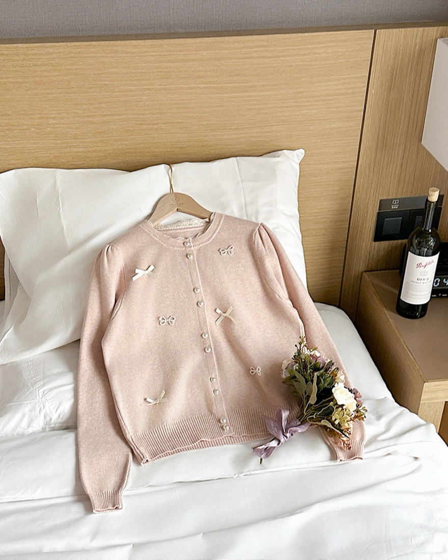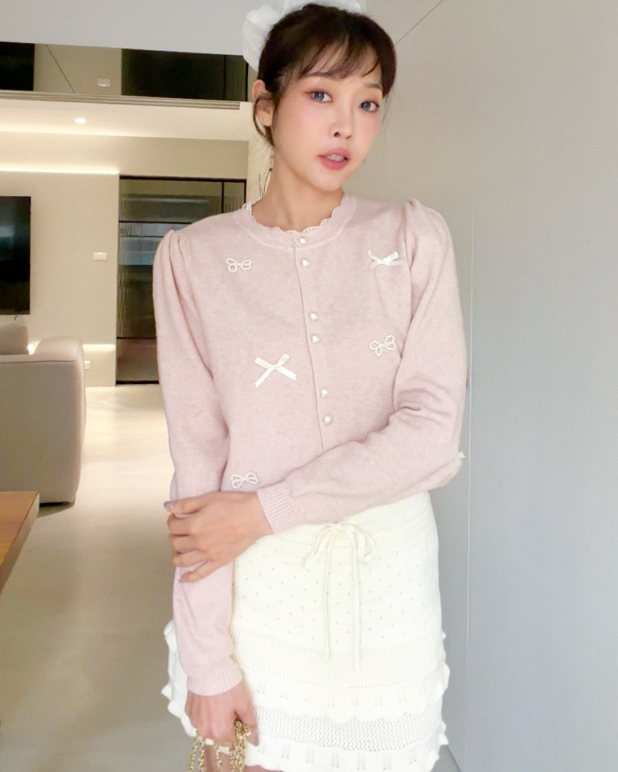 LINA LINA心動甜度珍珠緞帶蝴蝶結上衣外套-甜美粉