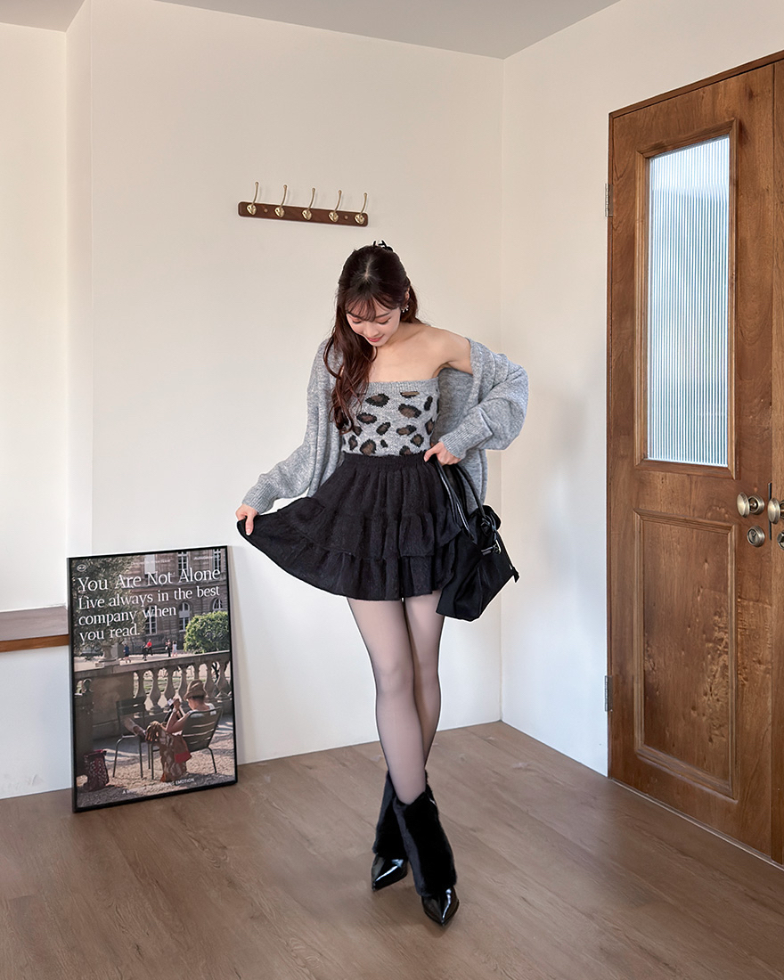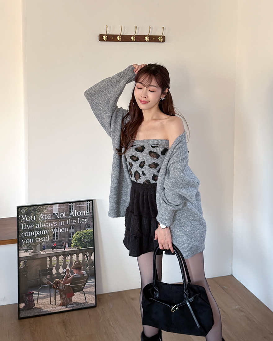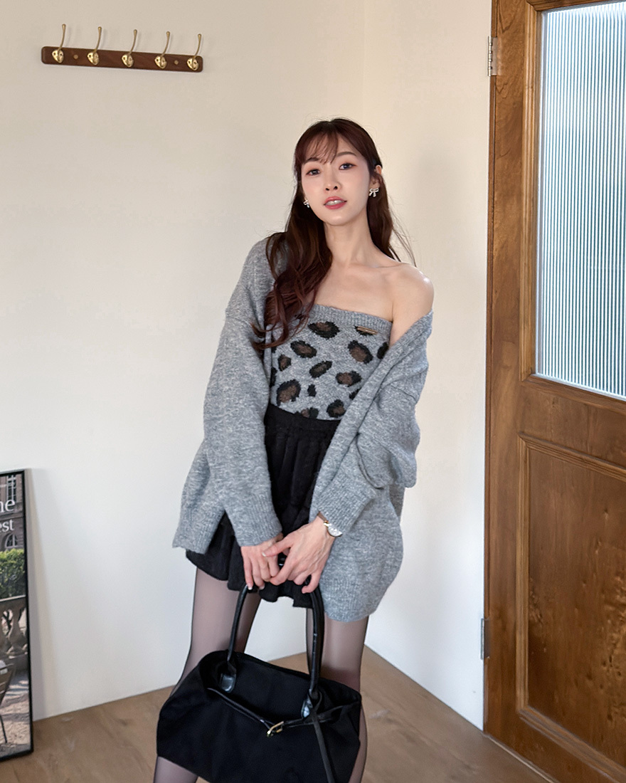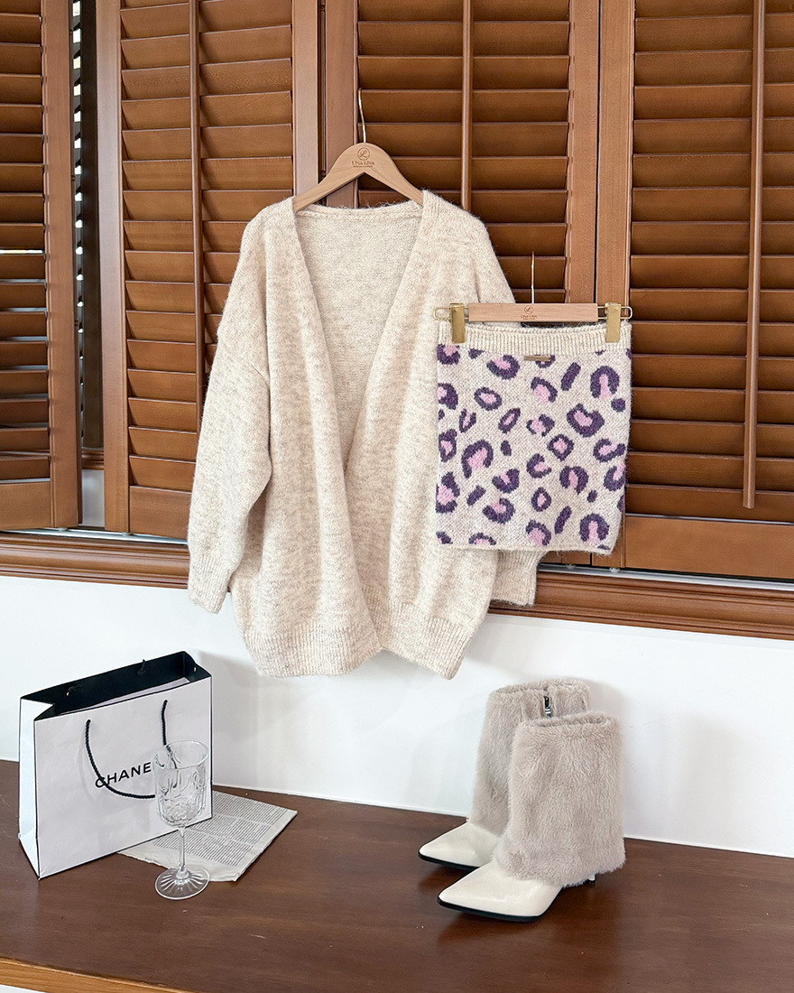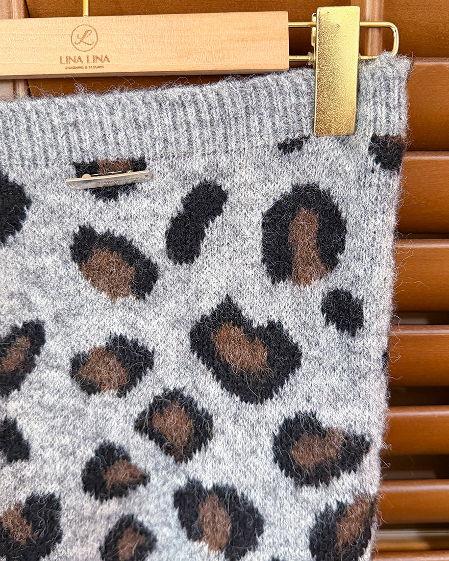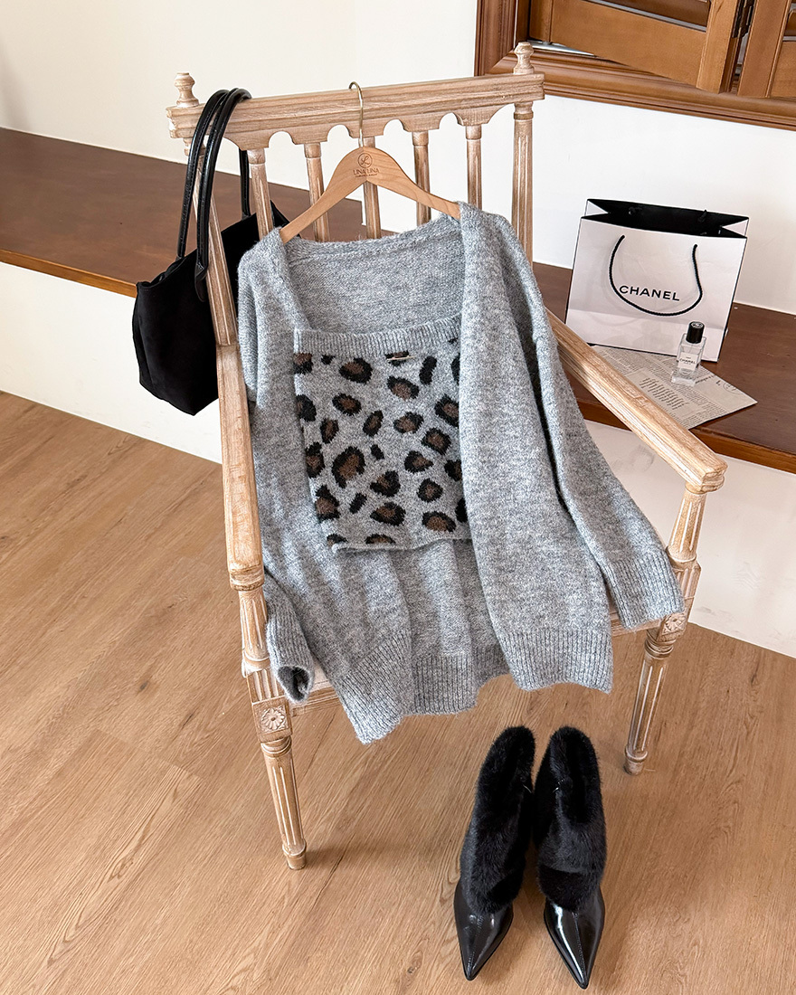LINA LINA微醺性格毛料外套豹紋背心兩件組-質感花灰