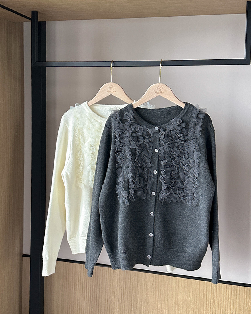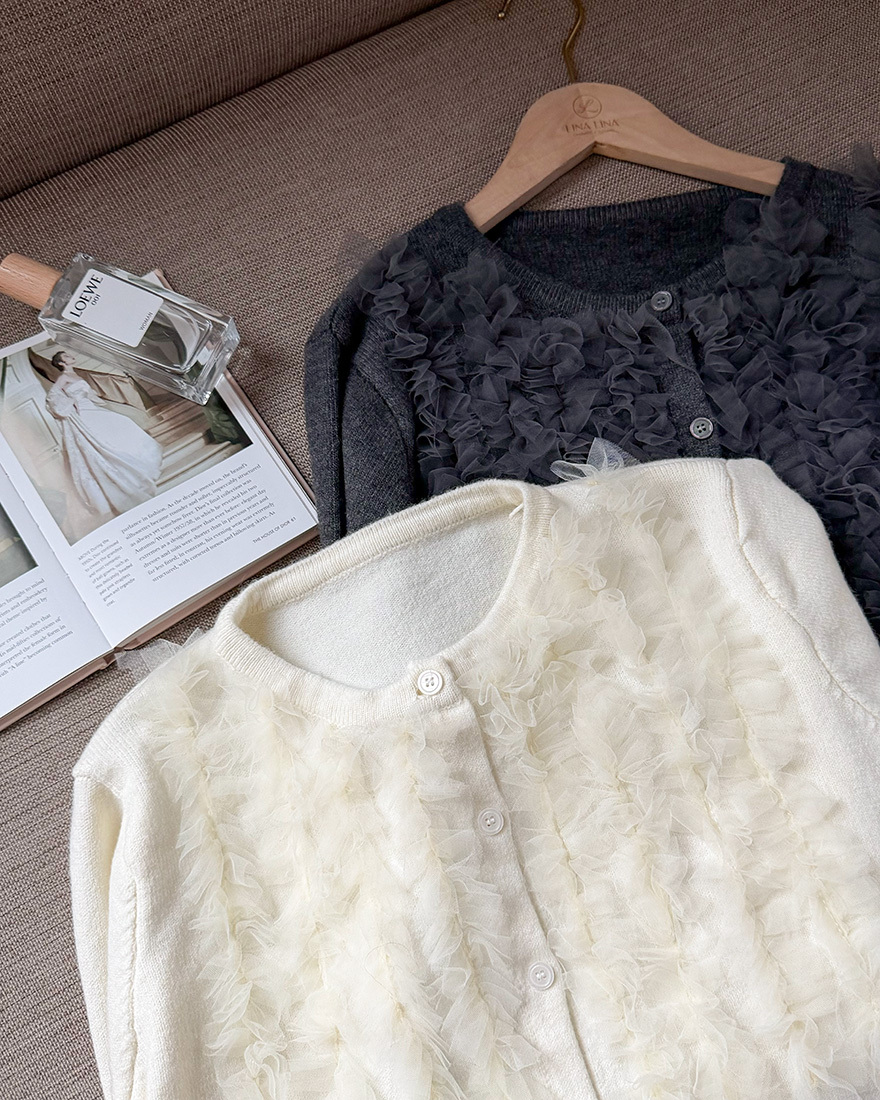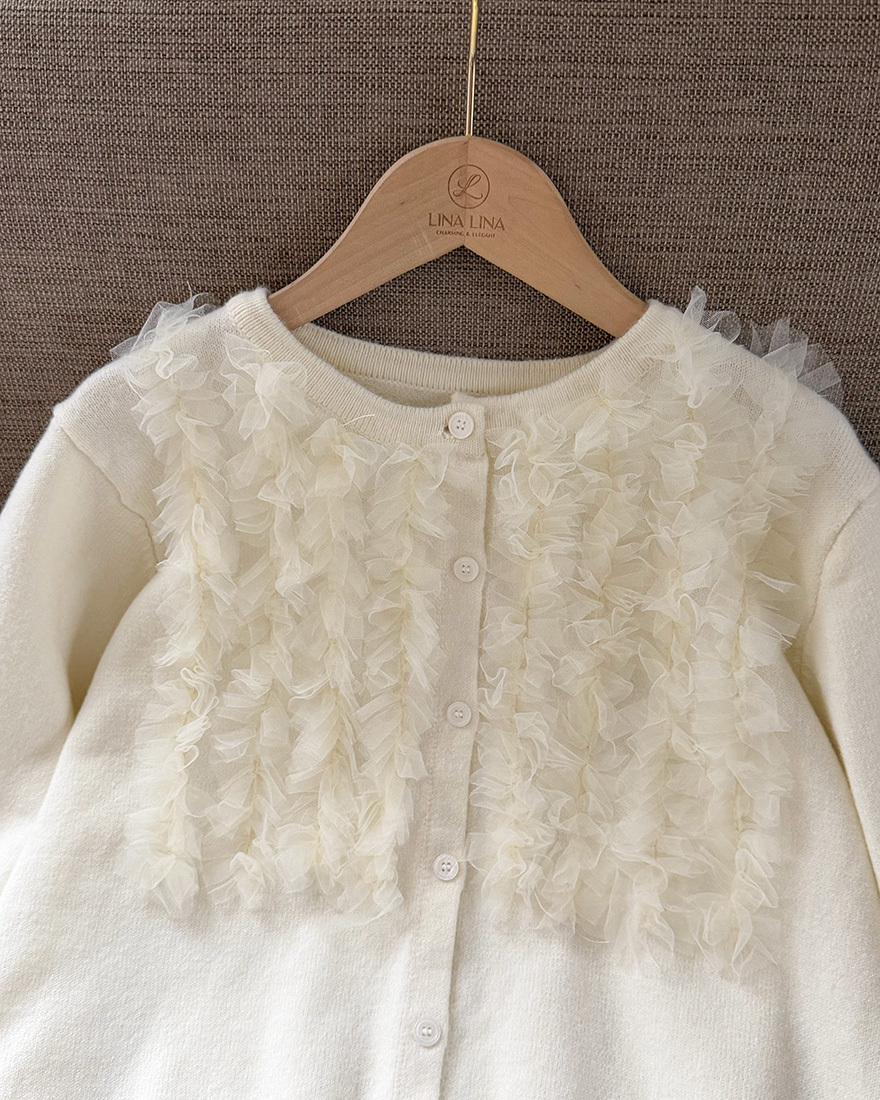 LINA LINA著迷仙氣壓摺網紗造型排釦上衣外套-優美杏