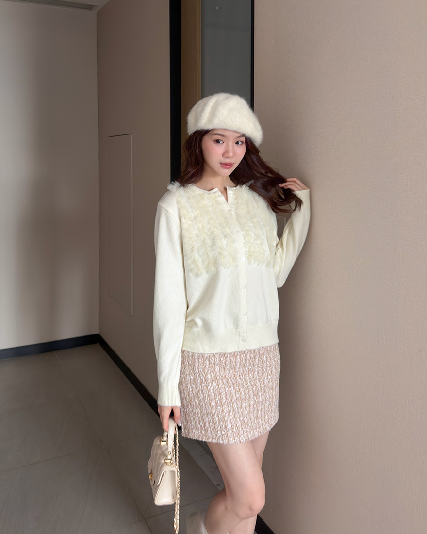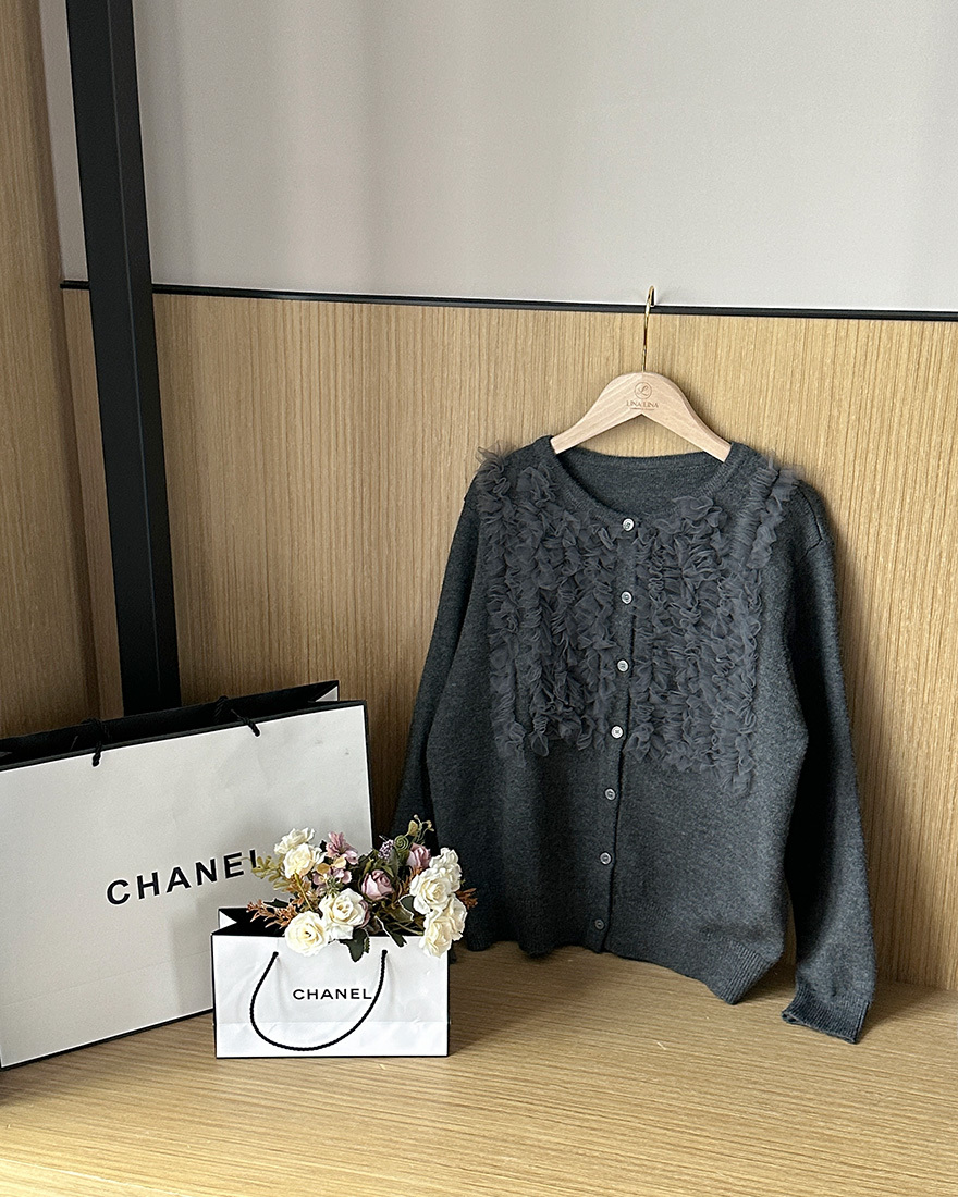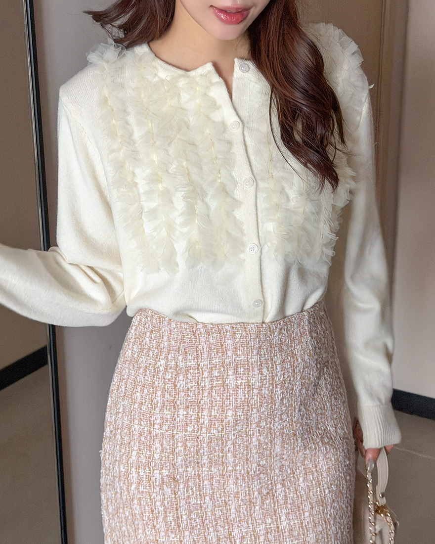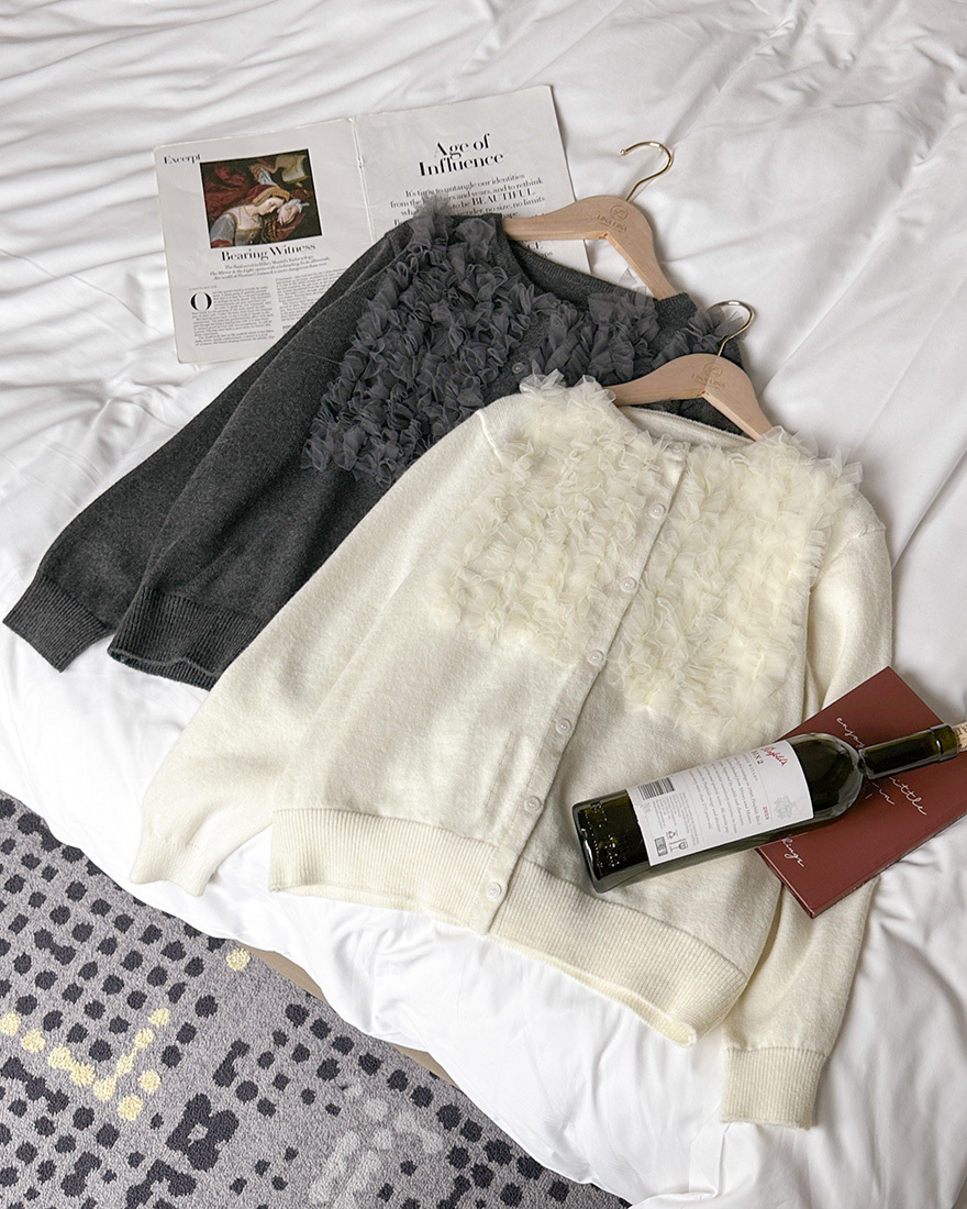 LINA LINA著迷仙氣壓摺網紗造型排釦上衣外套-優美杏