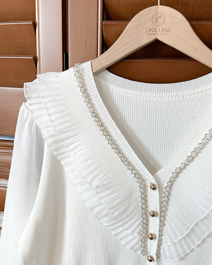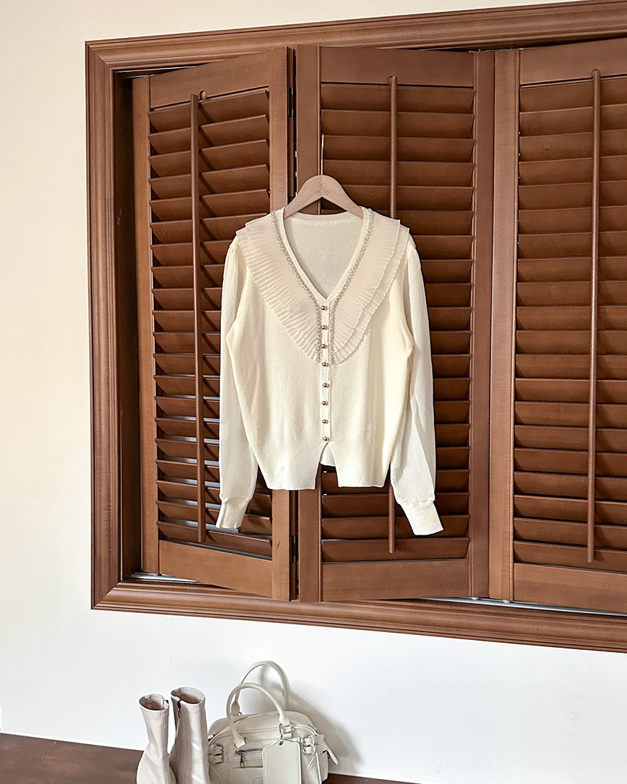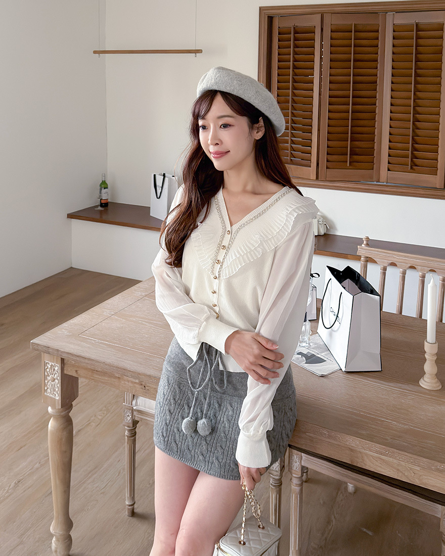 領口點綴層次的百褶網紗