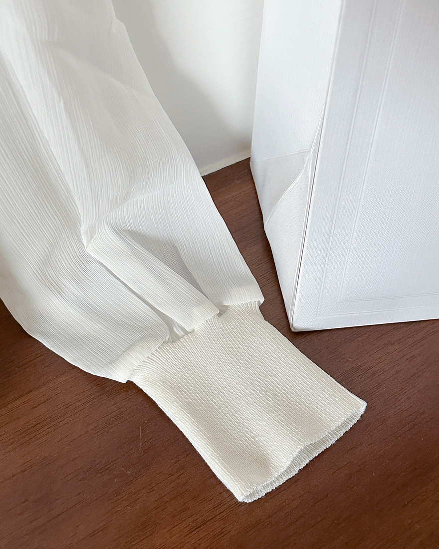 拼接了微透肌的髮絲紋雪紡手袖