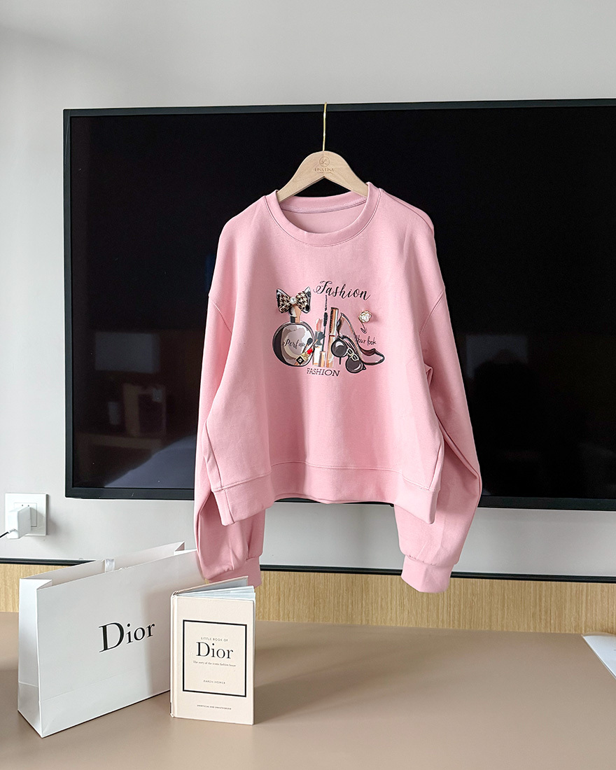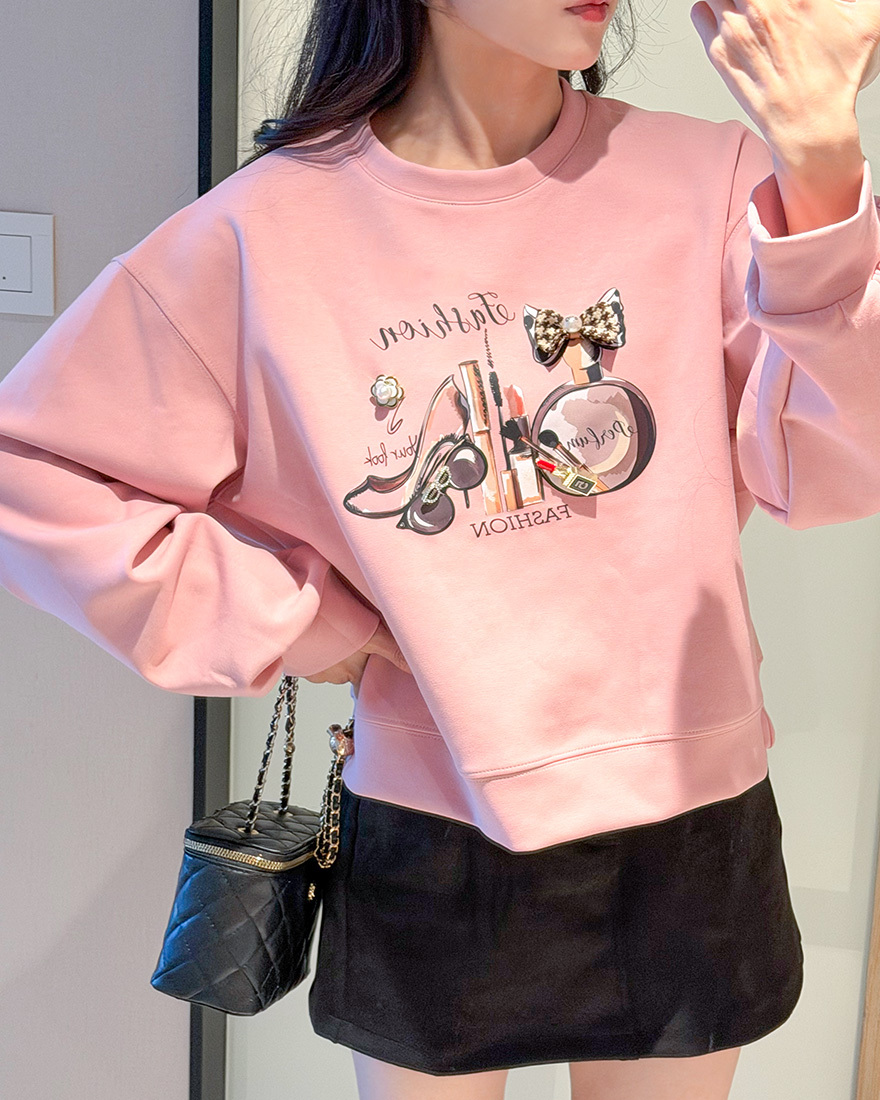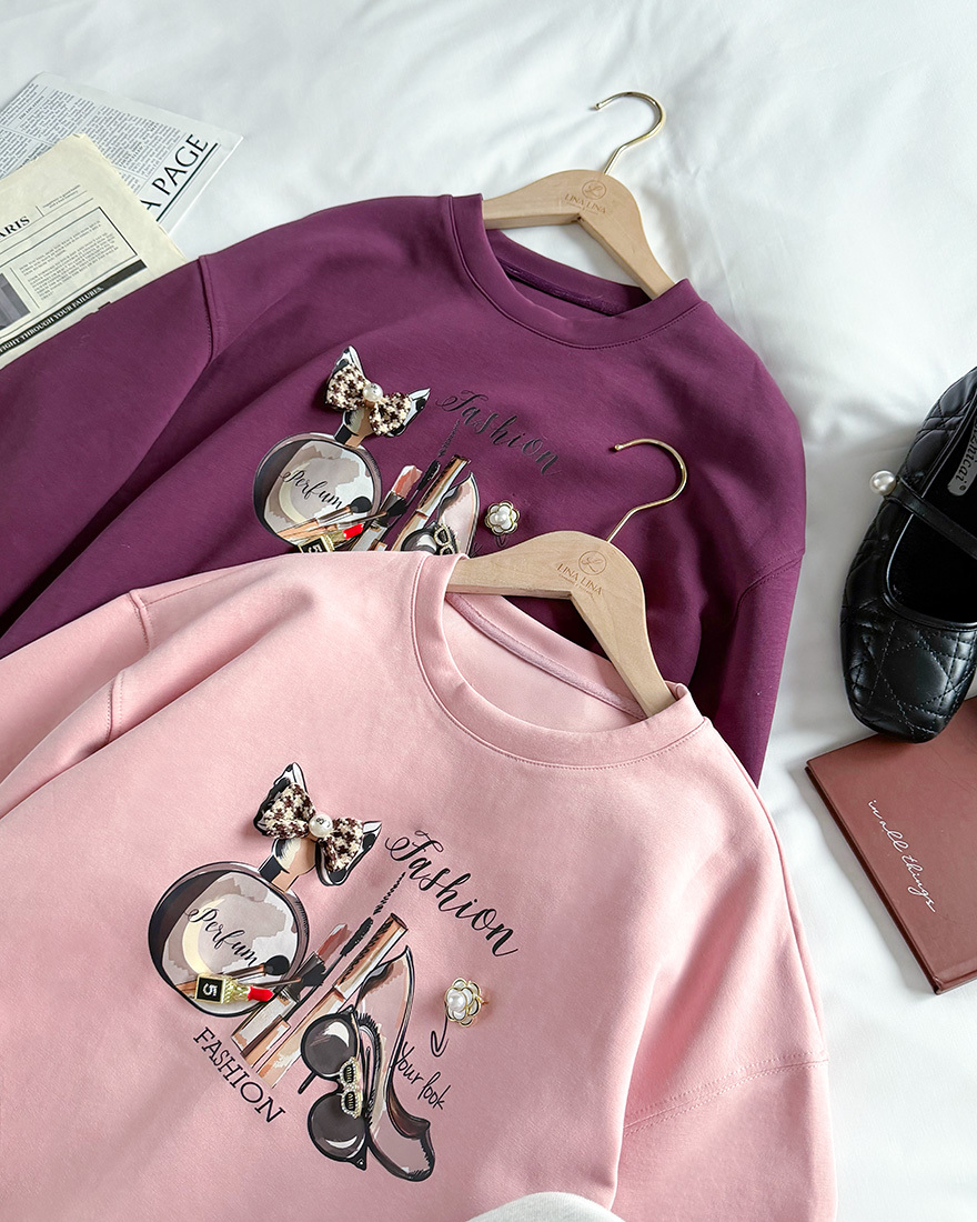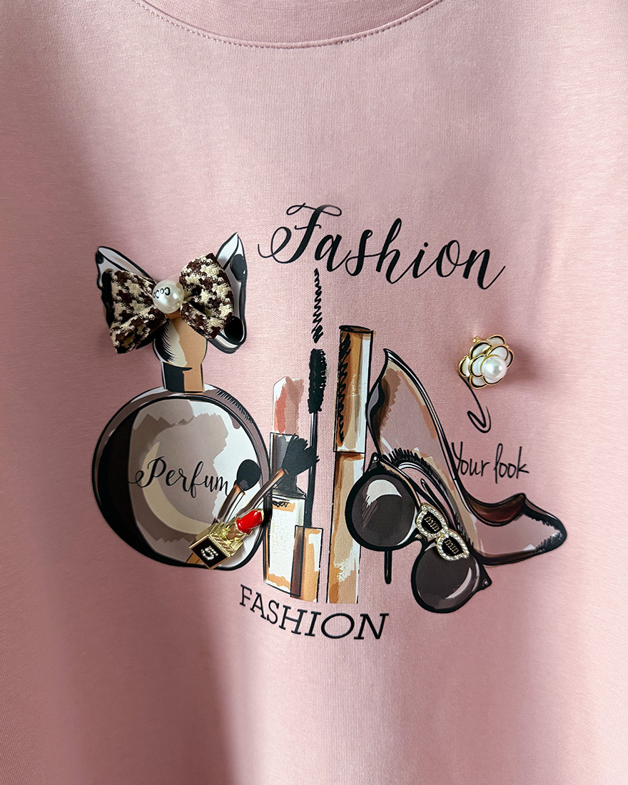 LINA LINA貴氣小香風珍珠蝴蝶結花朵香水棉T-玫瑰粉