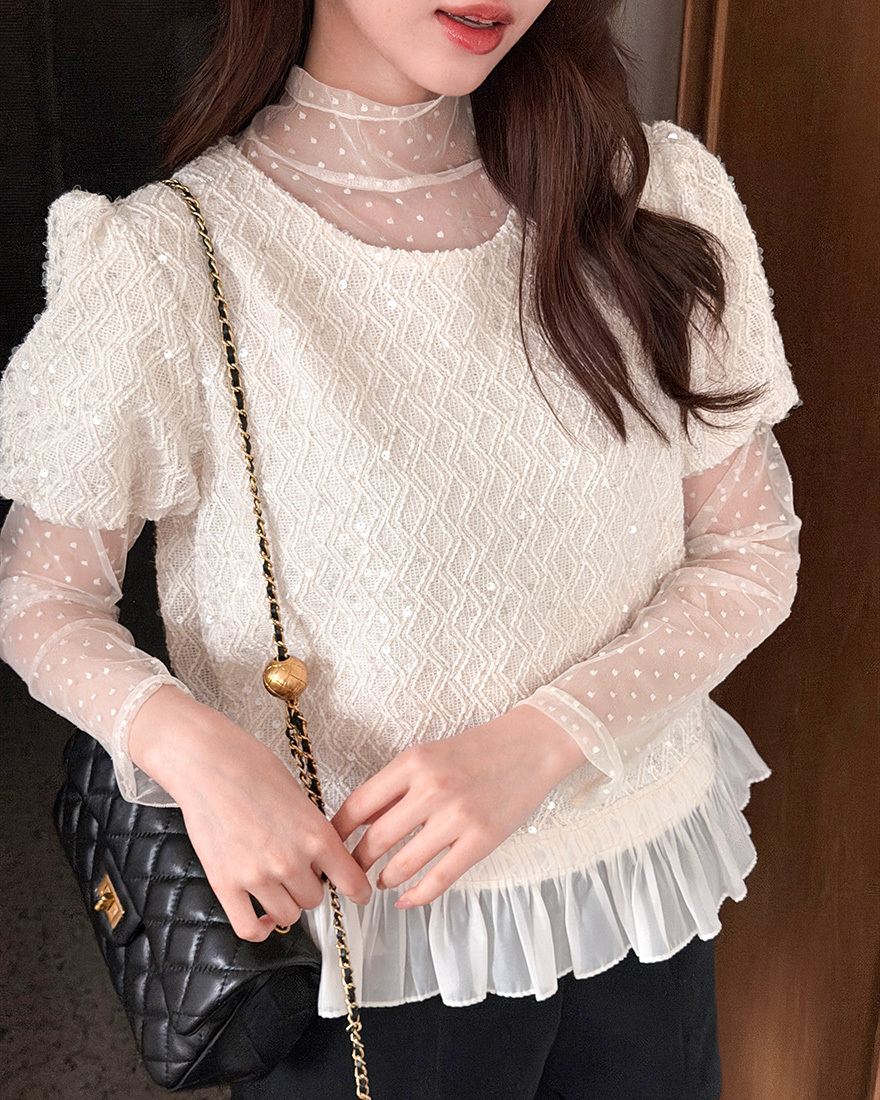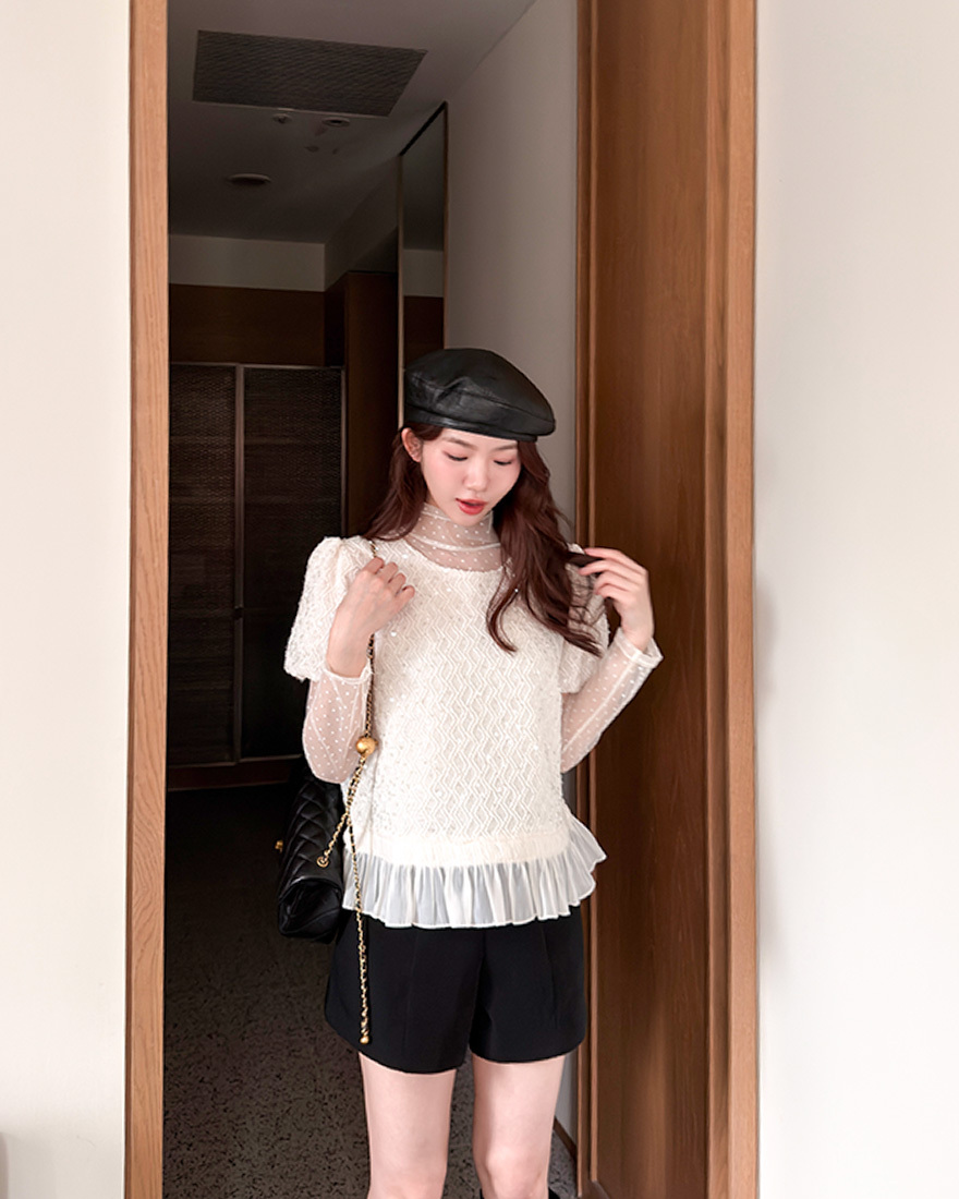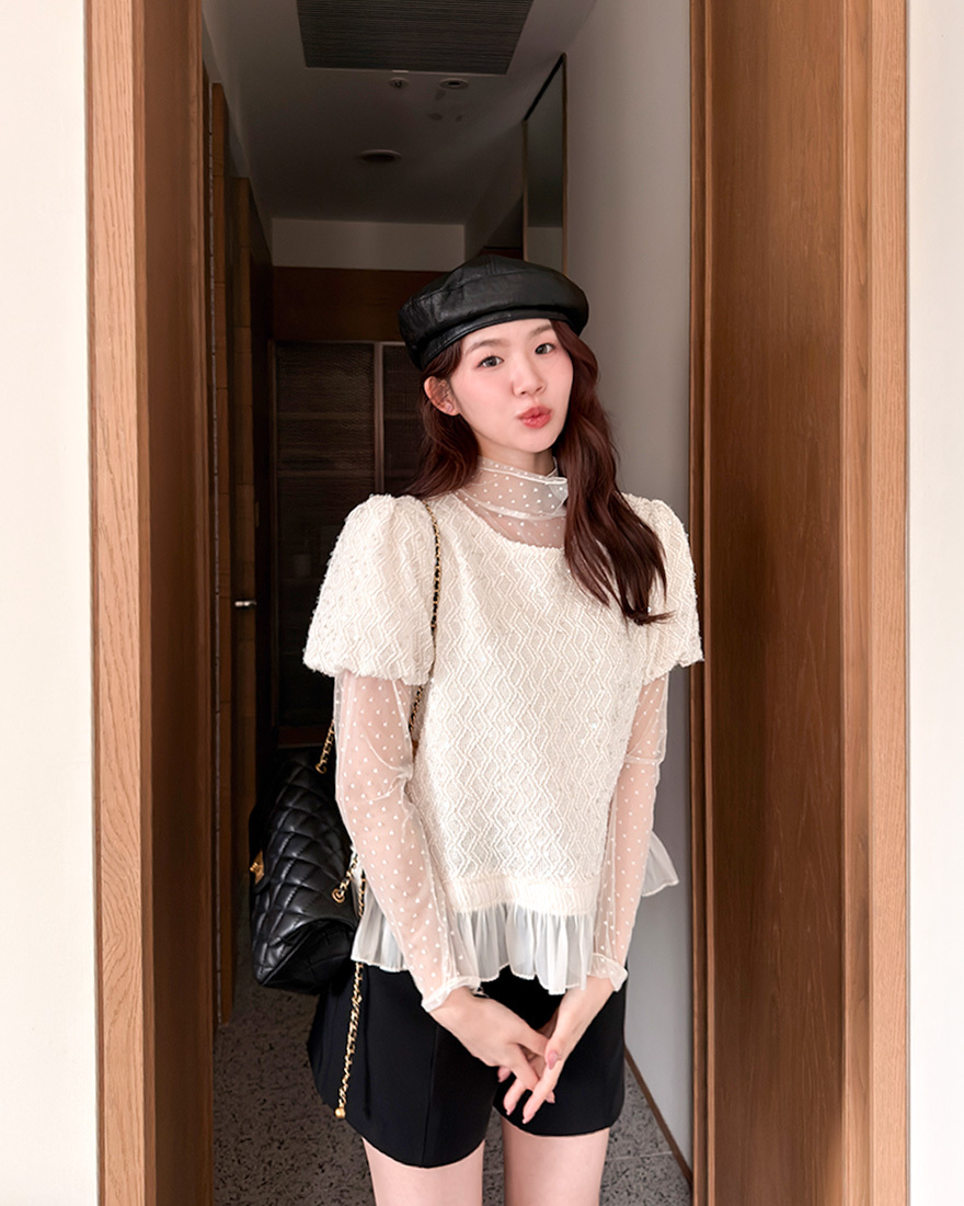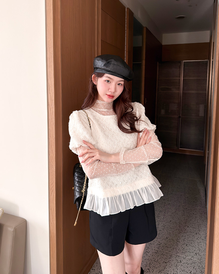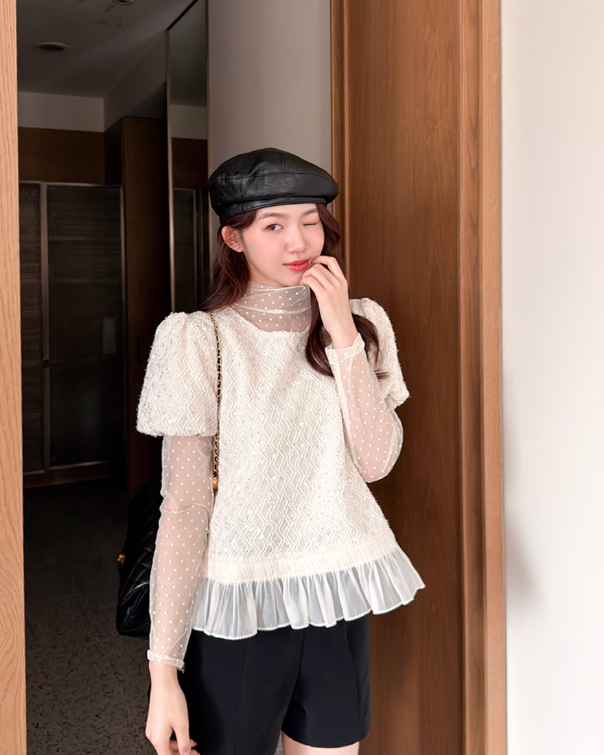 𝓶𝓲𝔁透肌感的彈性網紗上衣