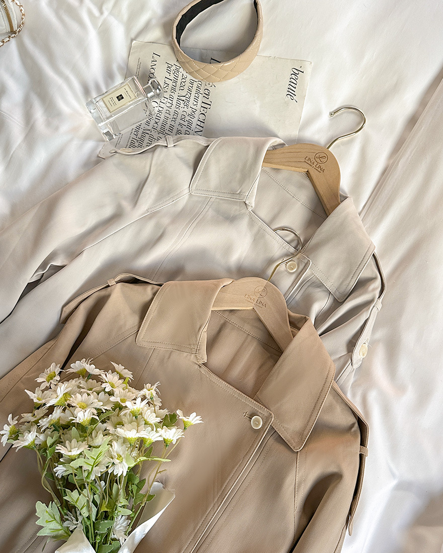 做了翻領跟點綴特別的⦁焦糖色石紋釦⦁