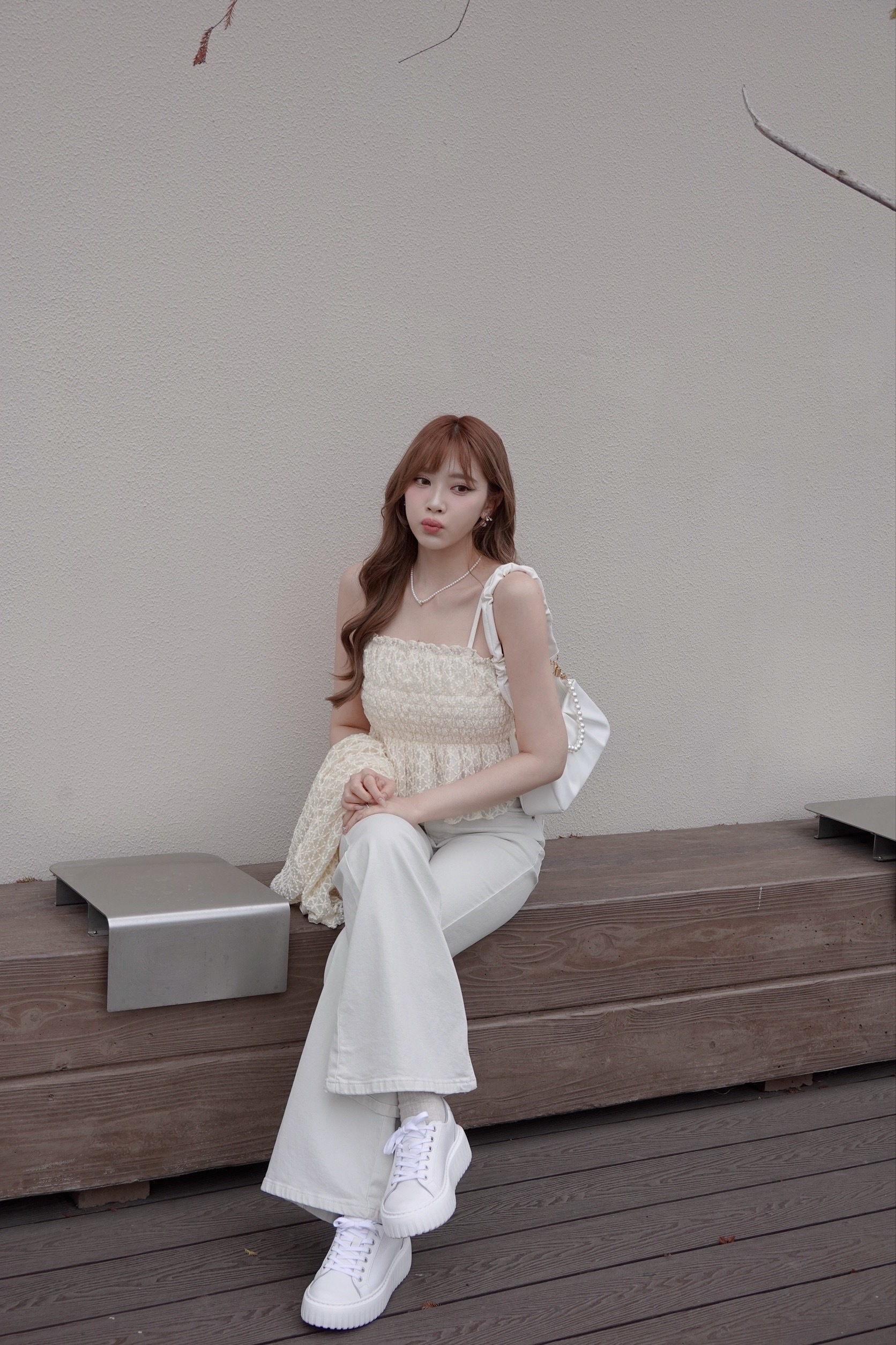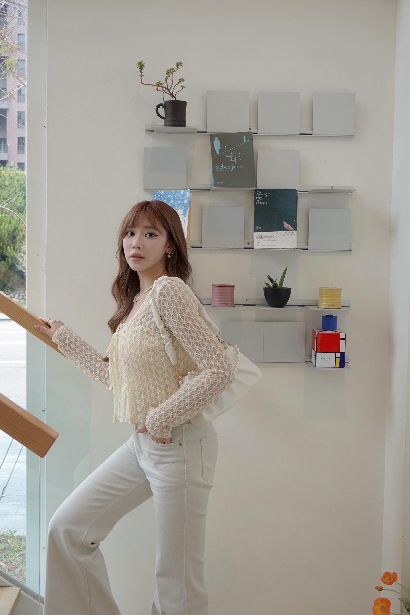 中高腰+微喇叭的褲型