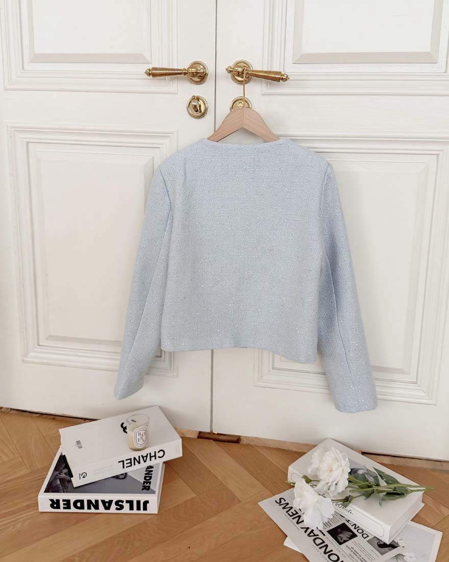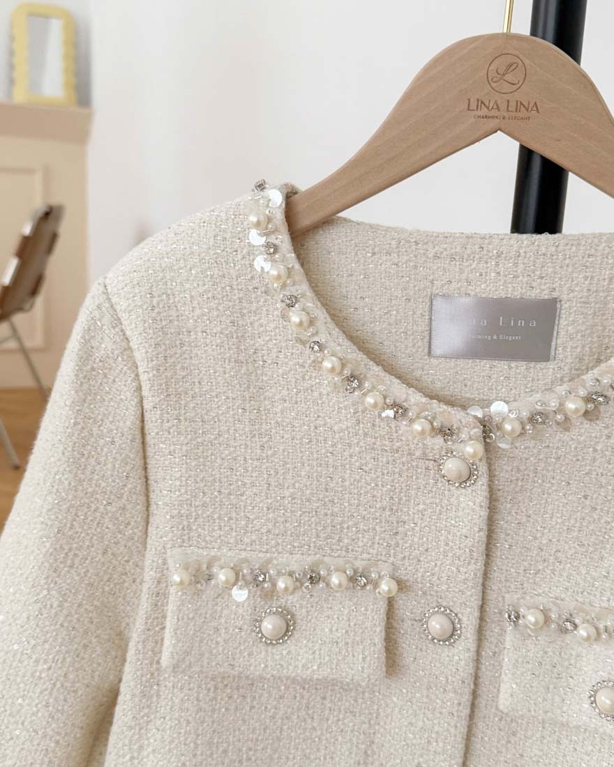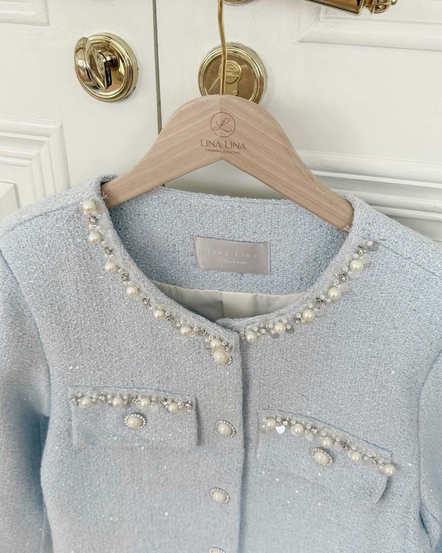 LINA LINA華麗丰姿珍珠鑽石亮片小香外套-高雅藍
