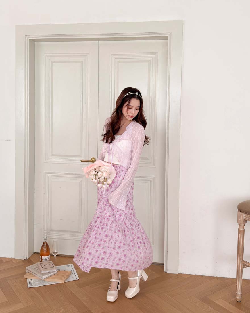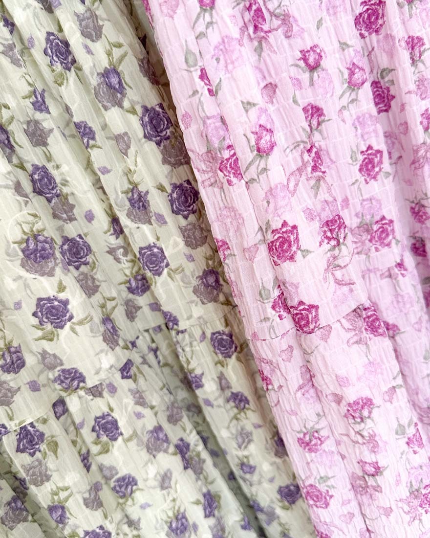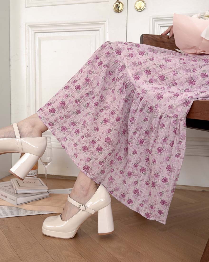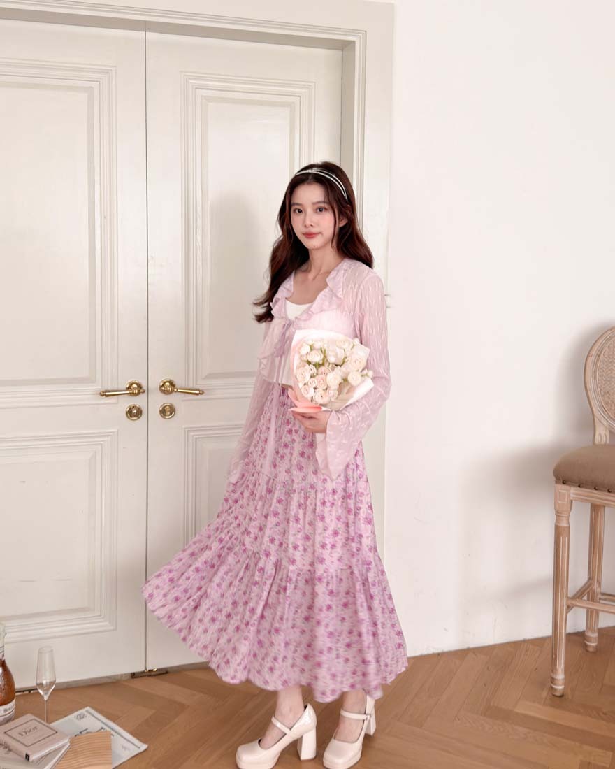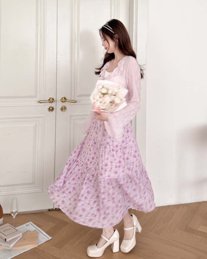 LINA LINA悸動花意滿版花卉鬆緊蛋糕長裙-甜粉紫